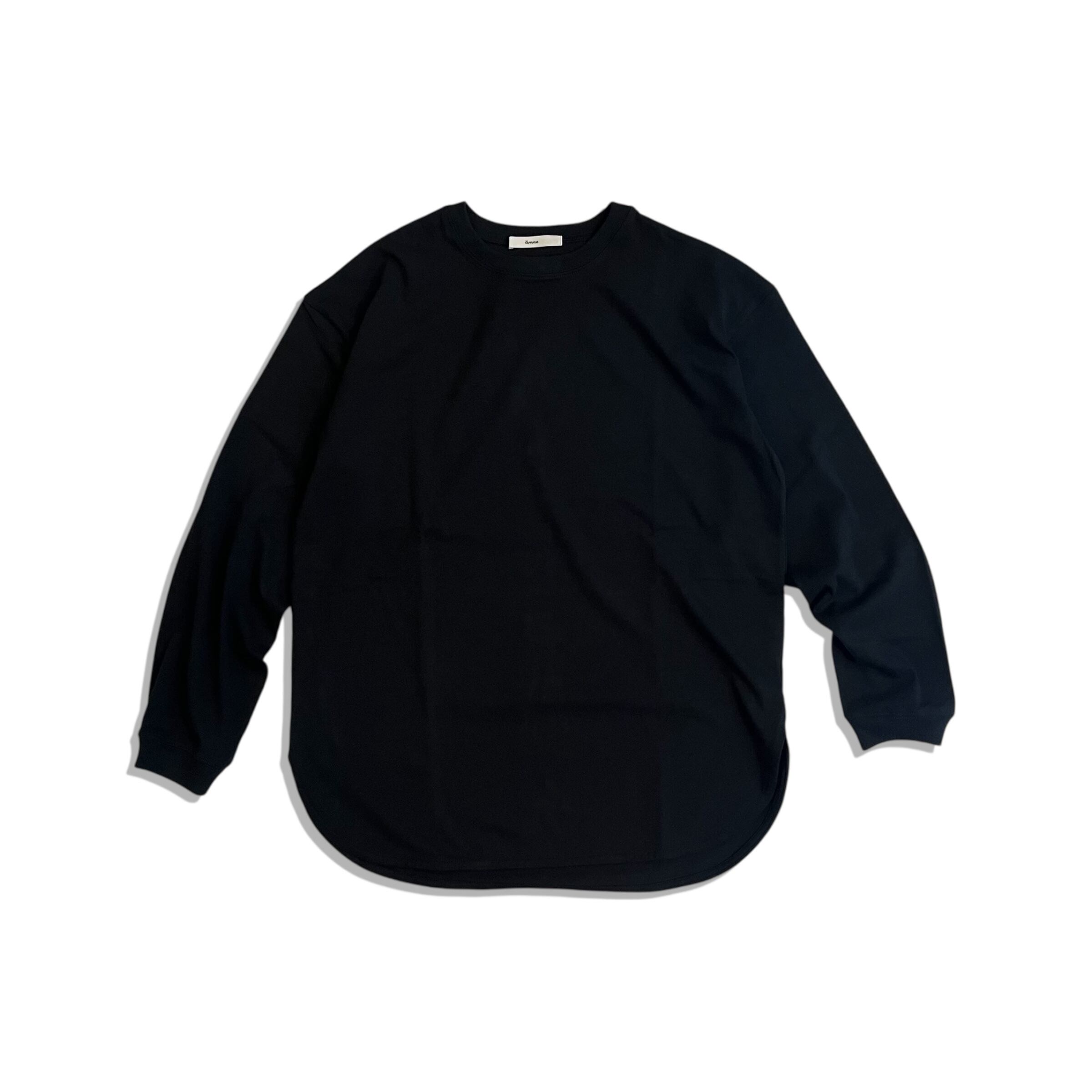 アメリカ製のTシャツなどに使用される粗野感のある風合いに合わせ、ややざっくりとしたシルエットに仕上げ存在感たっぷりのラウンドした裾は1枚でもレイヤードするのにもピッタリなアイテムになっています。