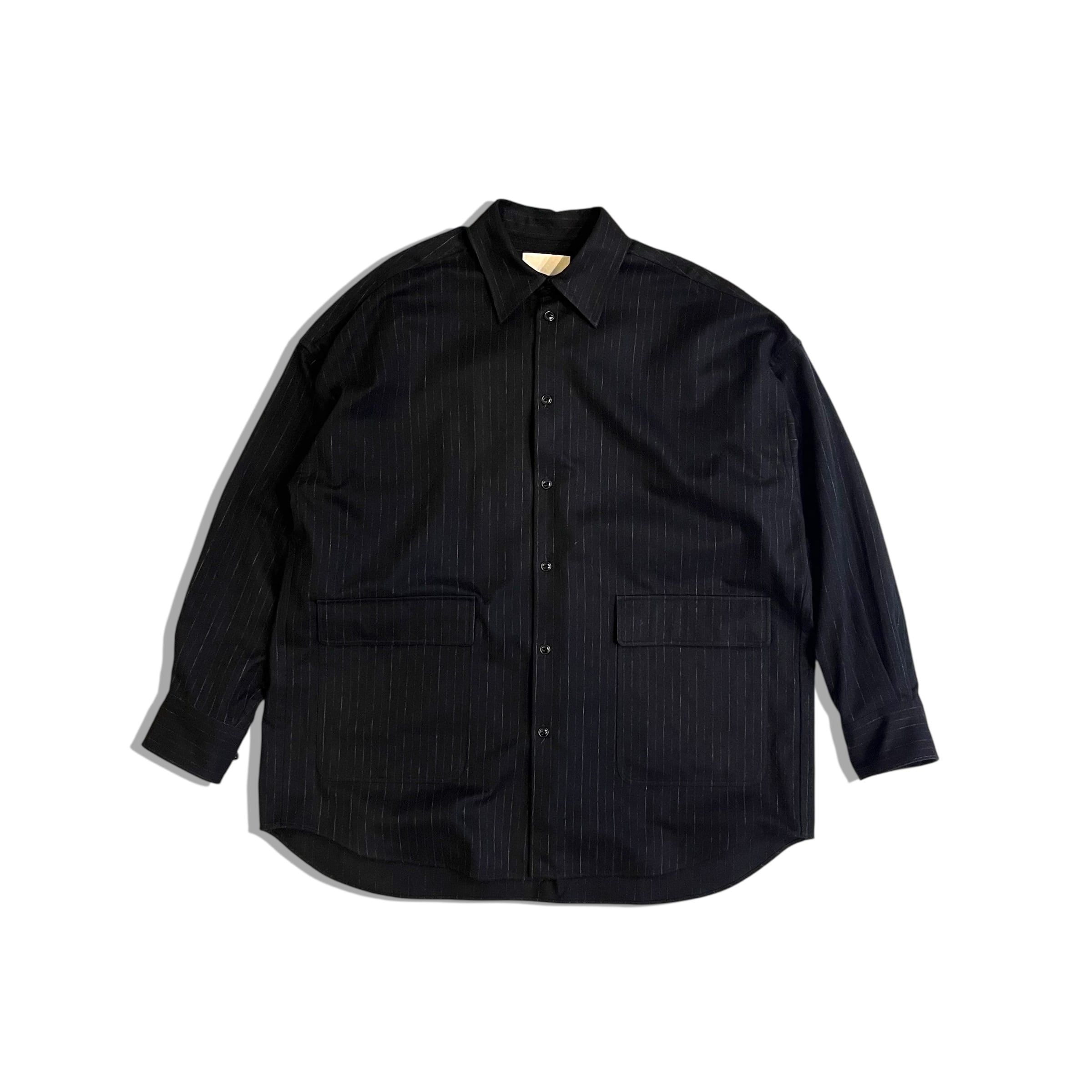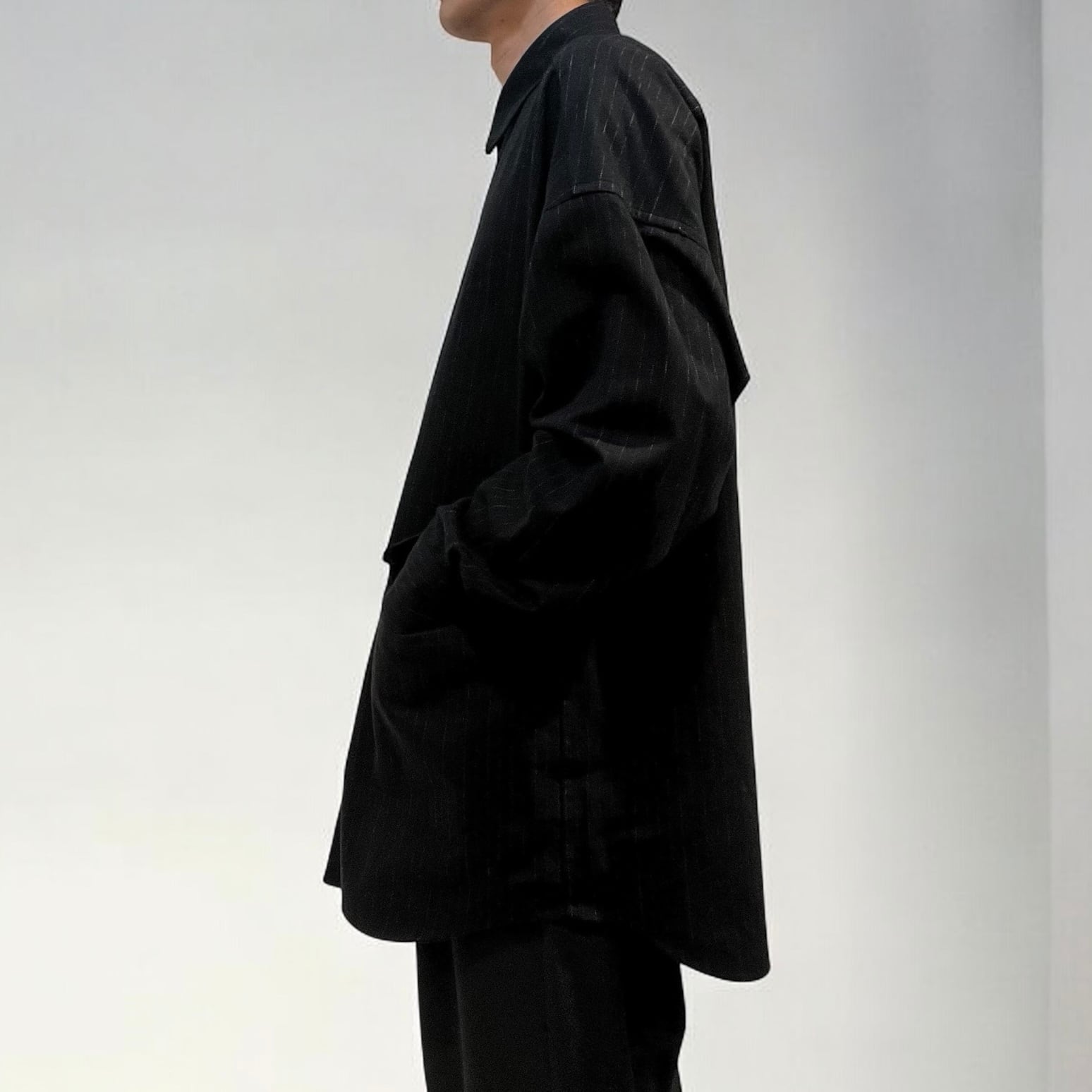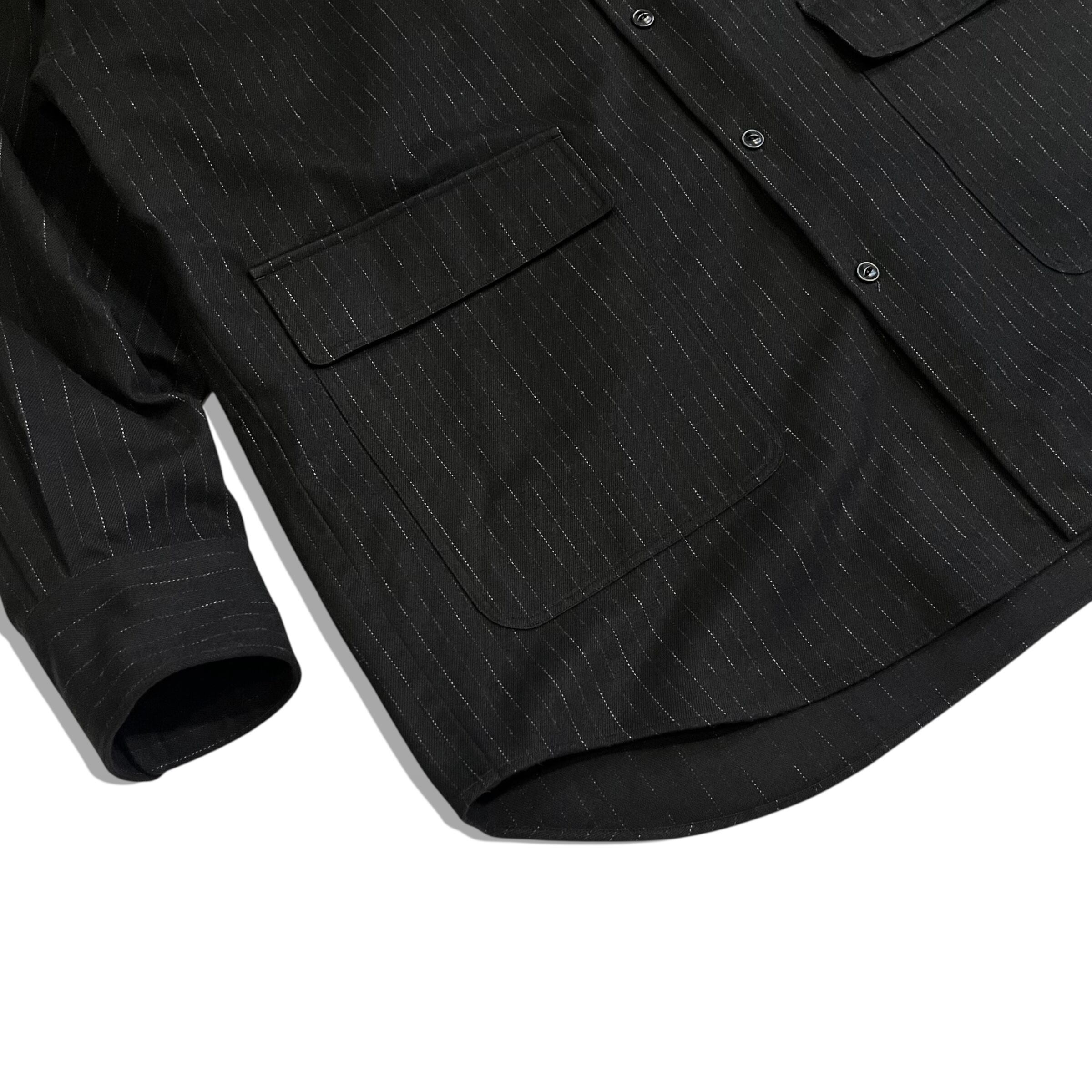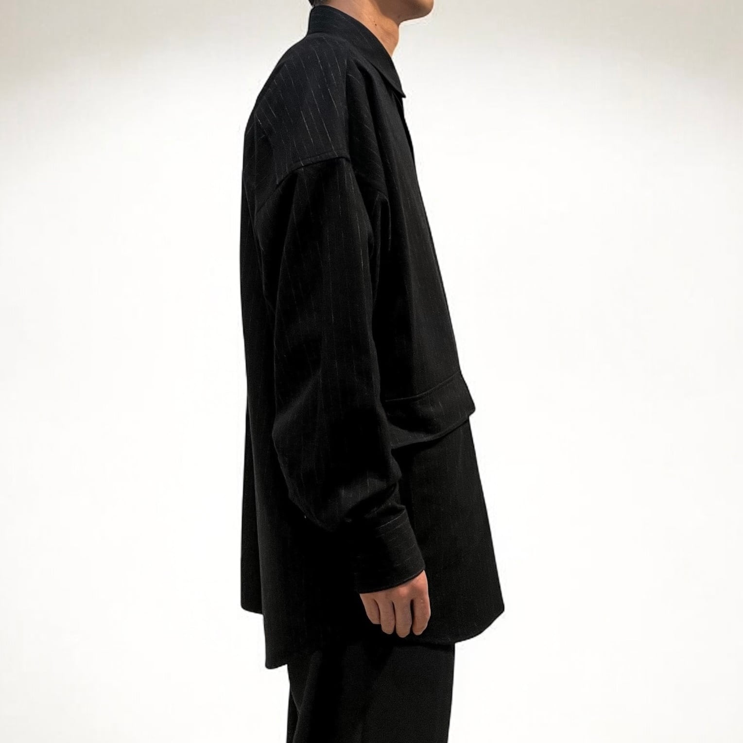 ルーズなドレスシャツに、ジャケットのフラップポケットを付けた、シャツの様なジャケットの様な不思議なデザインが特徴。