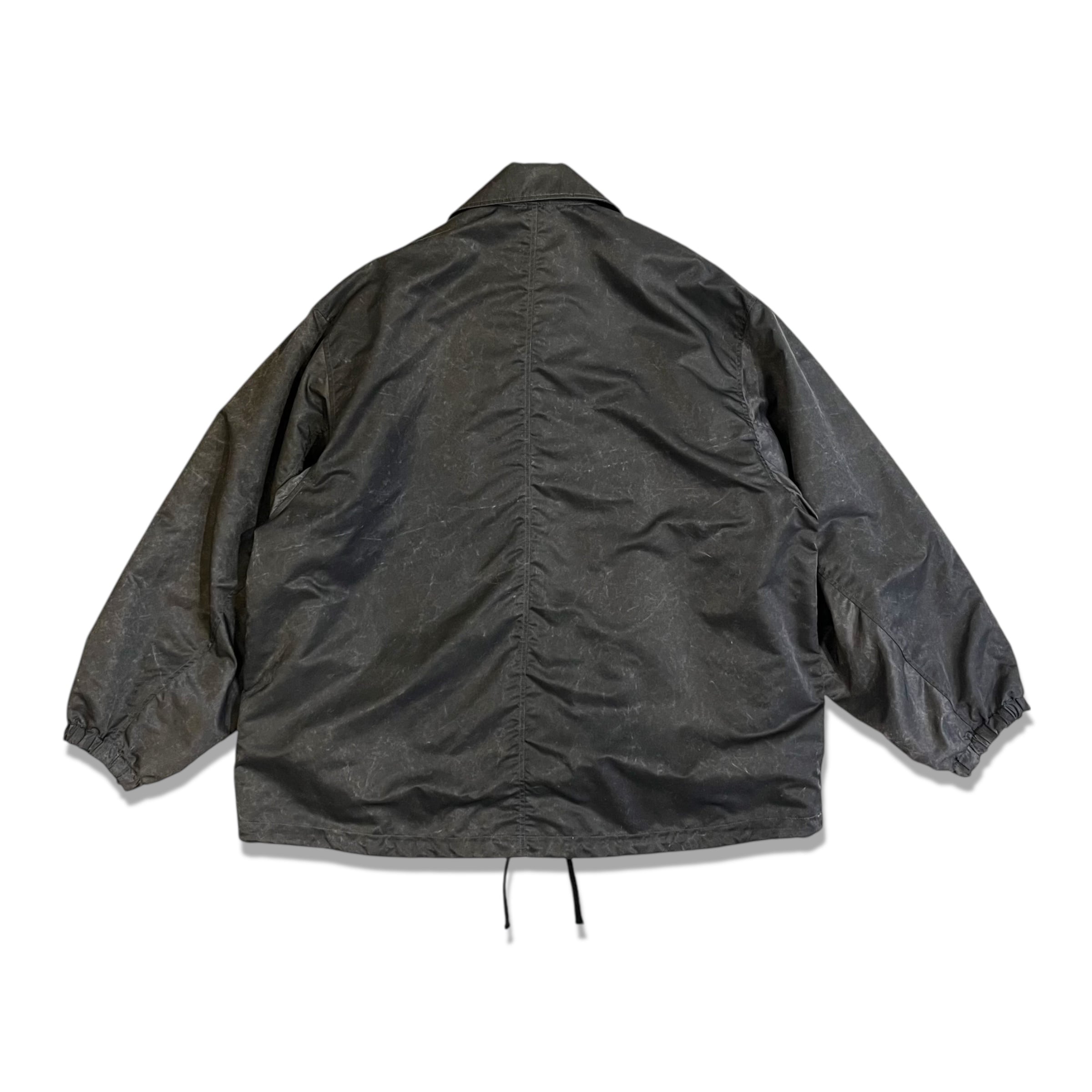 顔料コーティングにワッシャー加工を施したエイジングナイロンツイルを使用したコーチジャケット。