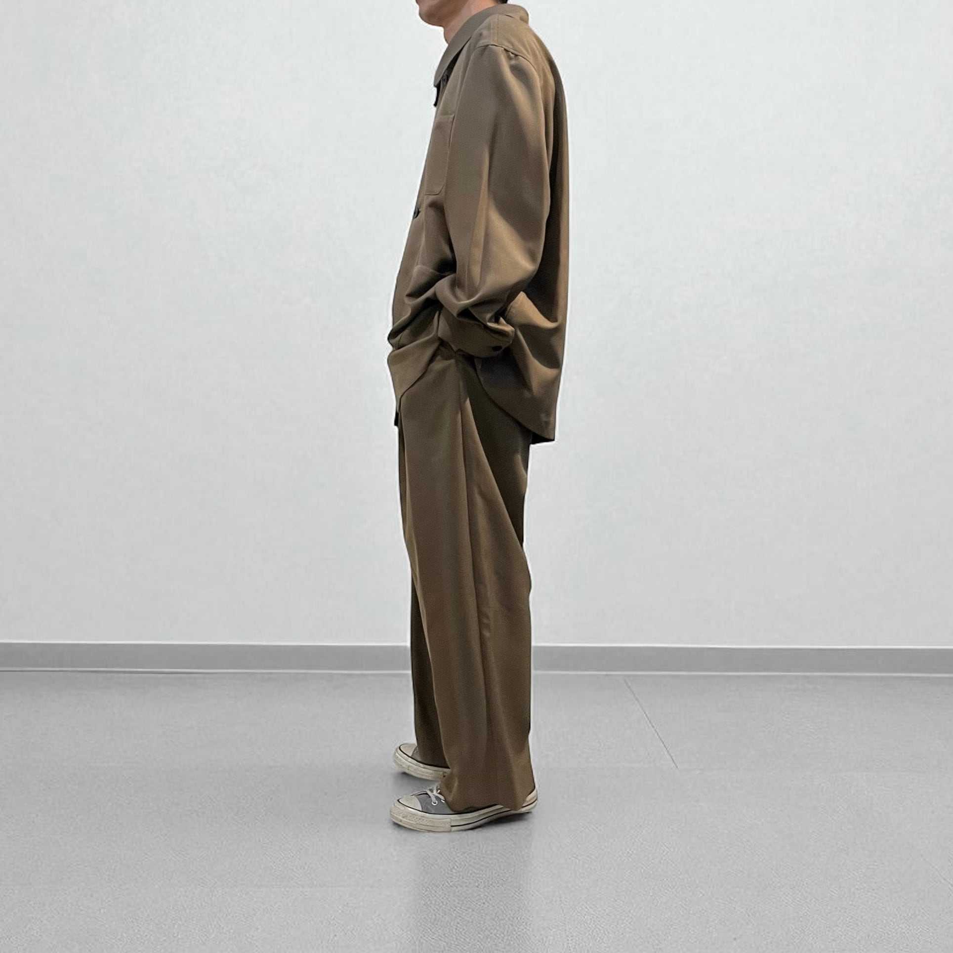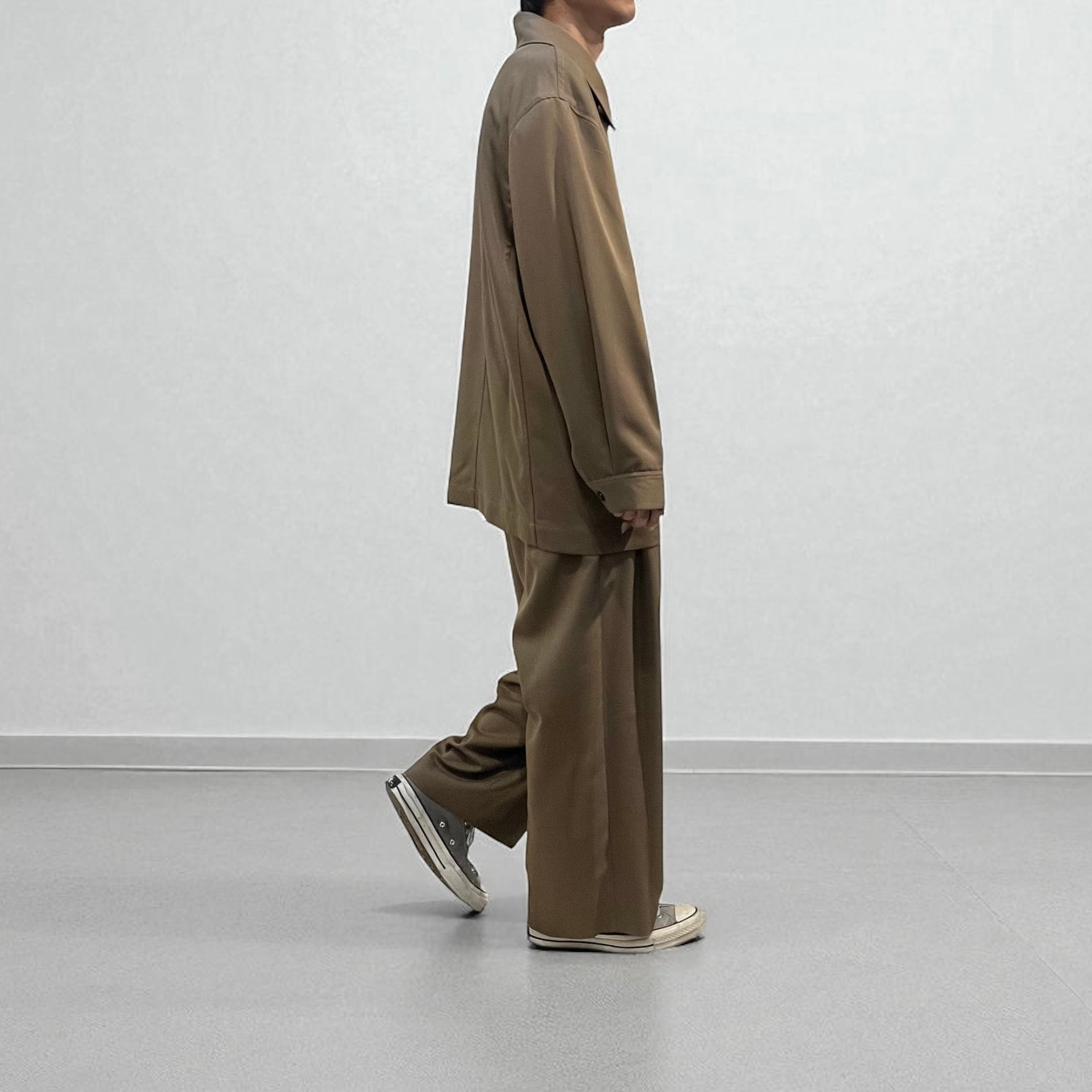 品のある表情の素材感ながらユルさとリラックス感にカジュアルにもキレイめにも合わせやすく使いやすい仕上がりになっています。