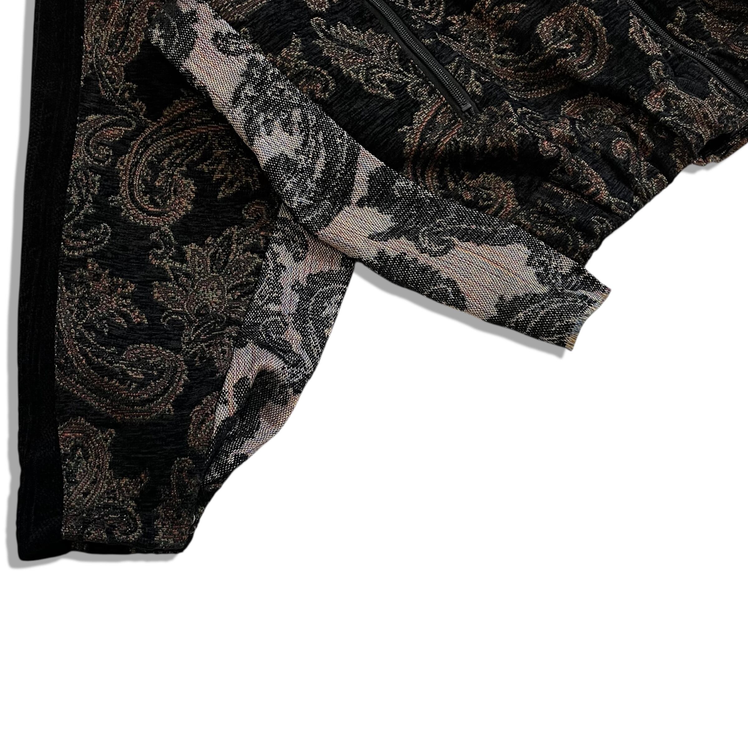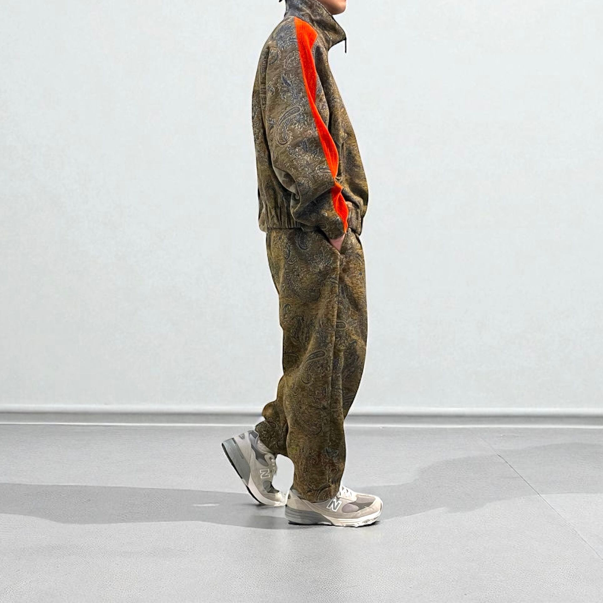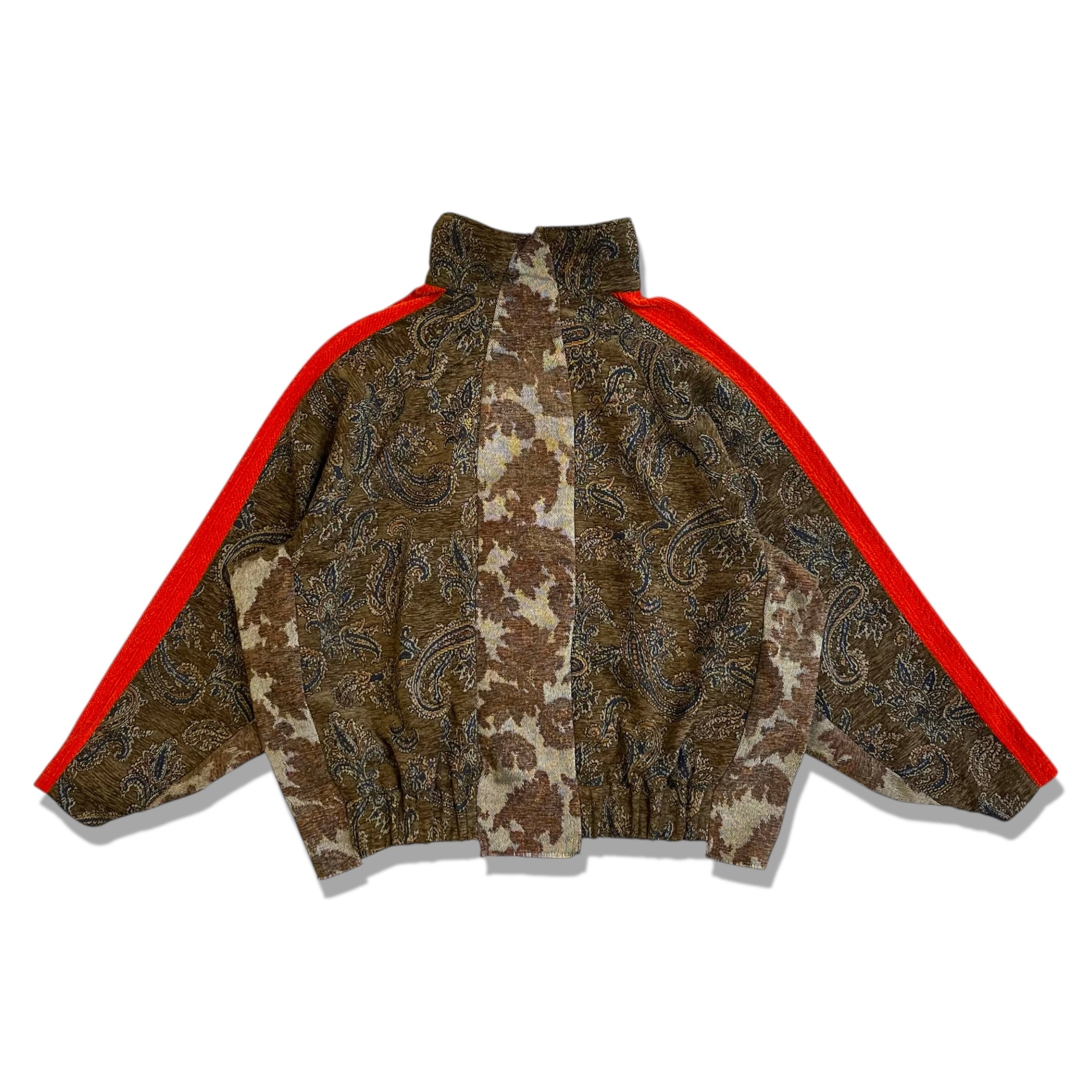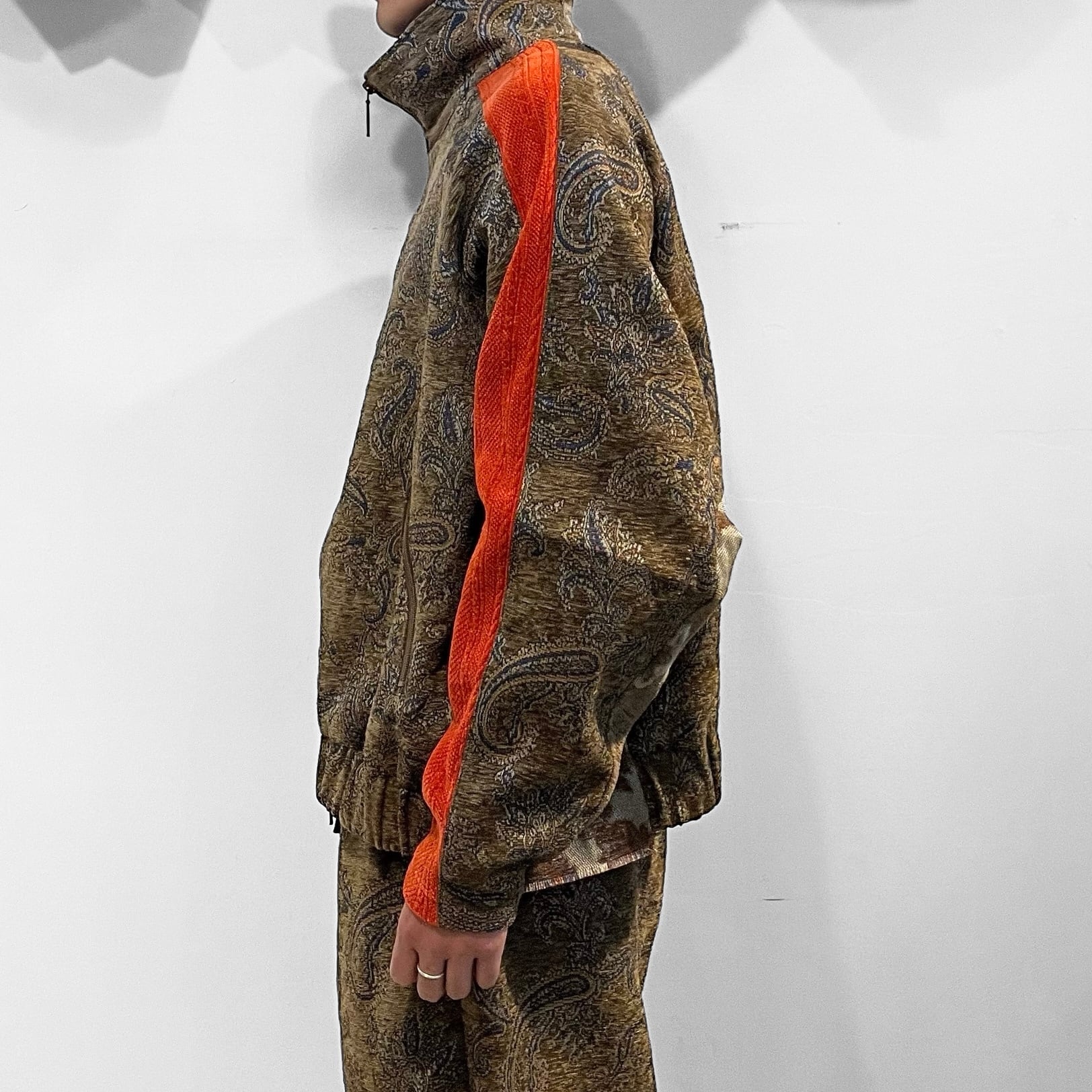 ベロアのような上品な起毛感のシェニールヤーンジャガードとゴブランシェニール織を掛け合わせ、反転使いで作成したトラックジャケット。