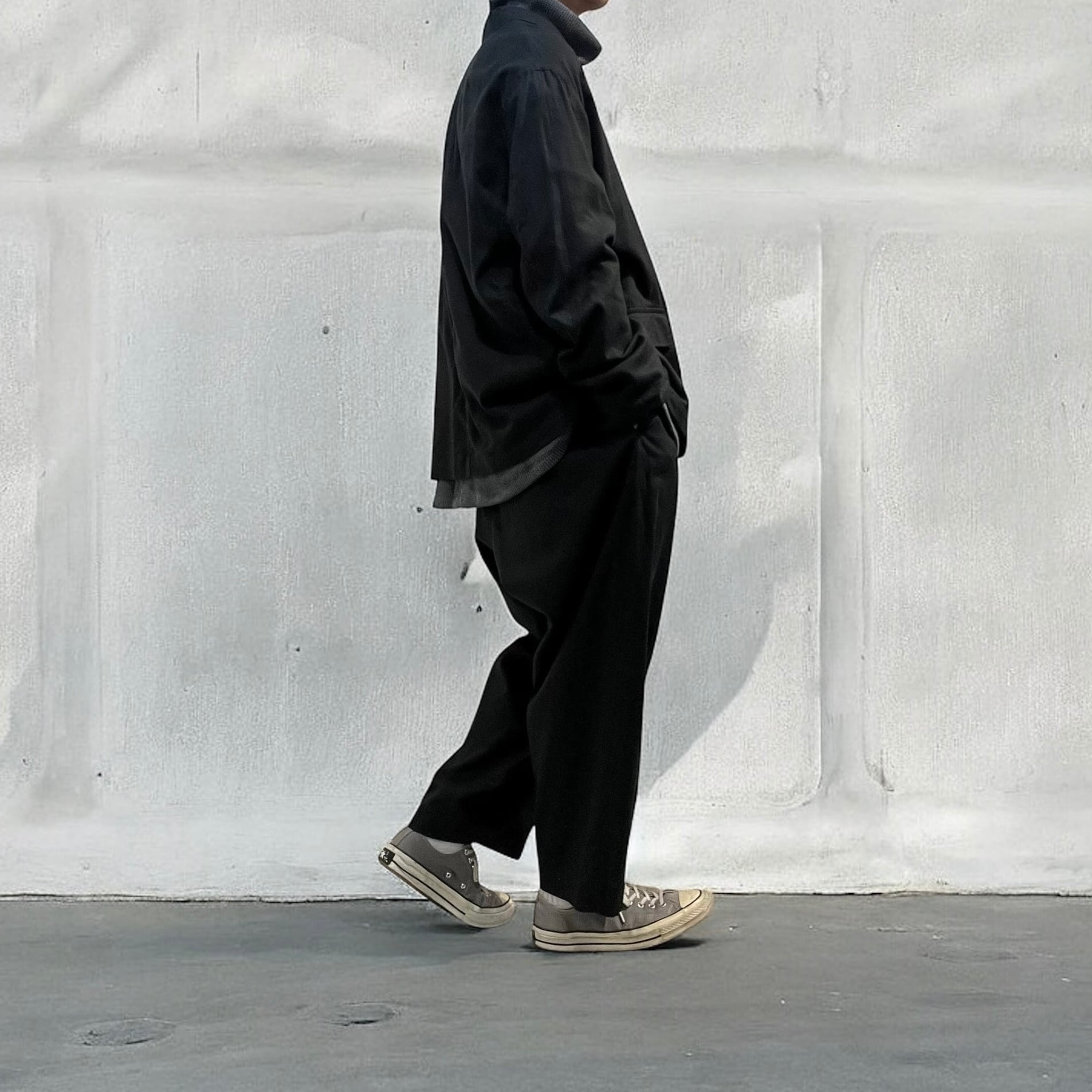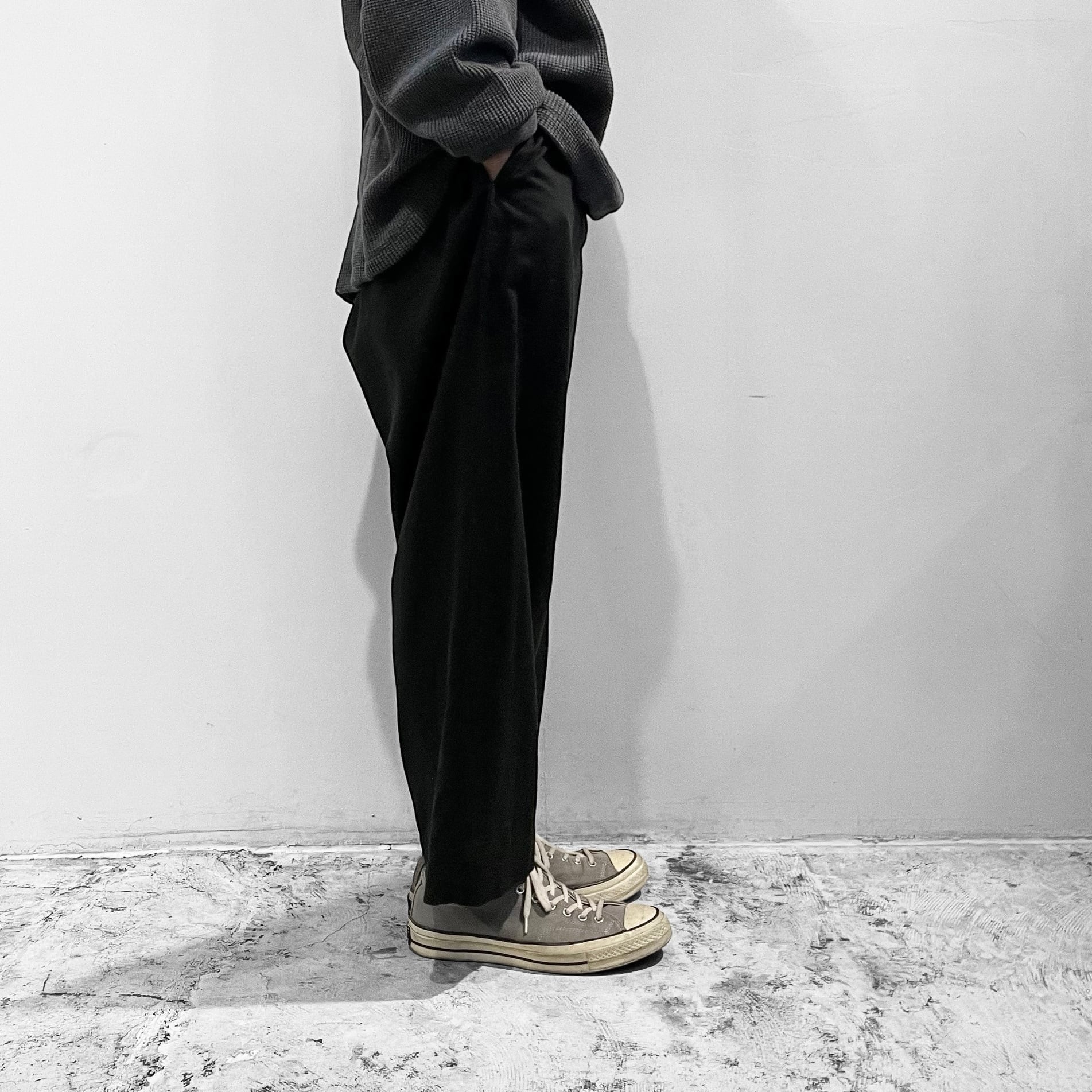 リラックス感のある軽い履き心地に程よい太さのバランスで、気軽に合わせやすく使いやすいパンツになっています。