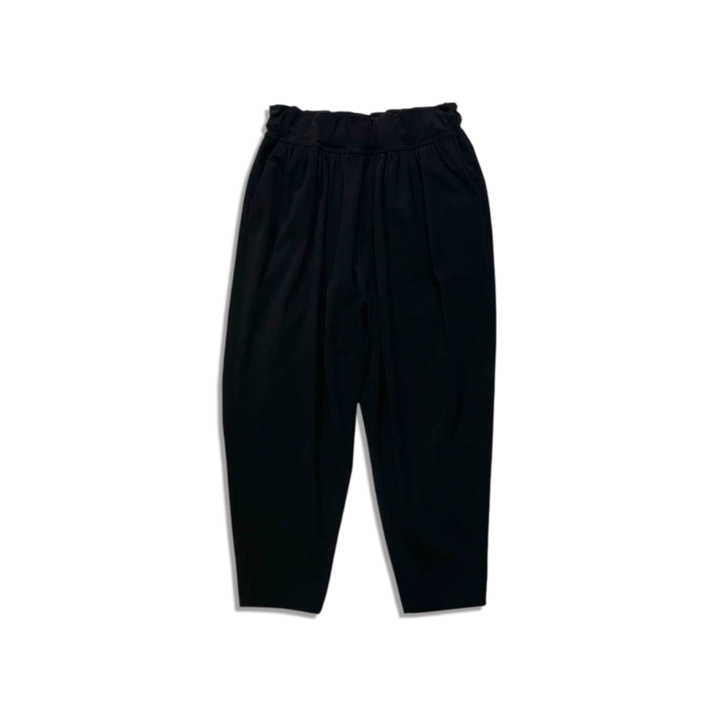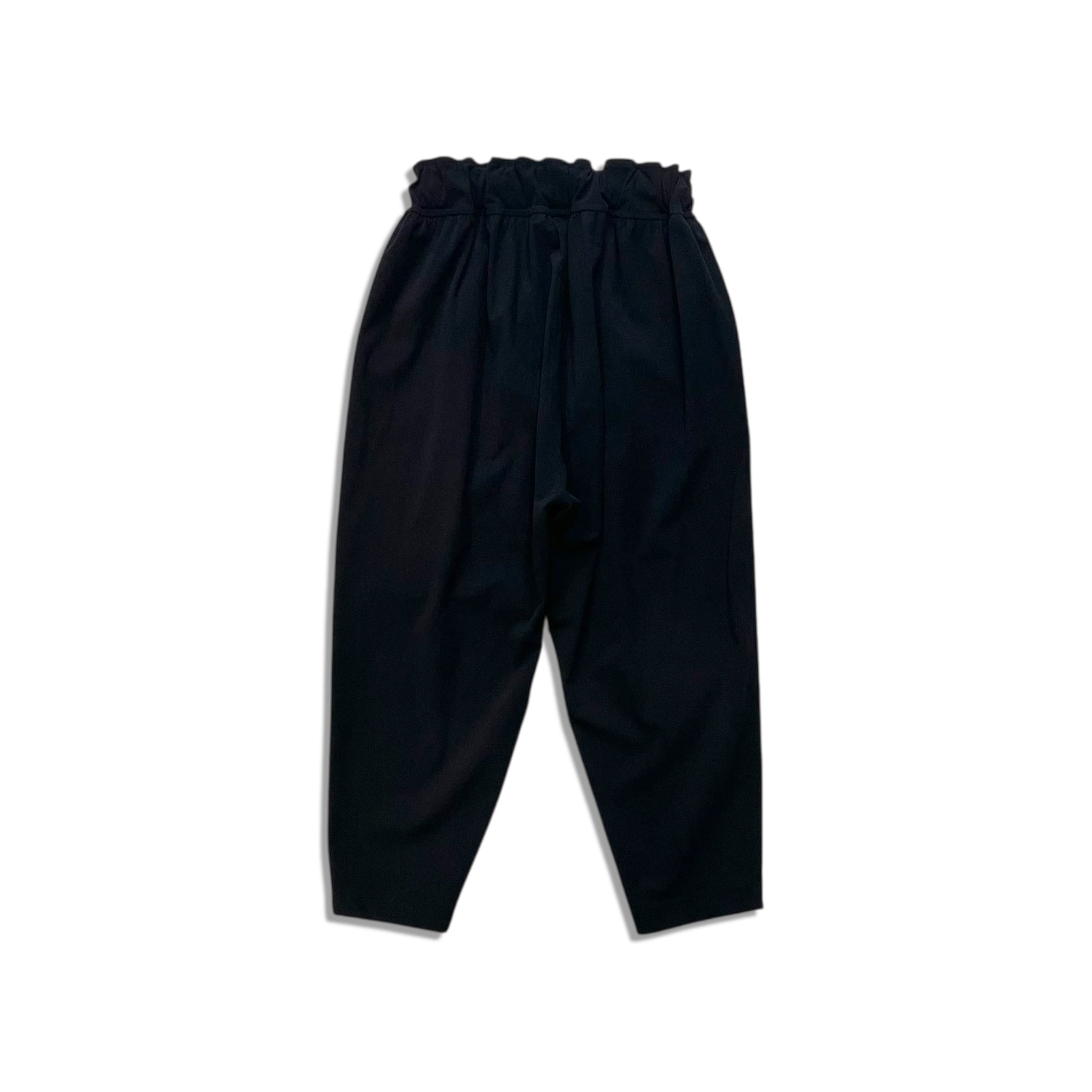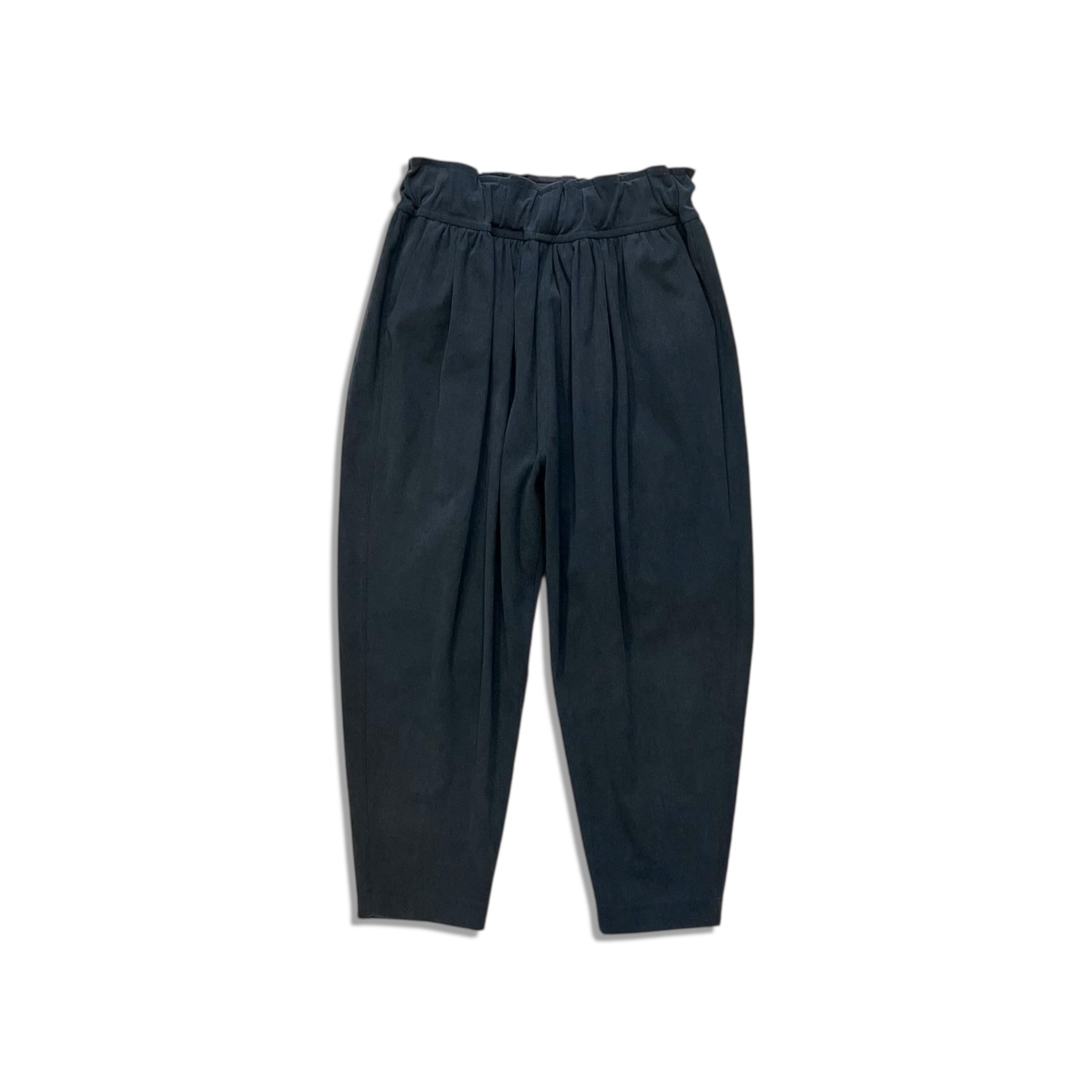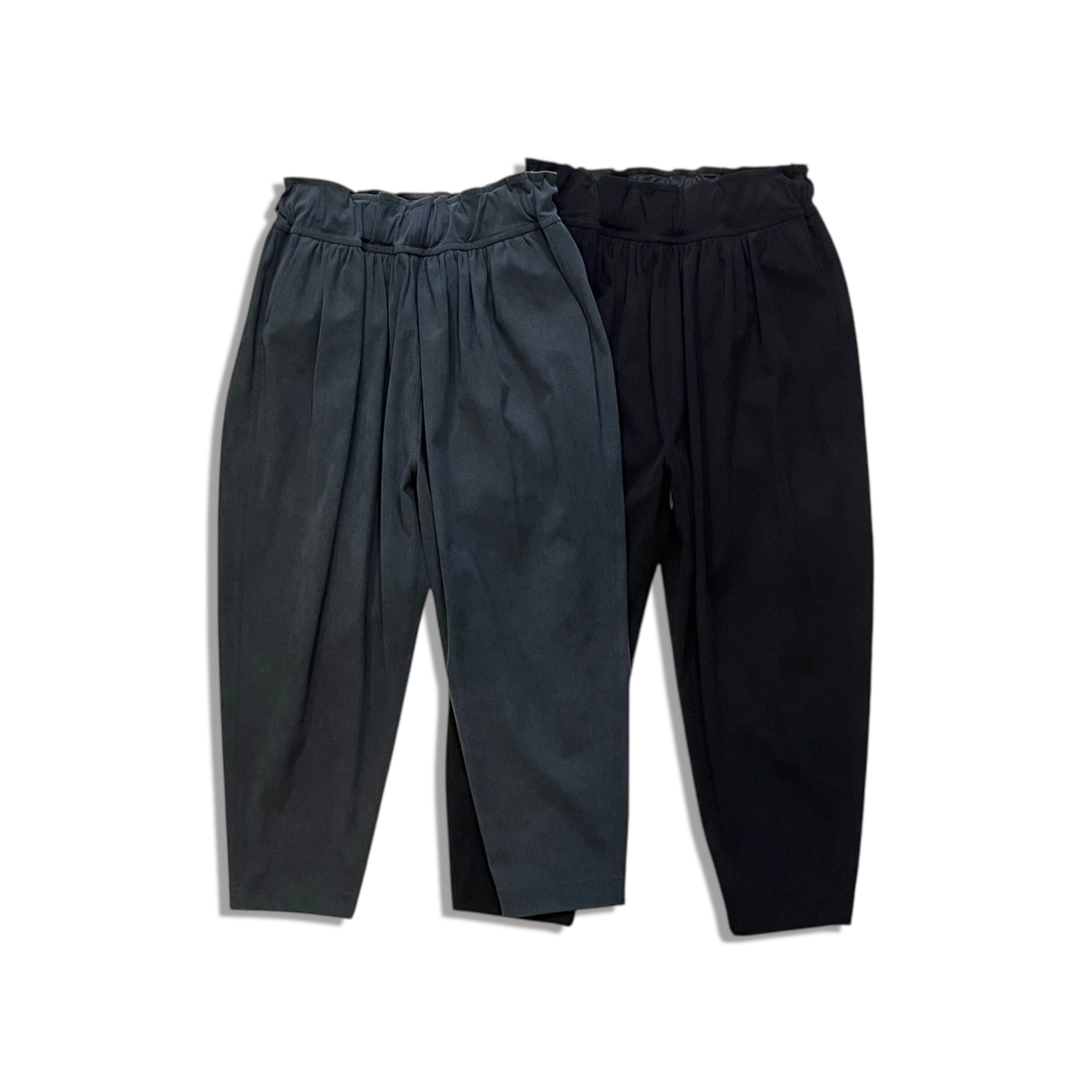 ウエスト周りのギャザーが特徴的。程々の太さと短めの丈感でシルエットバランスが良く、合わせ易く使い易いパンツです。