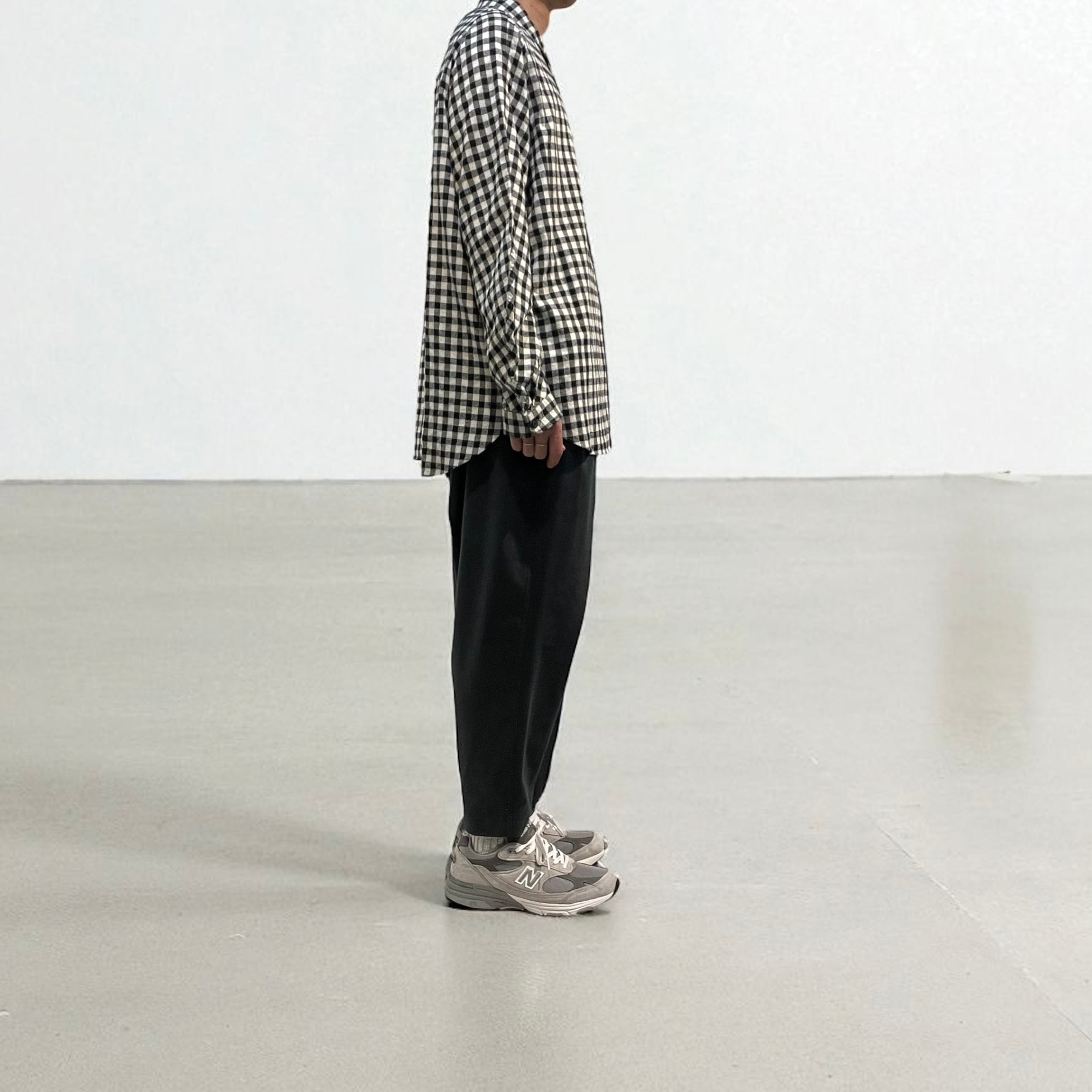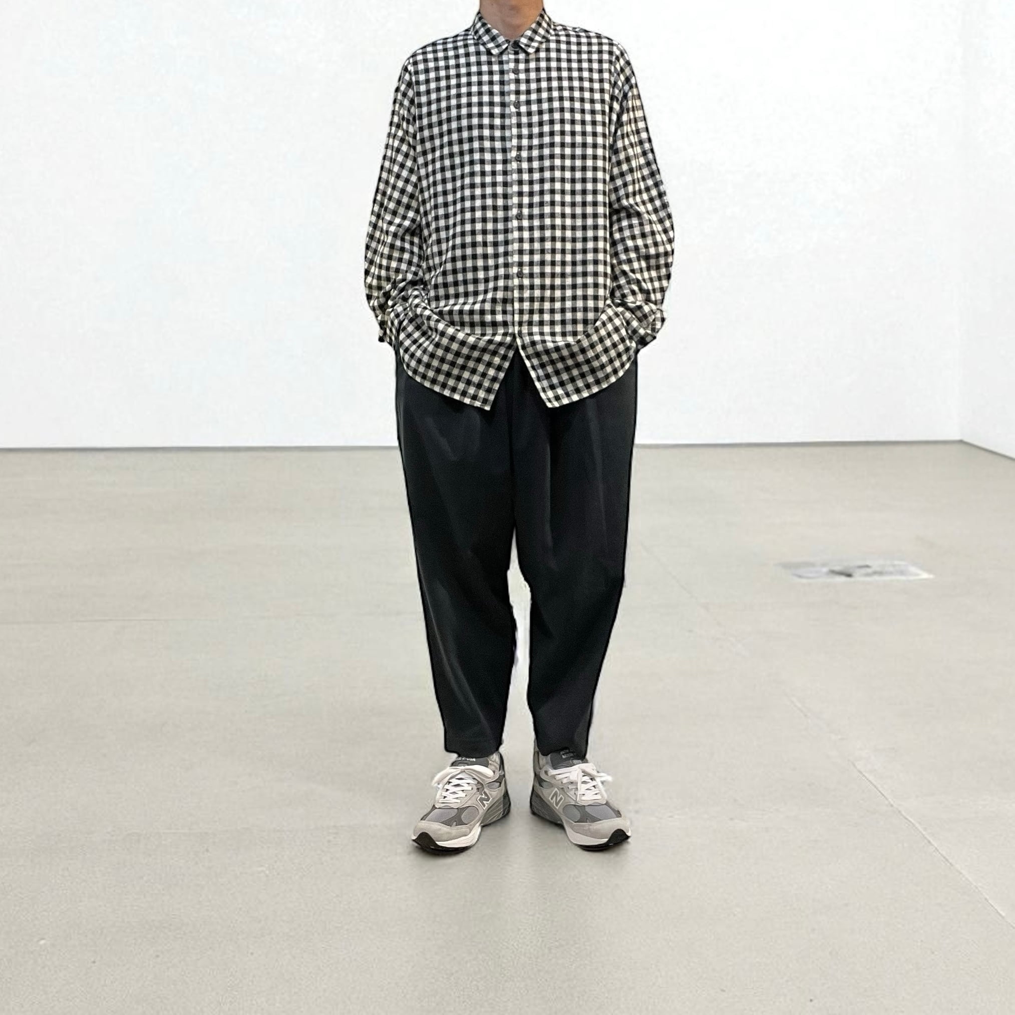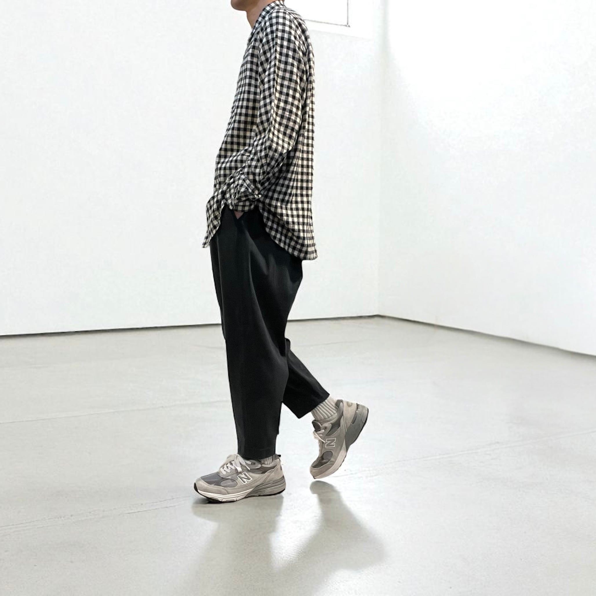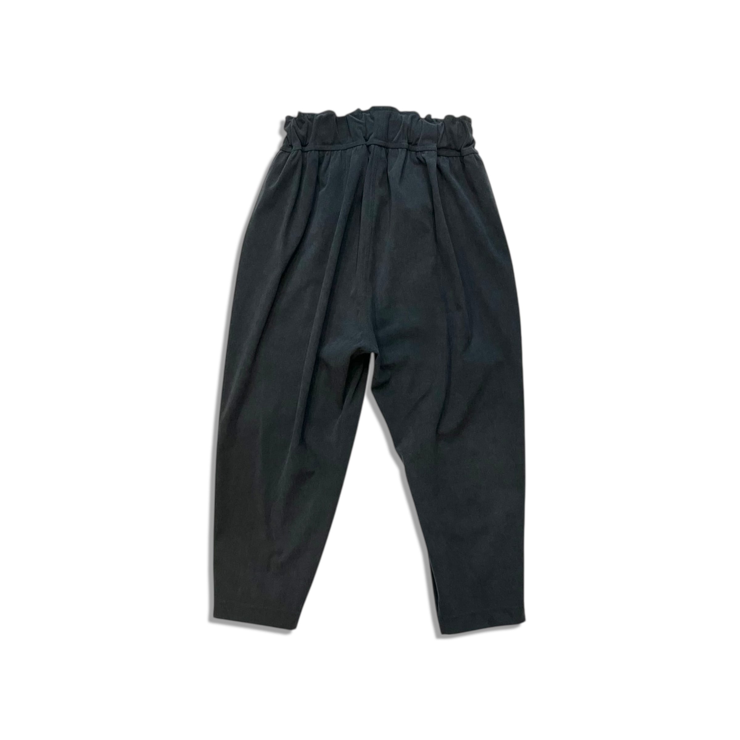 ウエスト周りのギャザーが特徴的。程々の太さと短めの丈感でシルエットバランスが良く、合わせ易く使い易いパンツです。