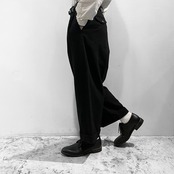 ウエストから裾にかけてズドンと太いバギーシルエット。クロップド丈かつ裾ダブル仕様で、どんな服装やシューズのスタイルにも合わせ易く、非常に凡庸性の高いパンツです。