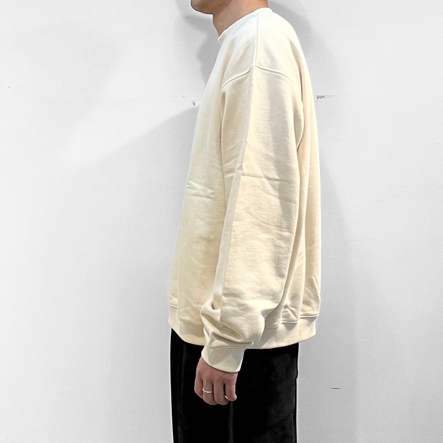 クルーネックに少しアレンジを加えた、かなり太めのネックリブ、両脇シームポケット付きの程よい大きさのサイズ感で仕上げたスウェットシャツです。