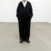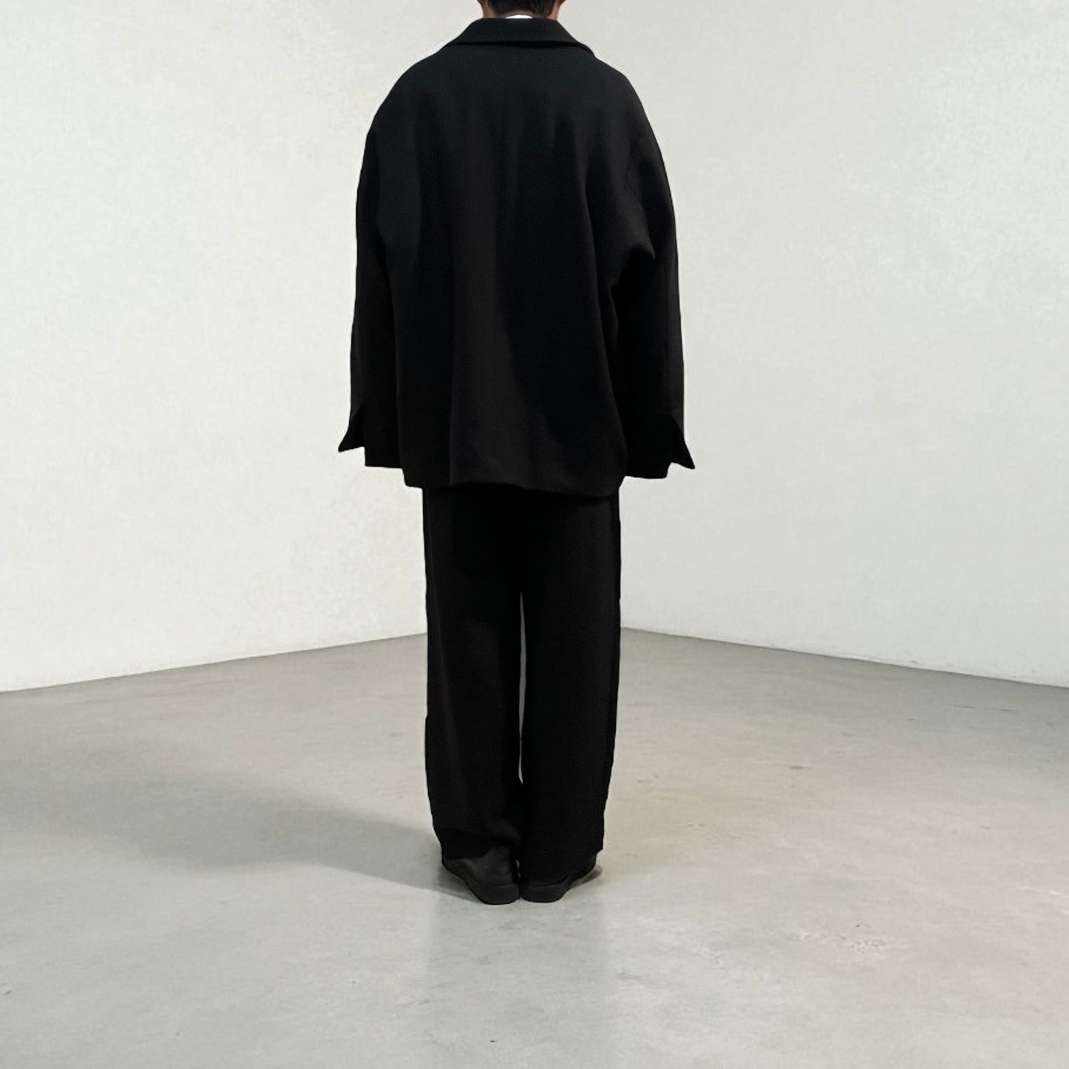 2/24ボタニー繊維(他の羊毛より繊維が細い)の生地を使用した同素材に縮絨起毛した素材をミックスして仕立てている為、高級感があり " 軽さ・柔らかさ・温かさ" が特徴のワイドパンツです。