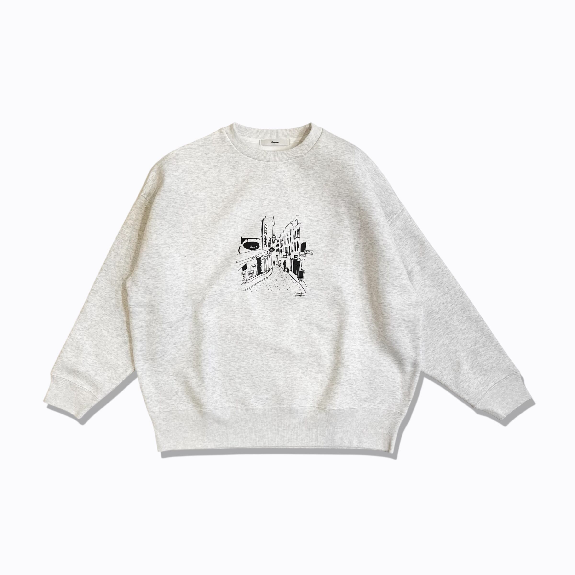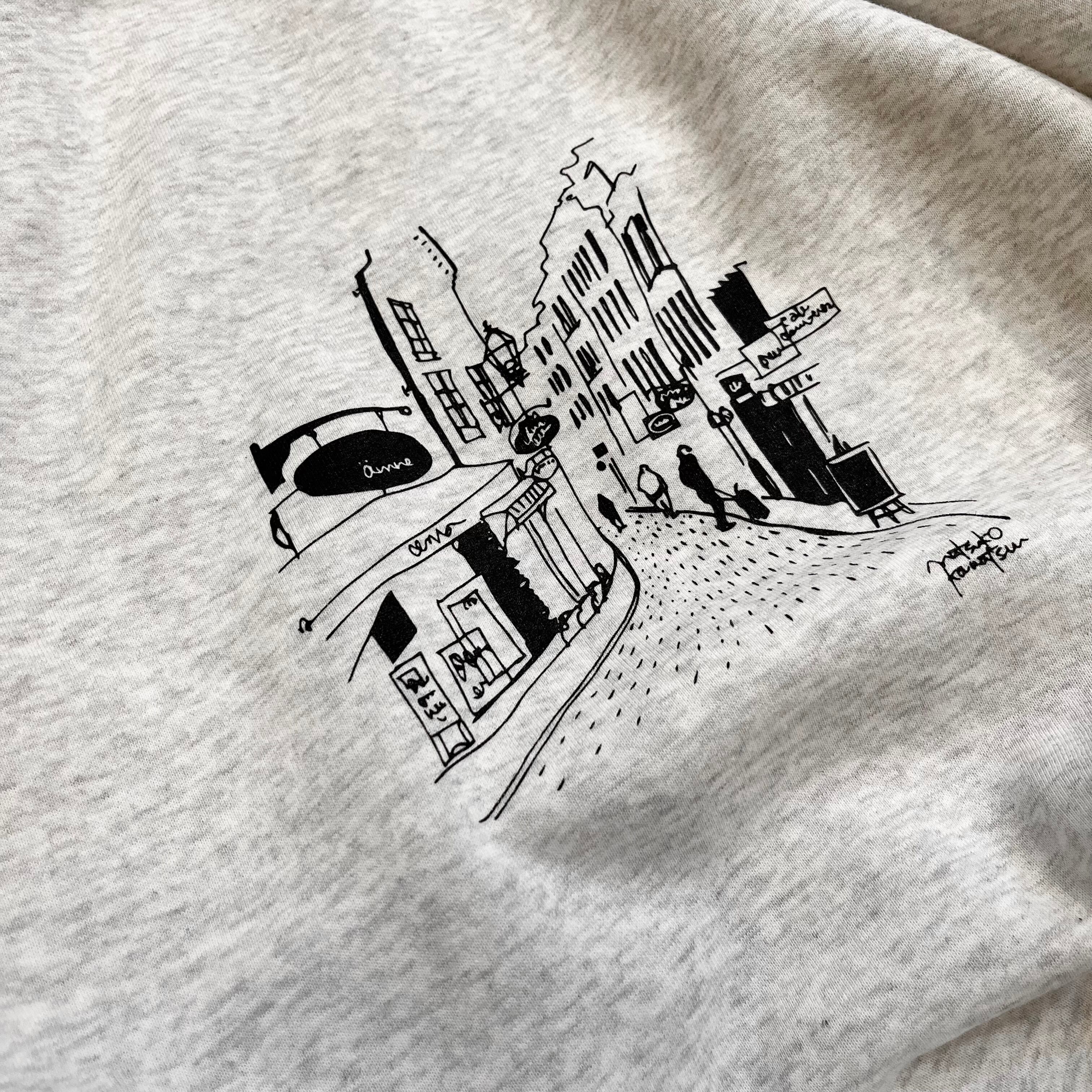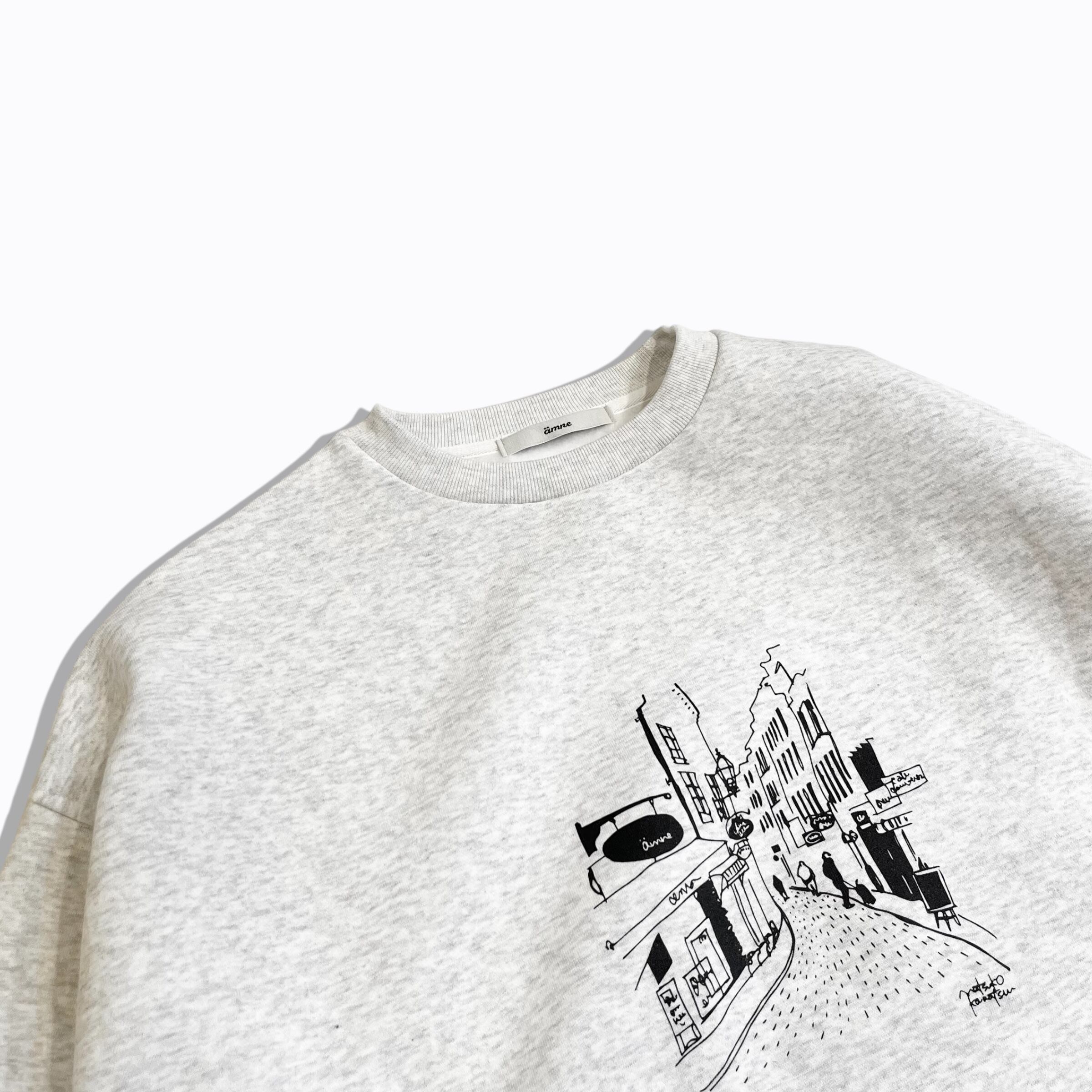 柔らかな着心地、程よいハリと弾力感のあるスウェットシャツをベースに、スウェーデンの街 "ガラムスタン" をモチーフに描かれたグラフィックのプリントで仕上げたアイテムです。