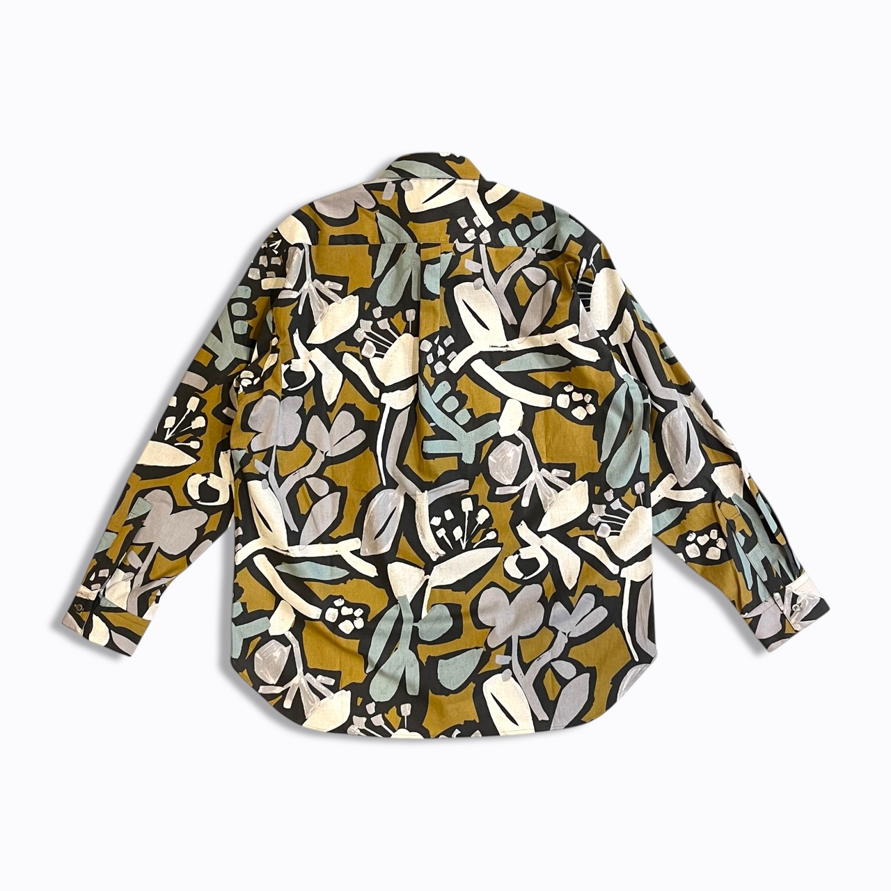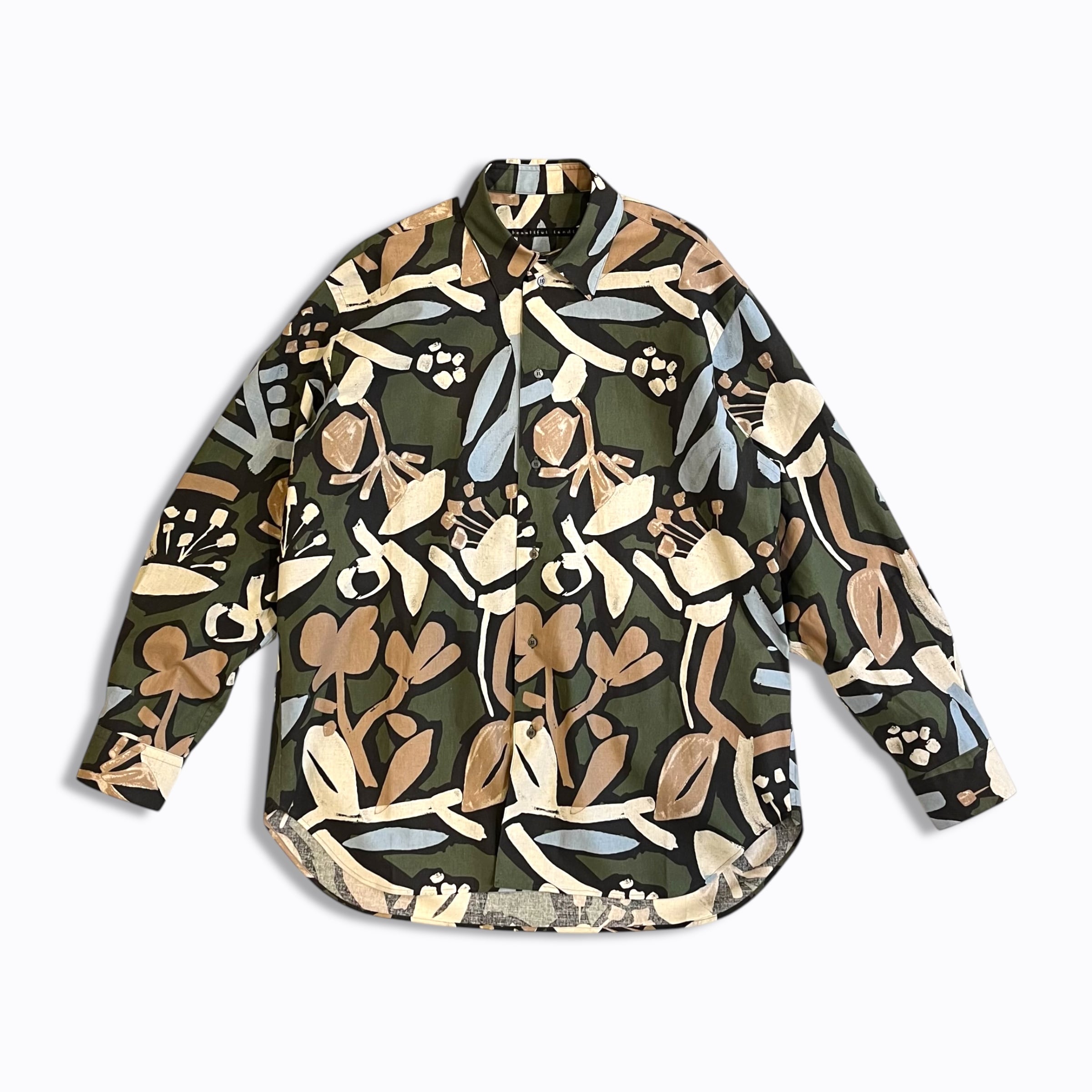 シーチング生地に顔料でフラワープリントを施した生地を使用したシャツ。