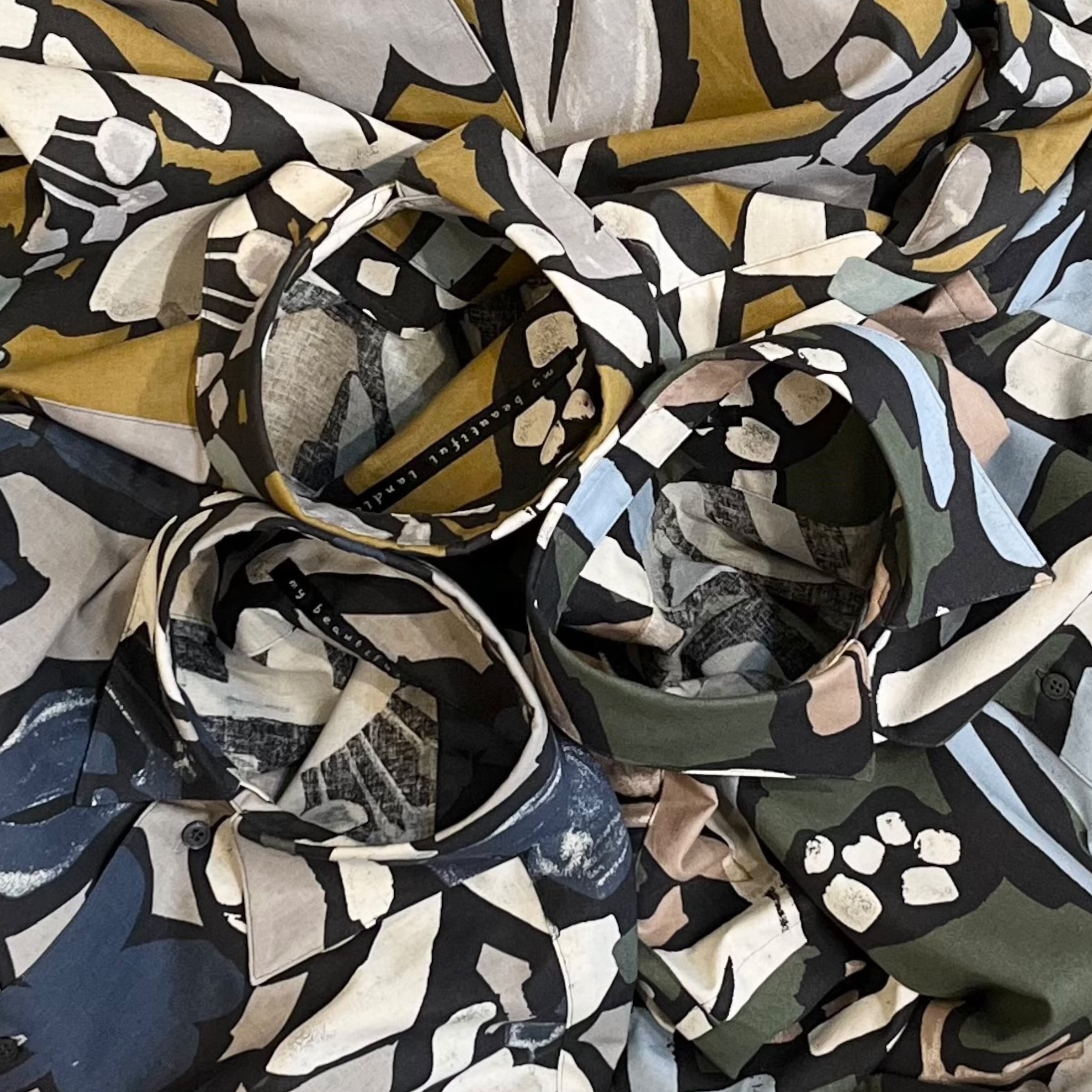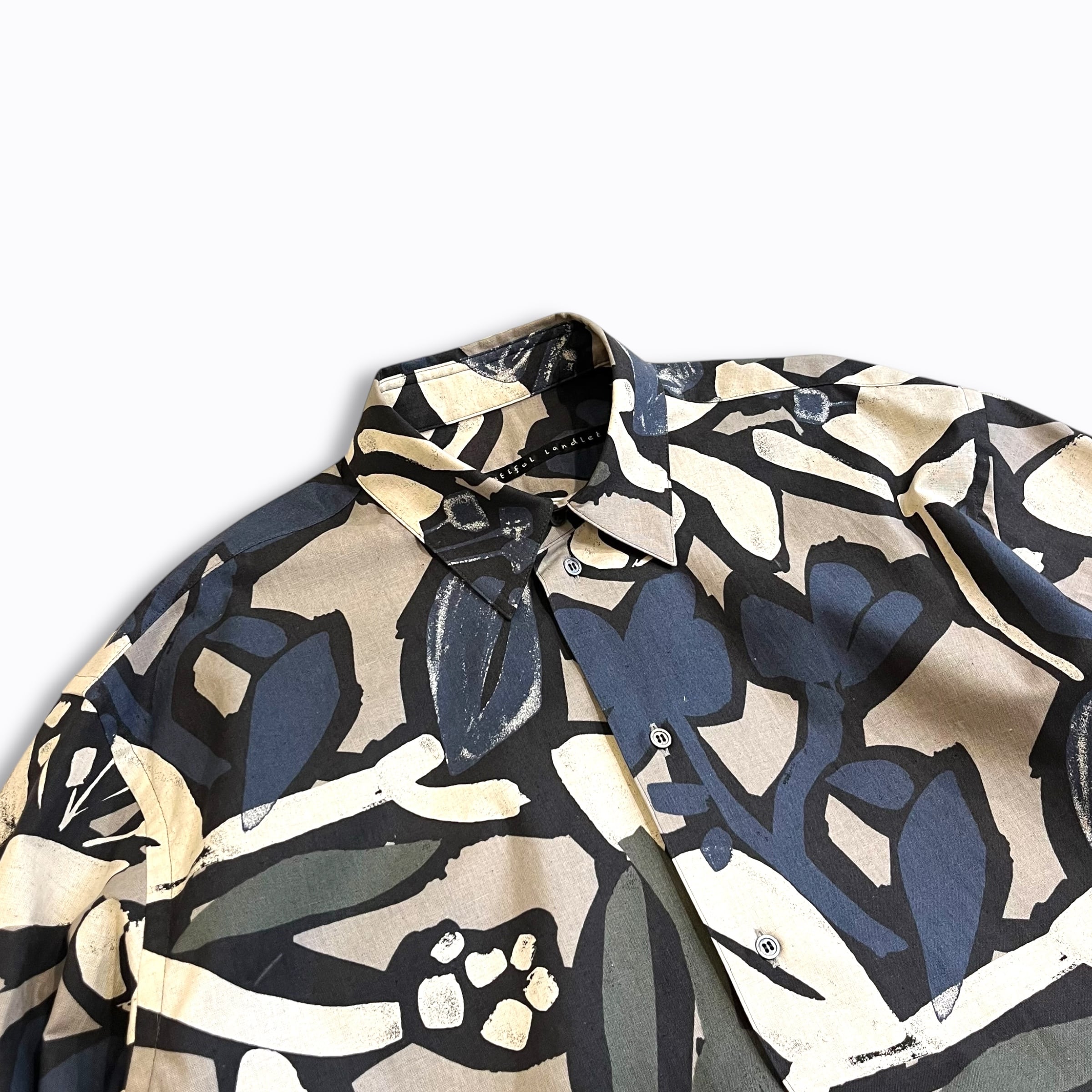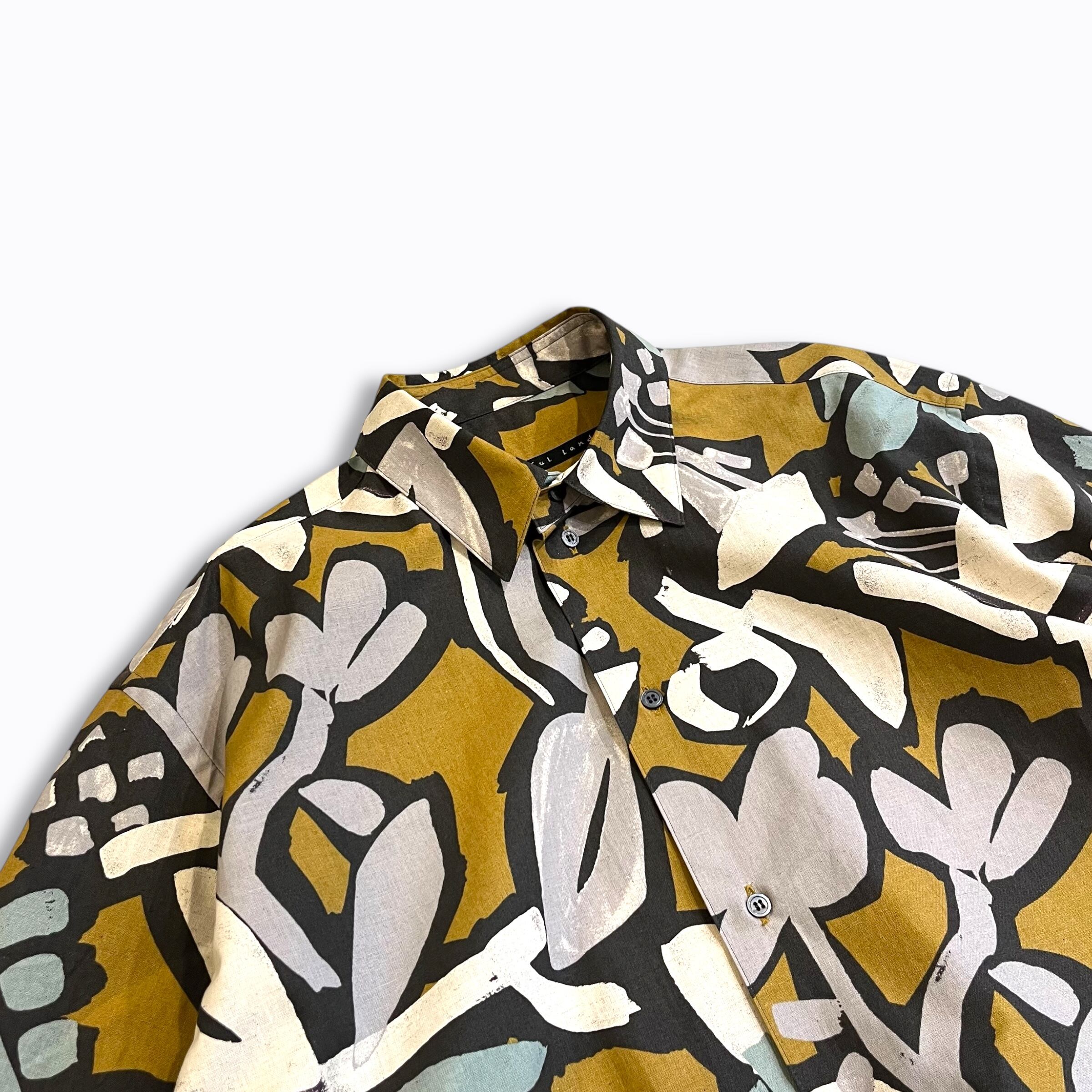 アートタッチな花柄プリントをデリケートに扱わず、USED製品を扱うようにイージーに捉え、洗濯したり着用する度に表情に変化が現れ、経年劣化が楽しめるギャップのあるシャツに仕上がっています。