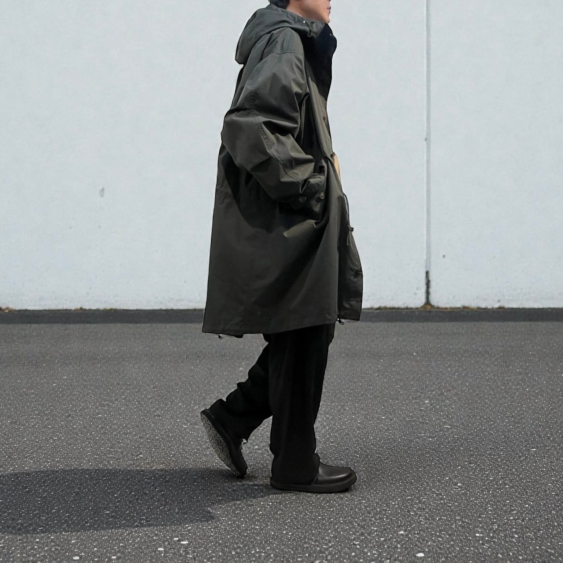 近年の季節による急激な気温変化も対応した、絶妙な生地の薄さとハリ、色味や表情も良く、完成度の高いモッズコートに仕上がっています。
