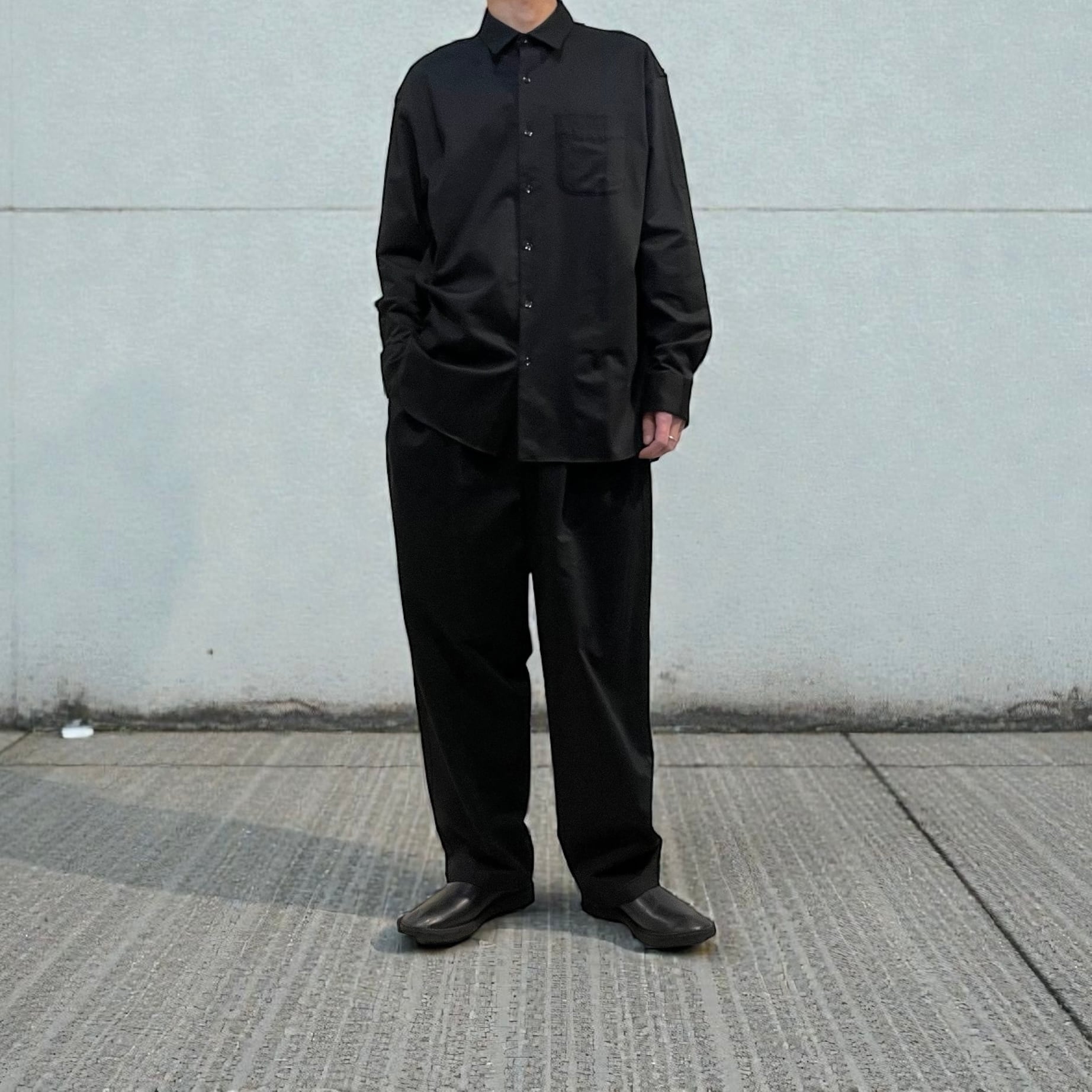 レギュラーカラー、胸ポケット付きのシンプルなルックスに、リラックスしたシルエットでありながら、品のあるパターンメイキングに拘り製作されています。