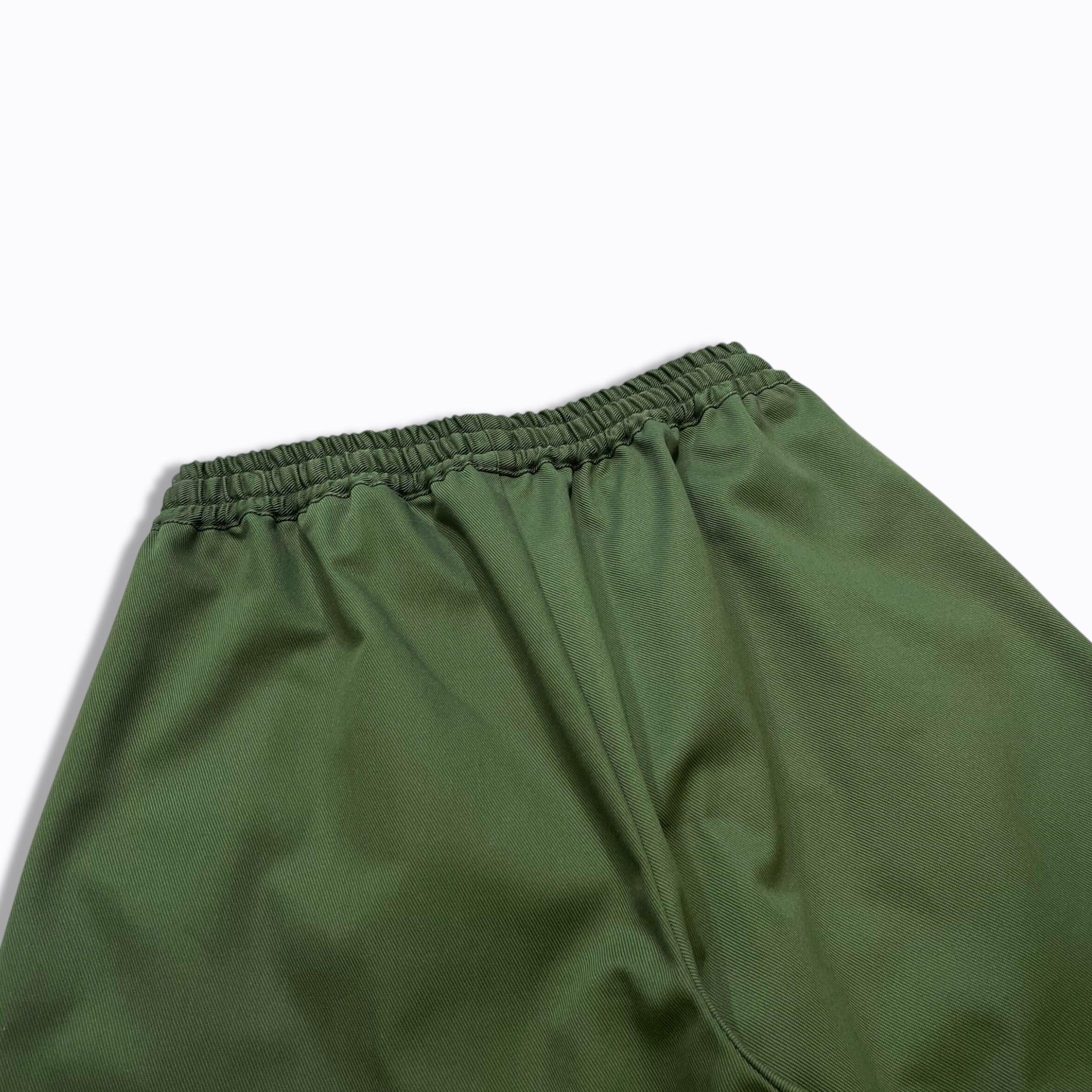 オーガニックコットンとリサイクルポリエステルとの混紡糸を使用したツイル生地のイージーパンツ。