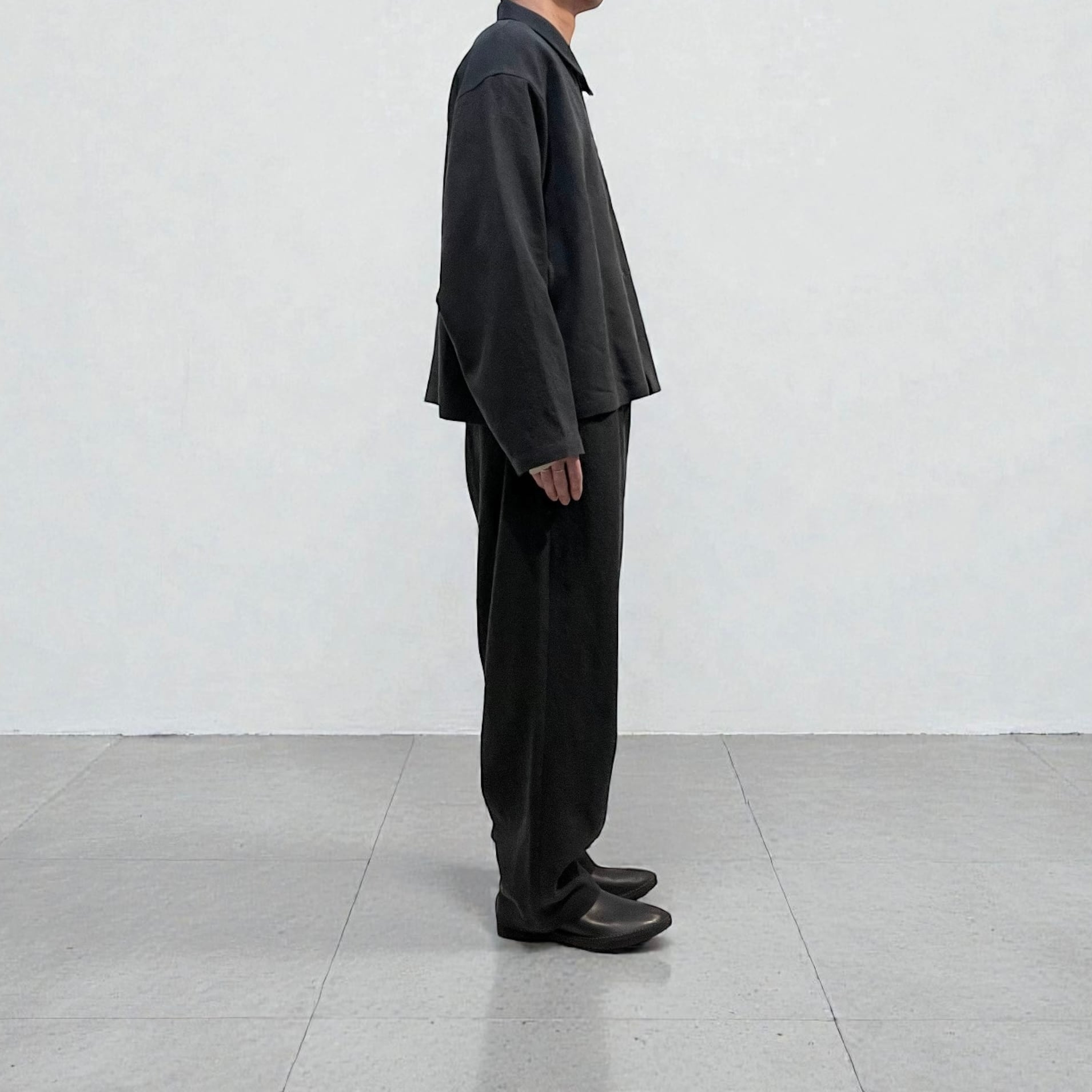 素材の風合い、落ち感とシルエットの相が性良く、リラックス感のあるユルッとした雰囲気が最高です。