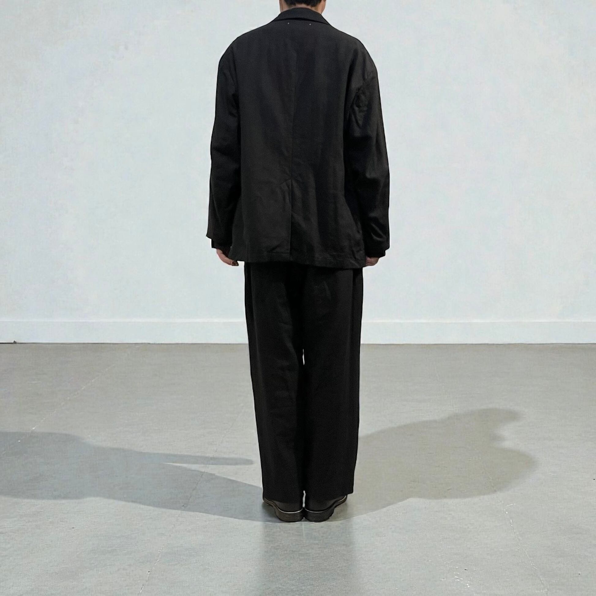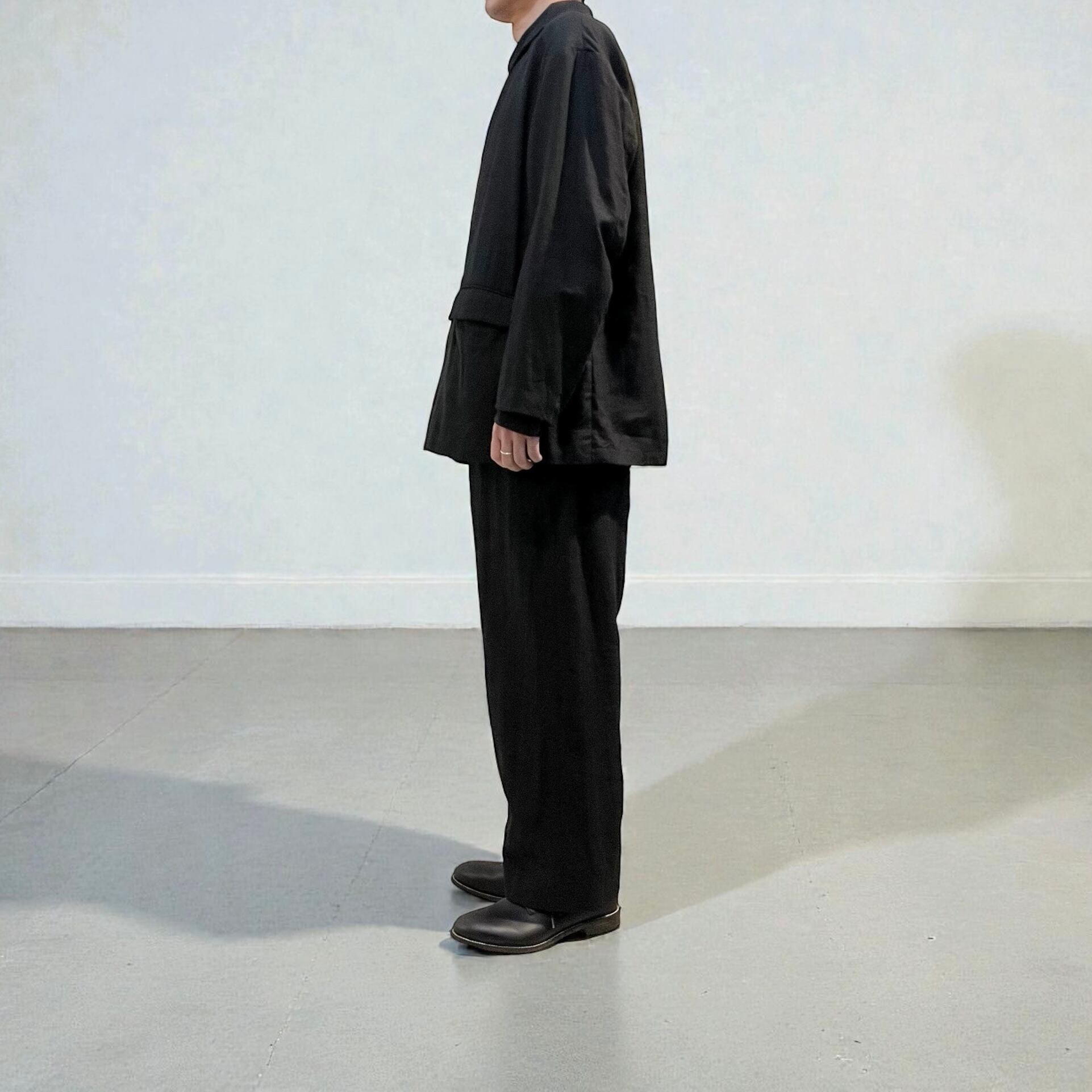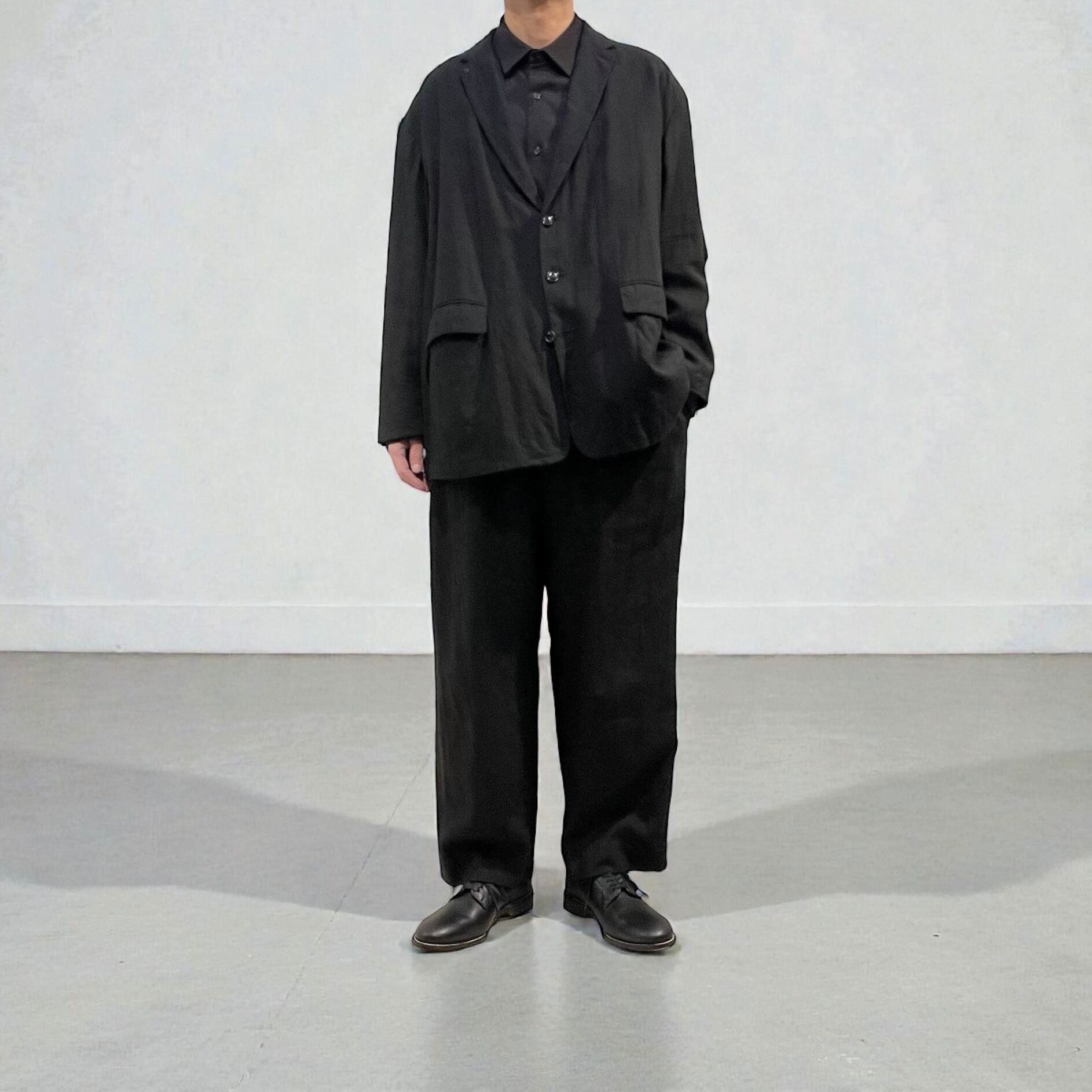 麻の粗野な風合いもありながら、上質さも兼ね備えたスズキタカユキらしい雰囲気に仕上がっています。