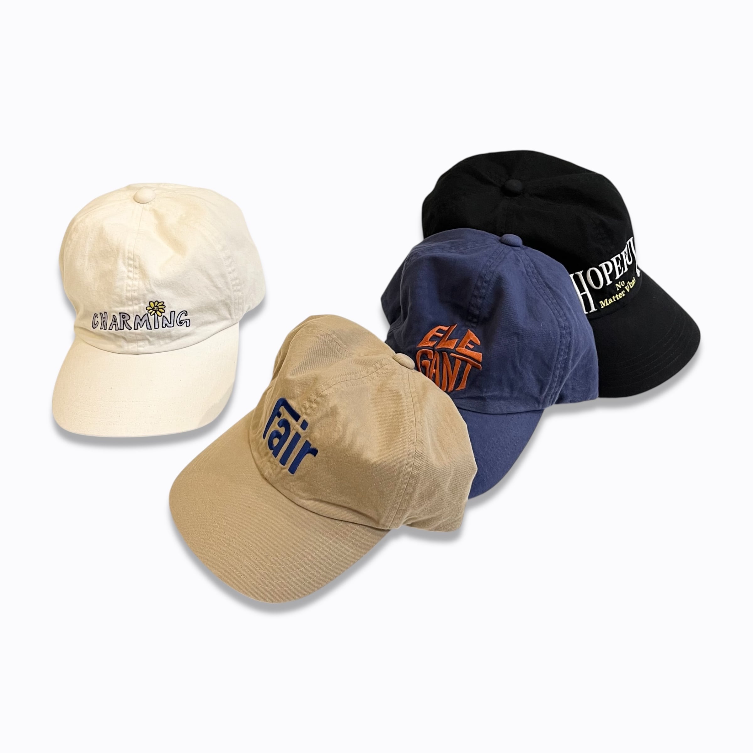 キャップそれぞれのカラーに合わせたメッセージと刺繍の相性抜群のワードセンスが秀逸。