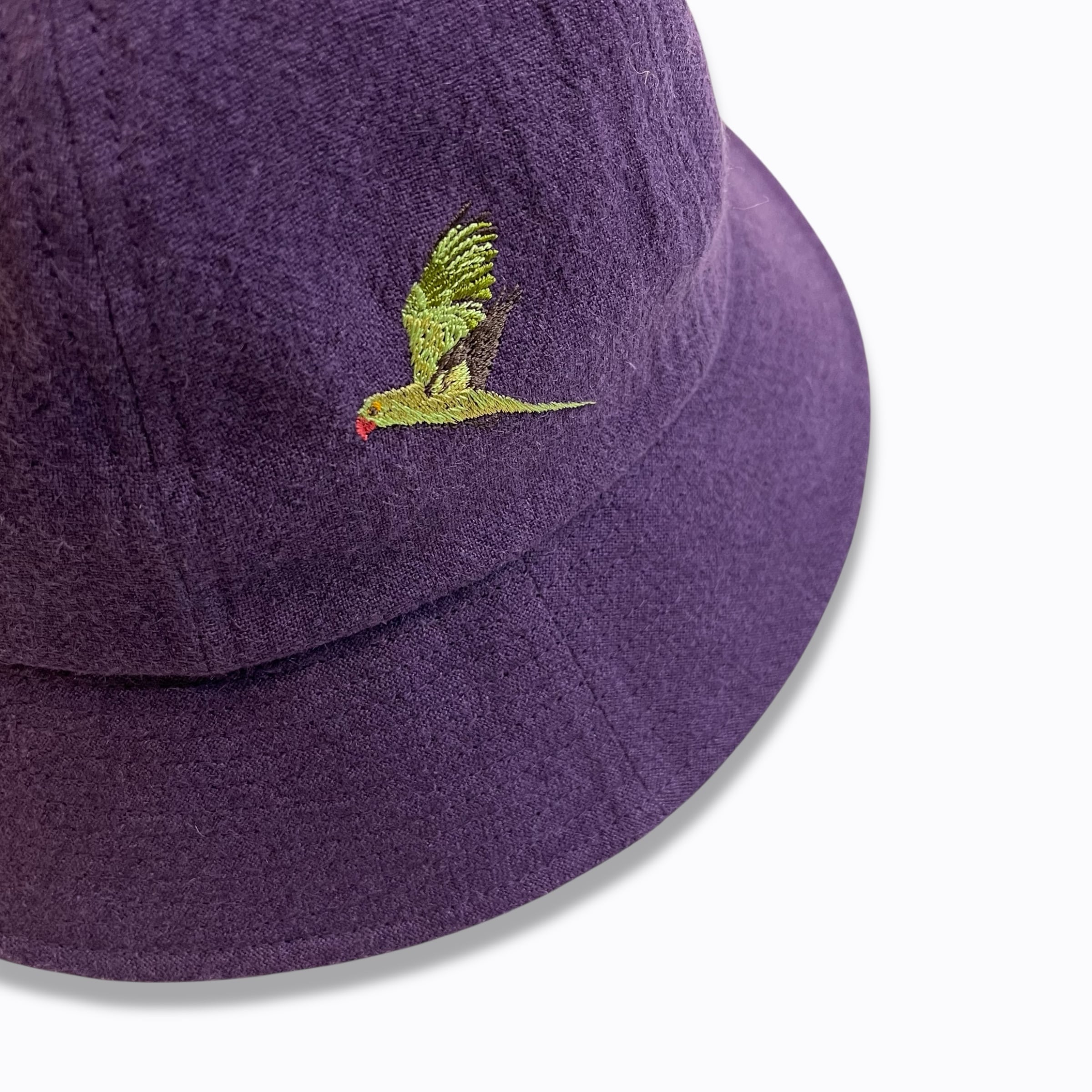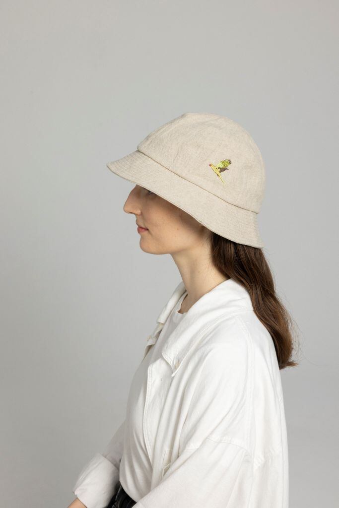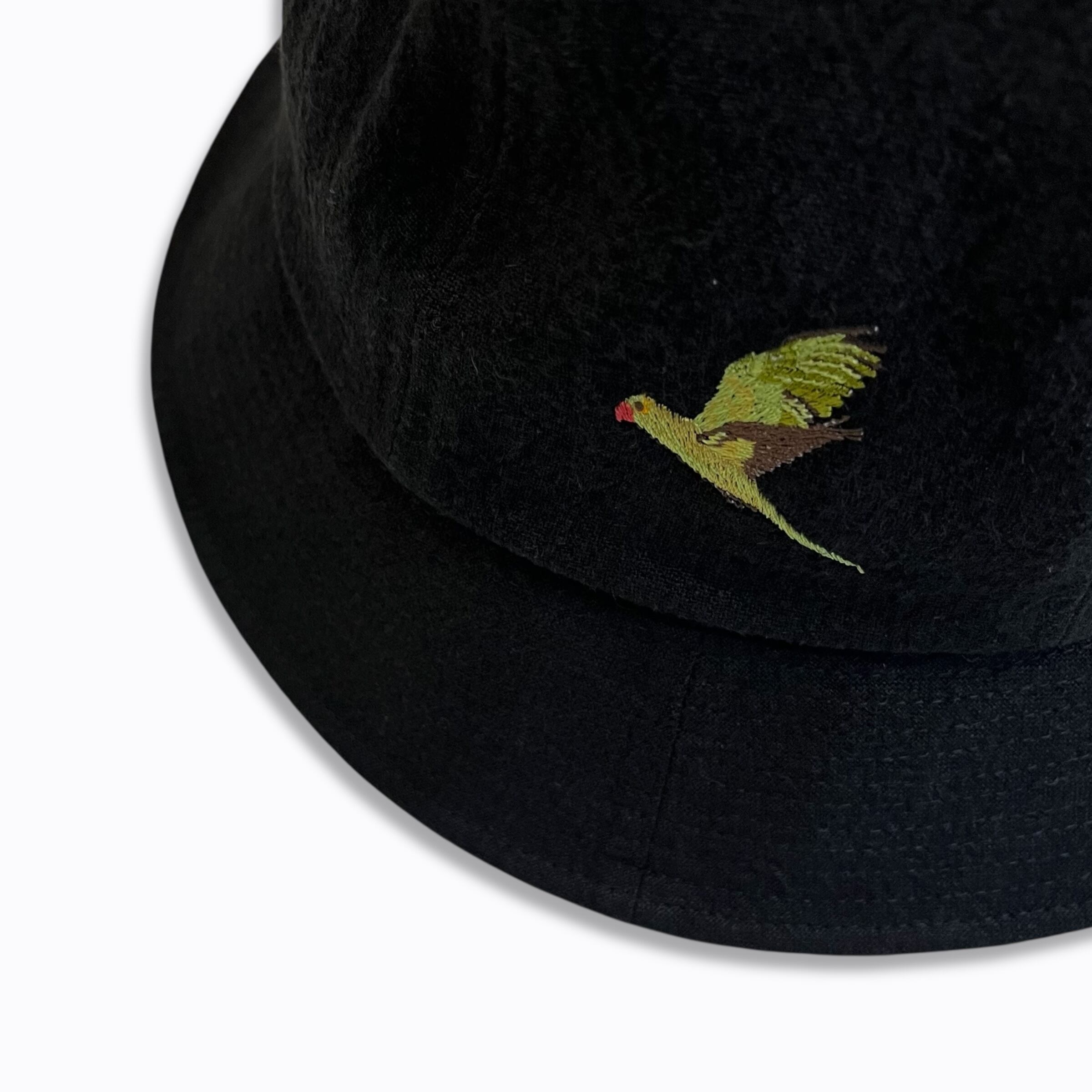 ワカケホンセイインコの刺繍が目を惹くメトロハット。