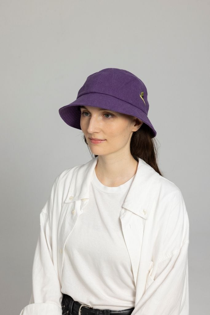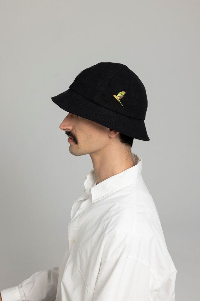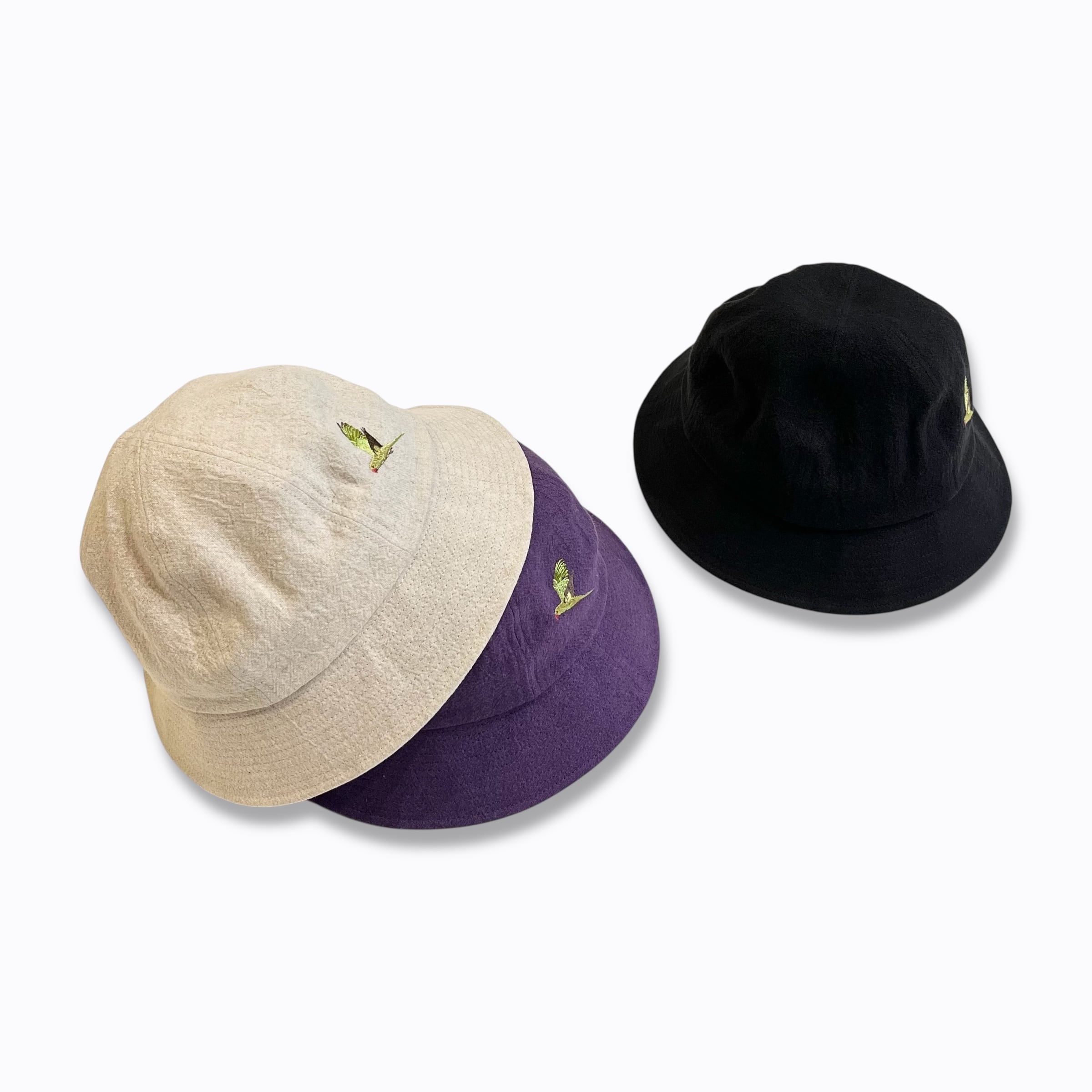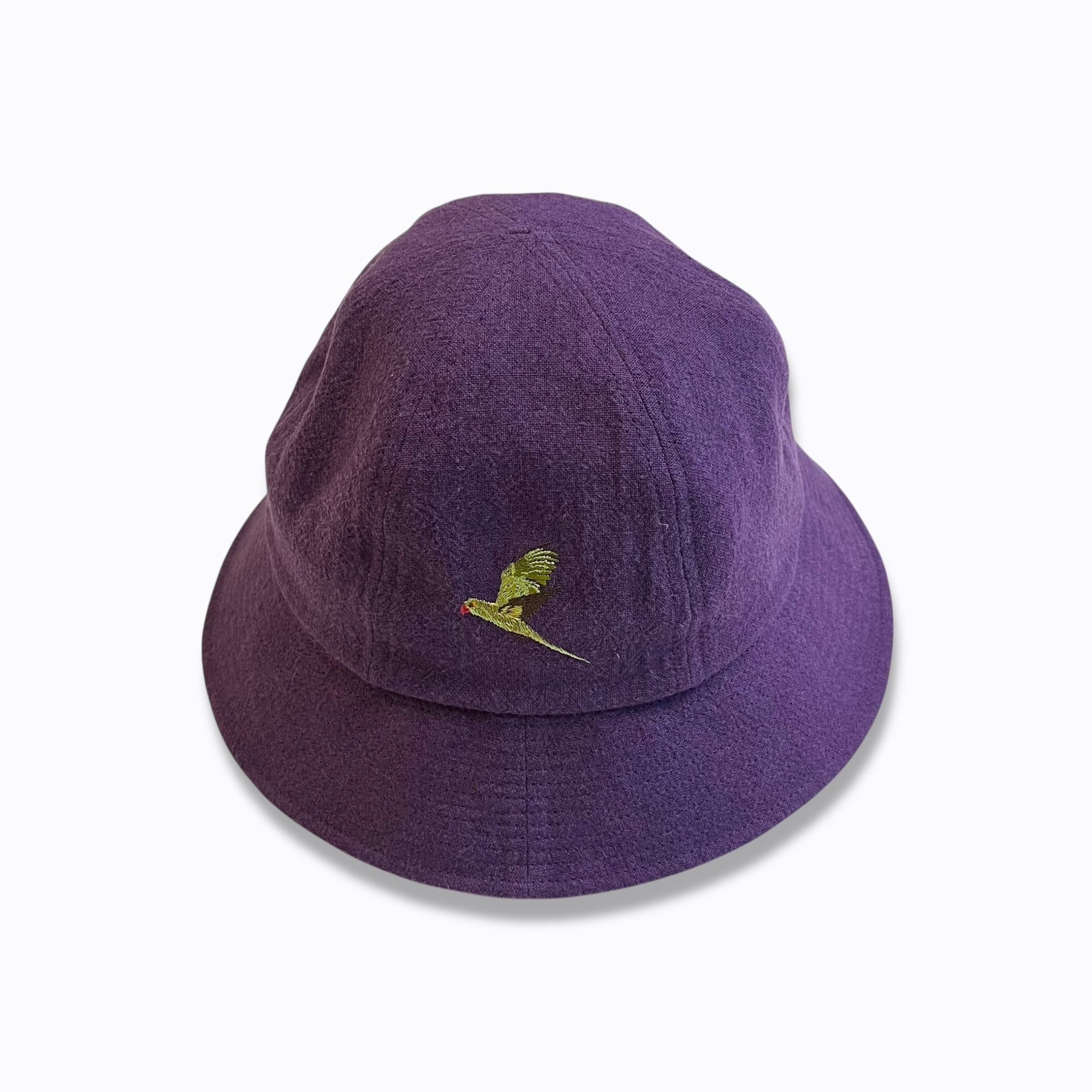 ワカケホンセイインコの刺繍が目を惹くメトロハット。