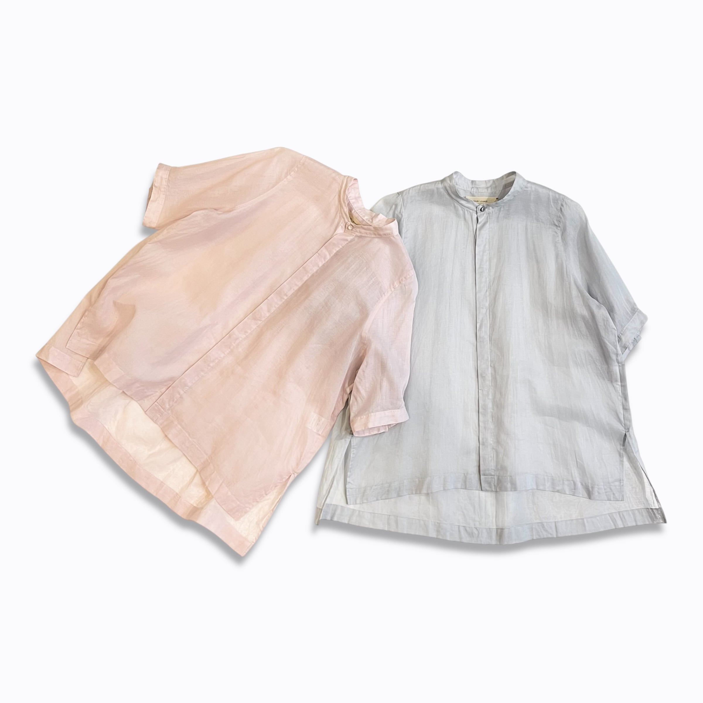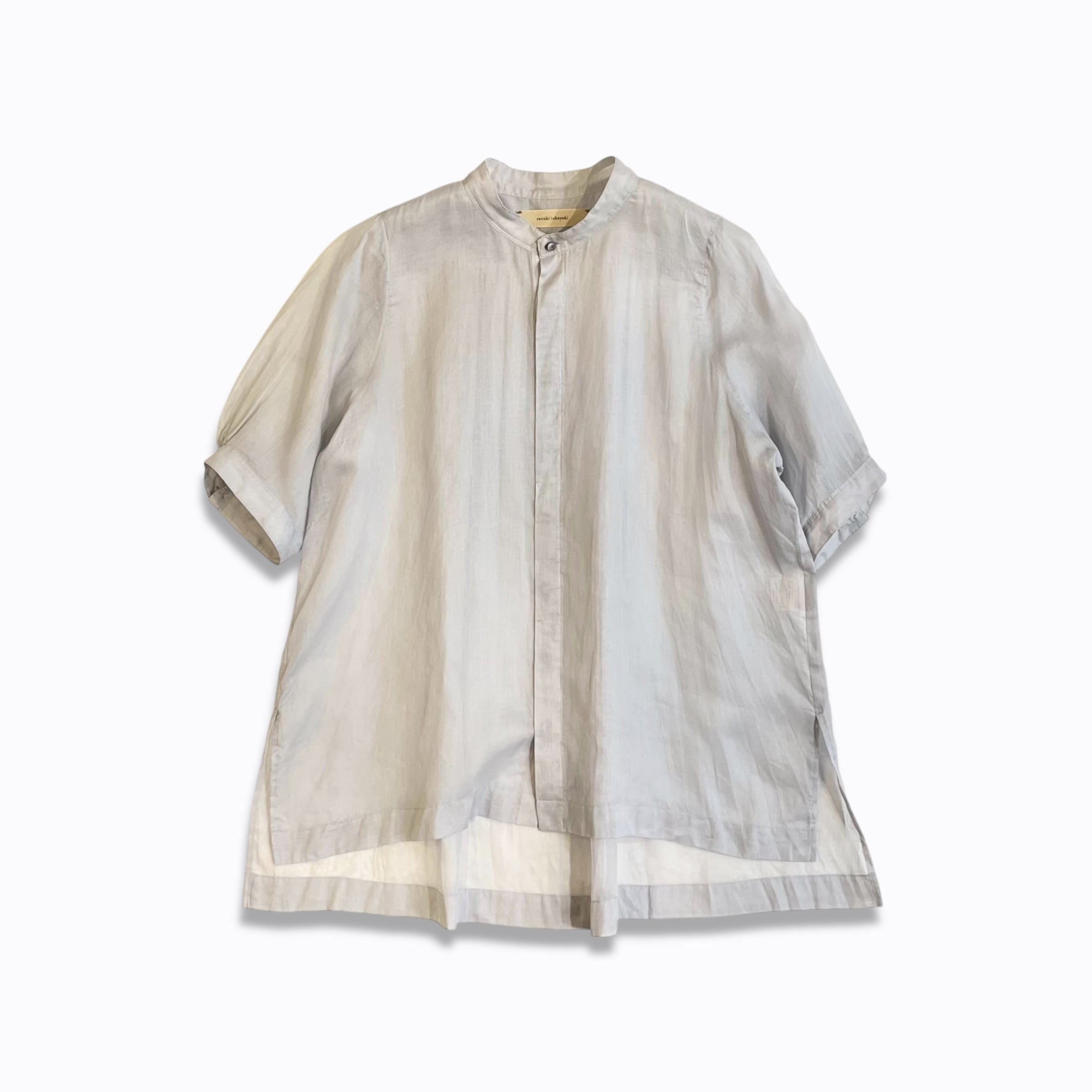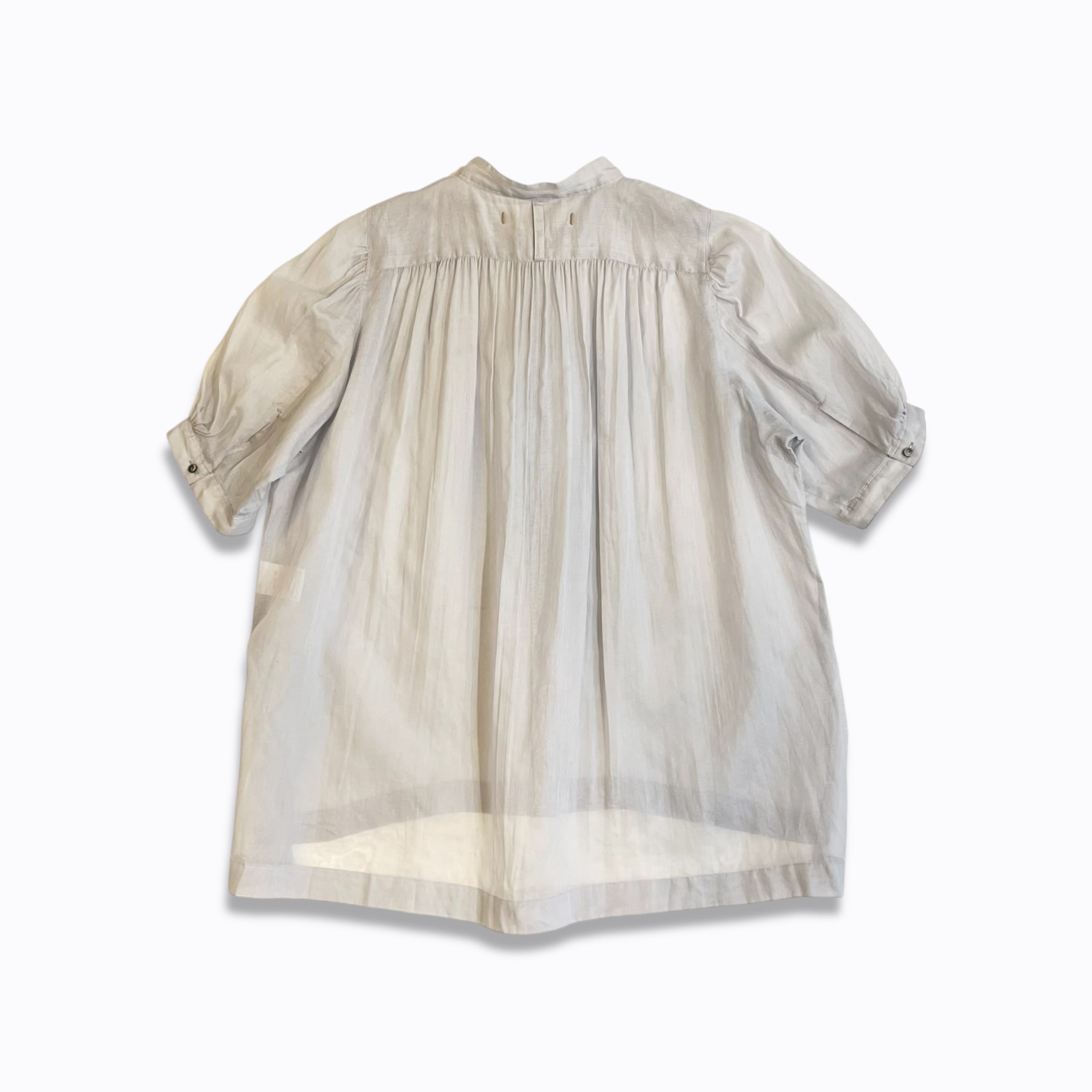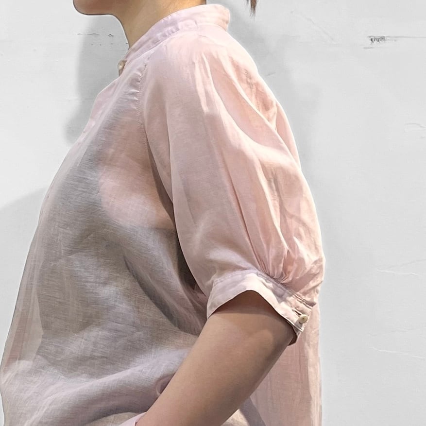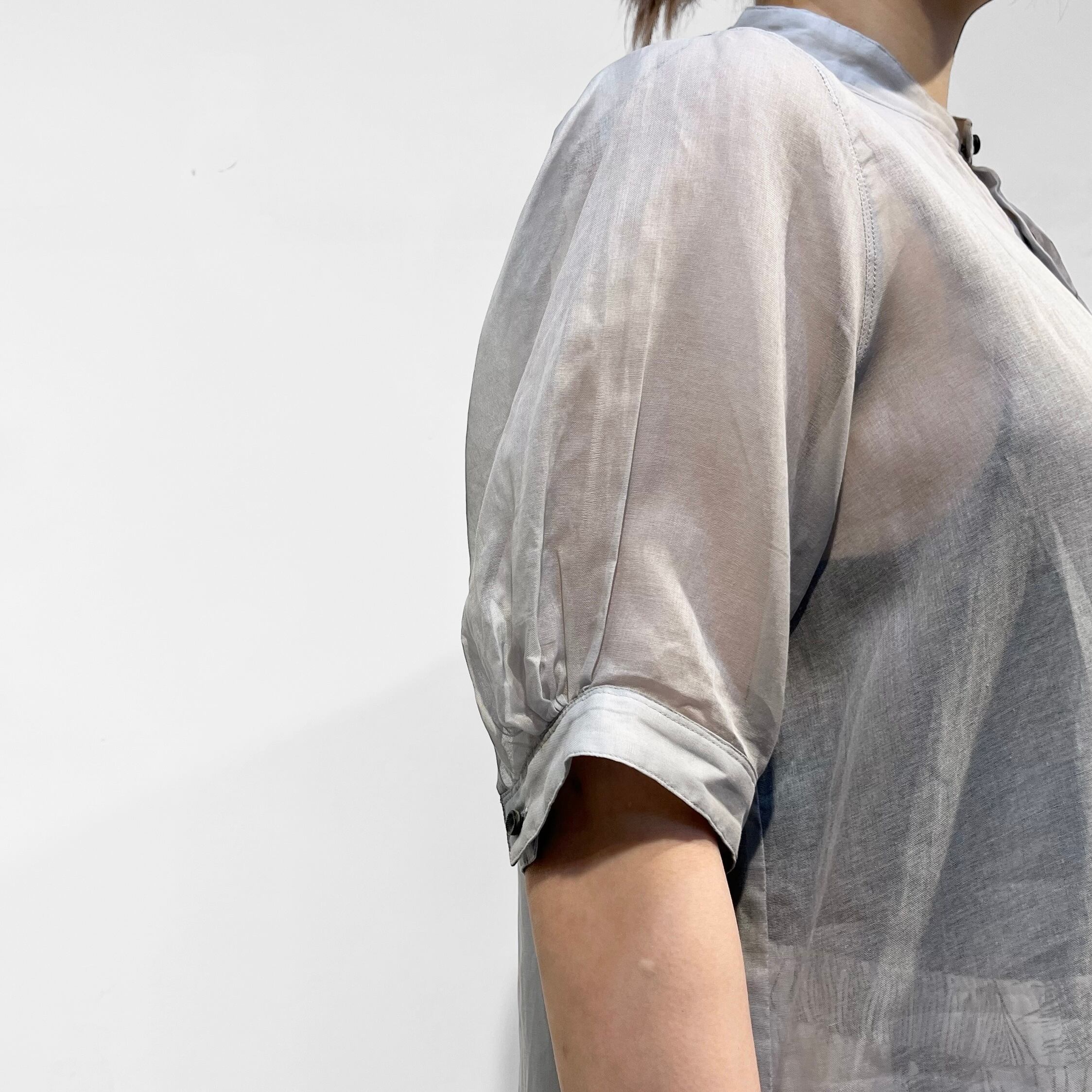 上質な長綿を使用し、薄手で適度なハリとコシを持つ透け感のあるコットンオーガンジー生地の半袖ブラウス。