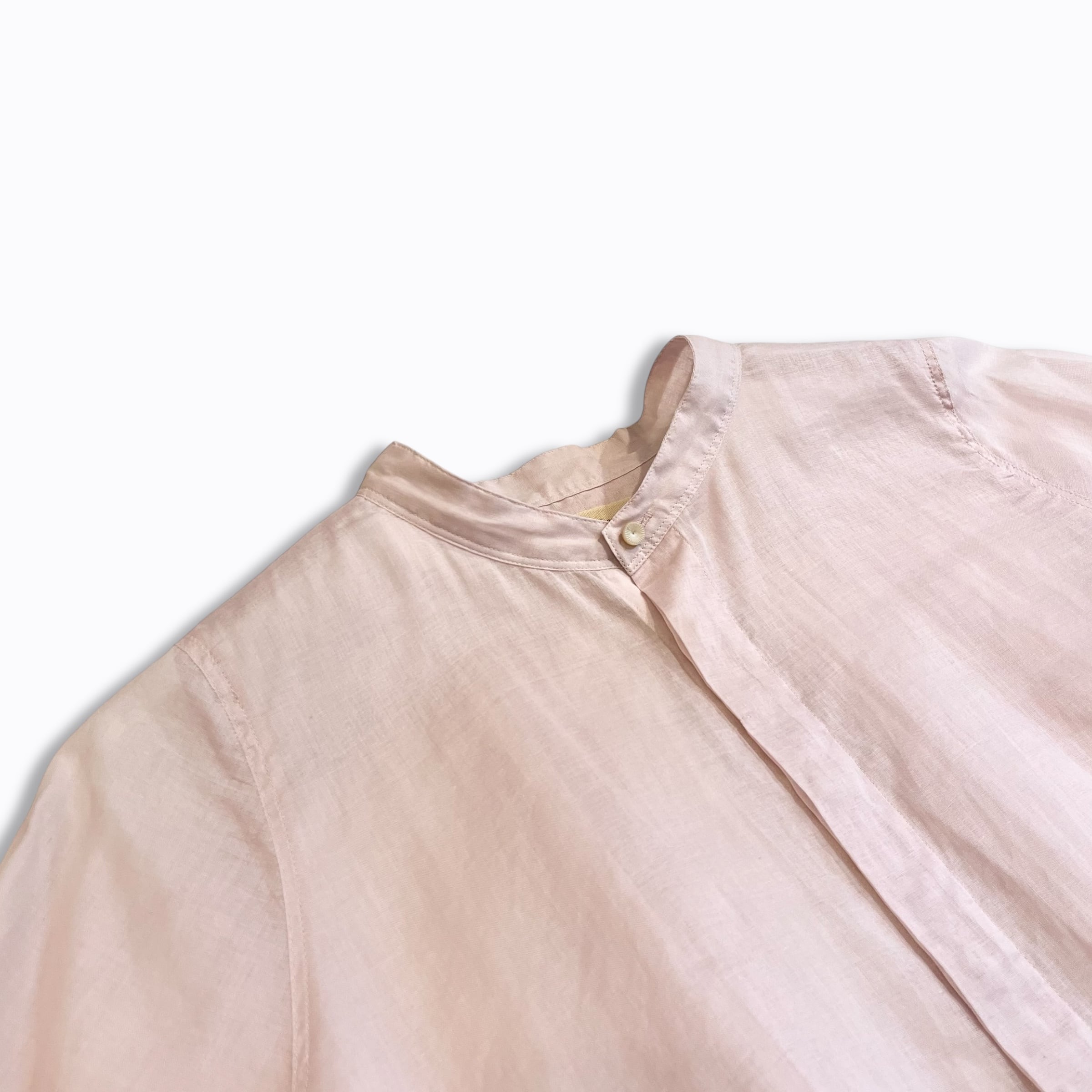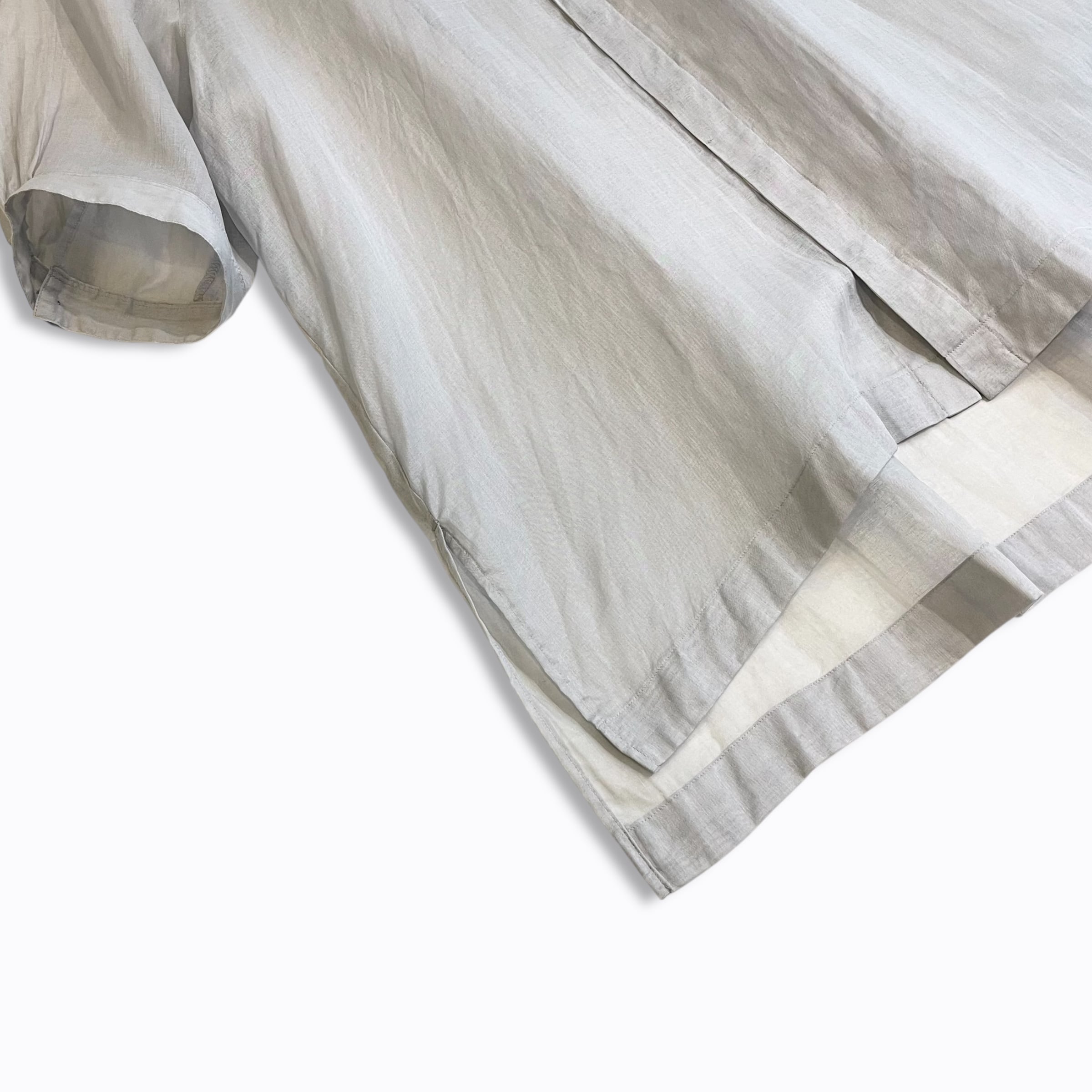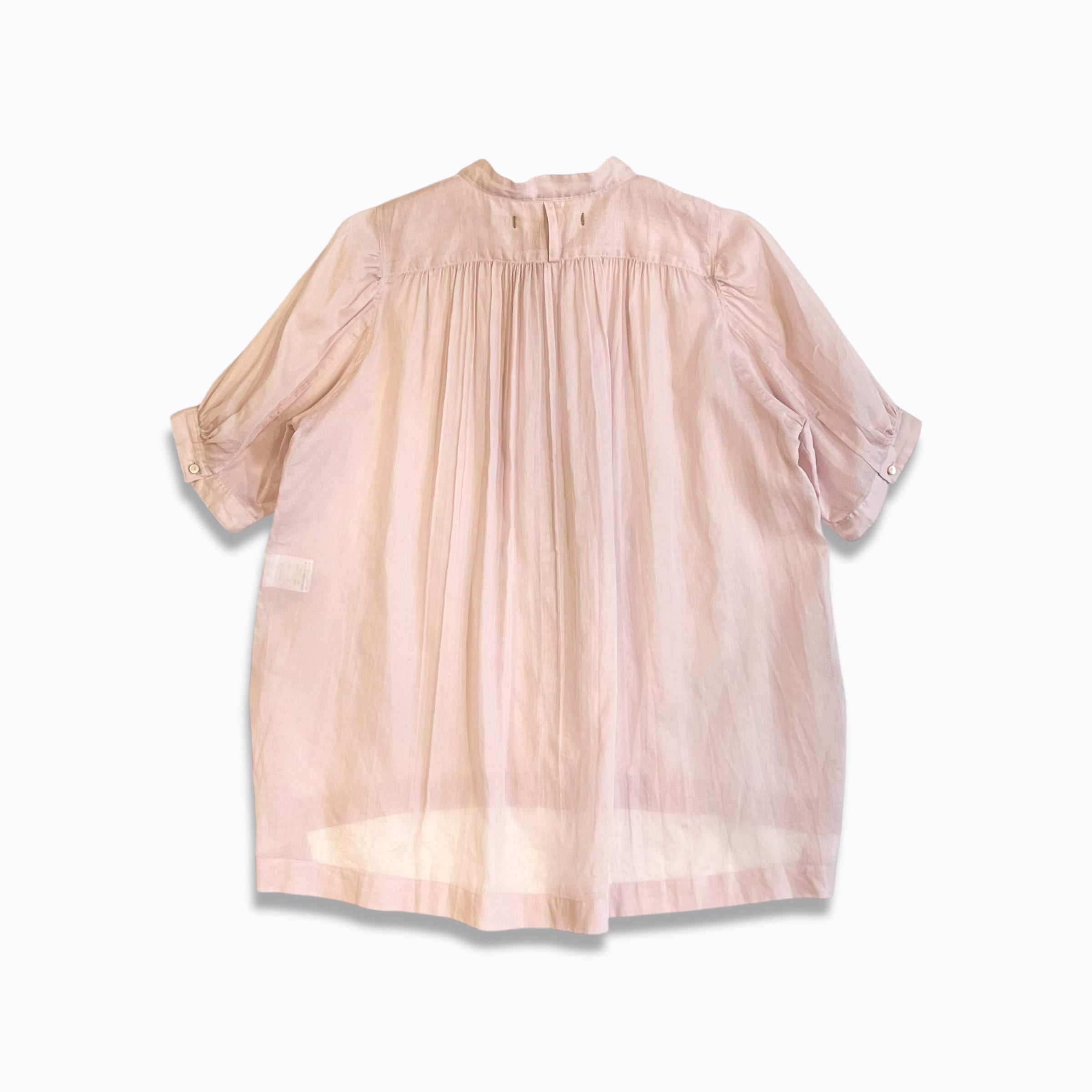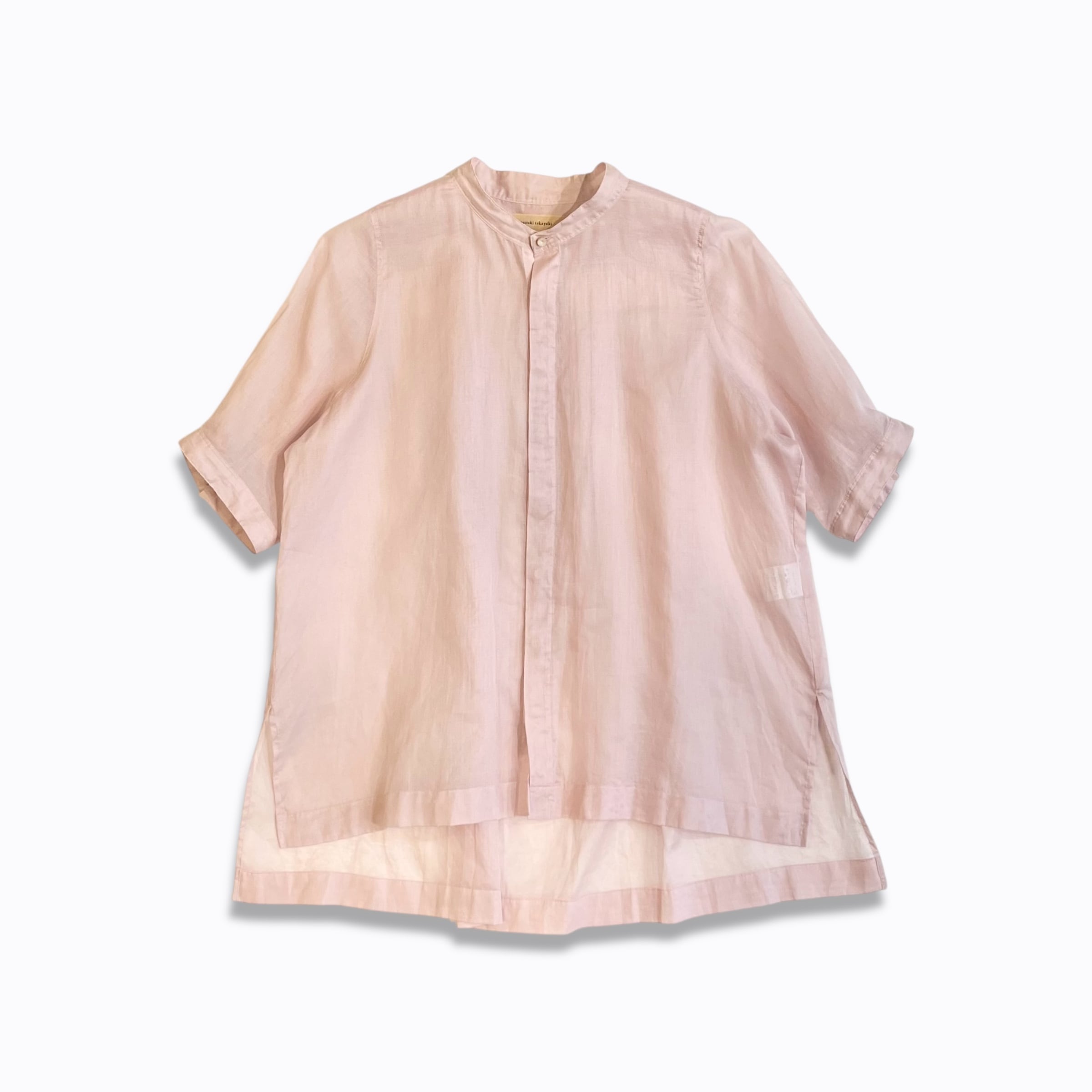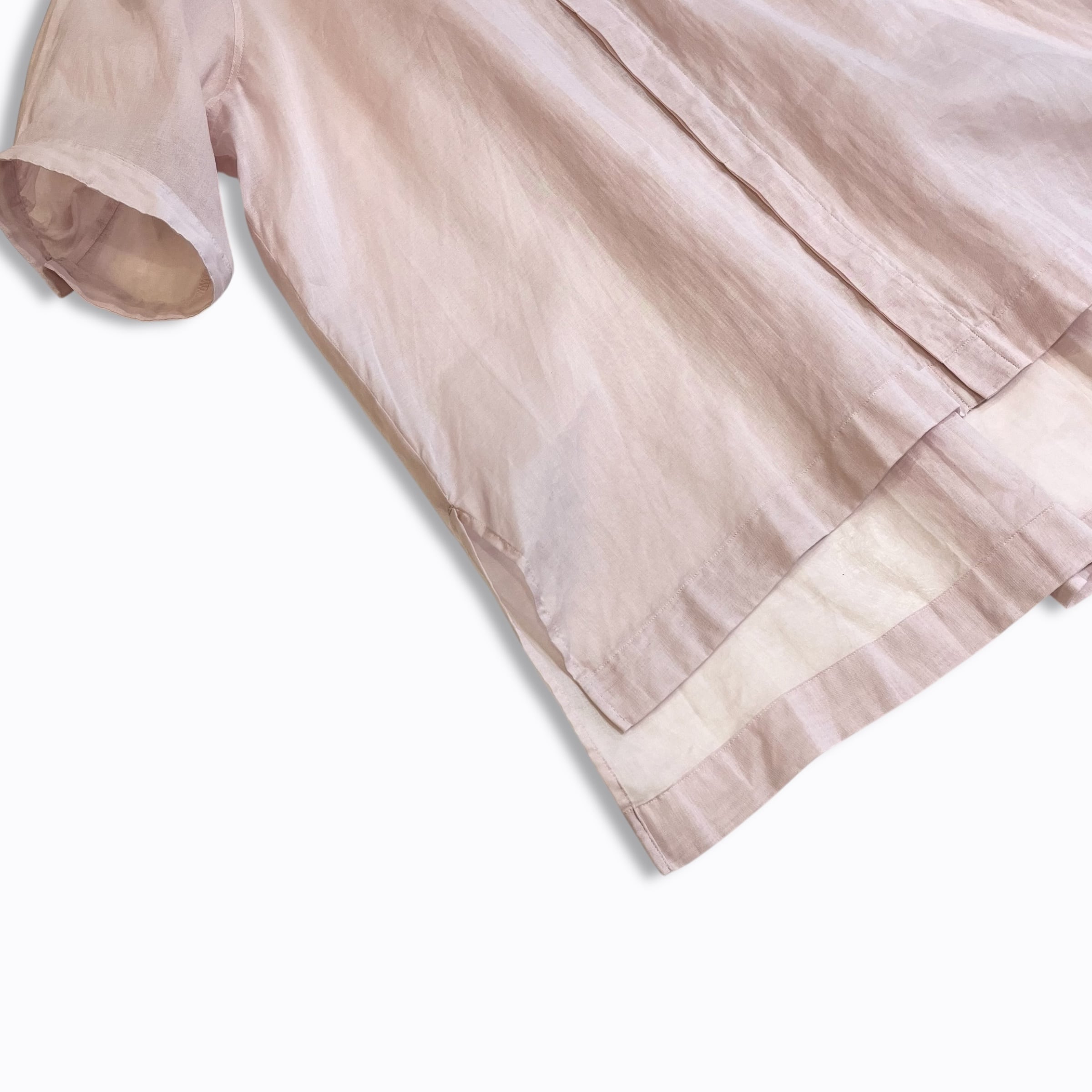 上質な長綿を使用し、薄手で適度なハリとコシを持つ透け感のあるコットンオーガンジー生地の半袖ブラウス。
