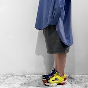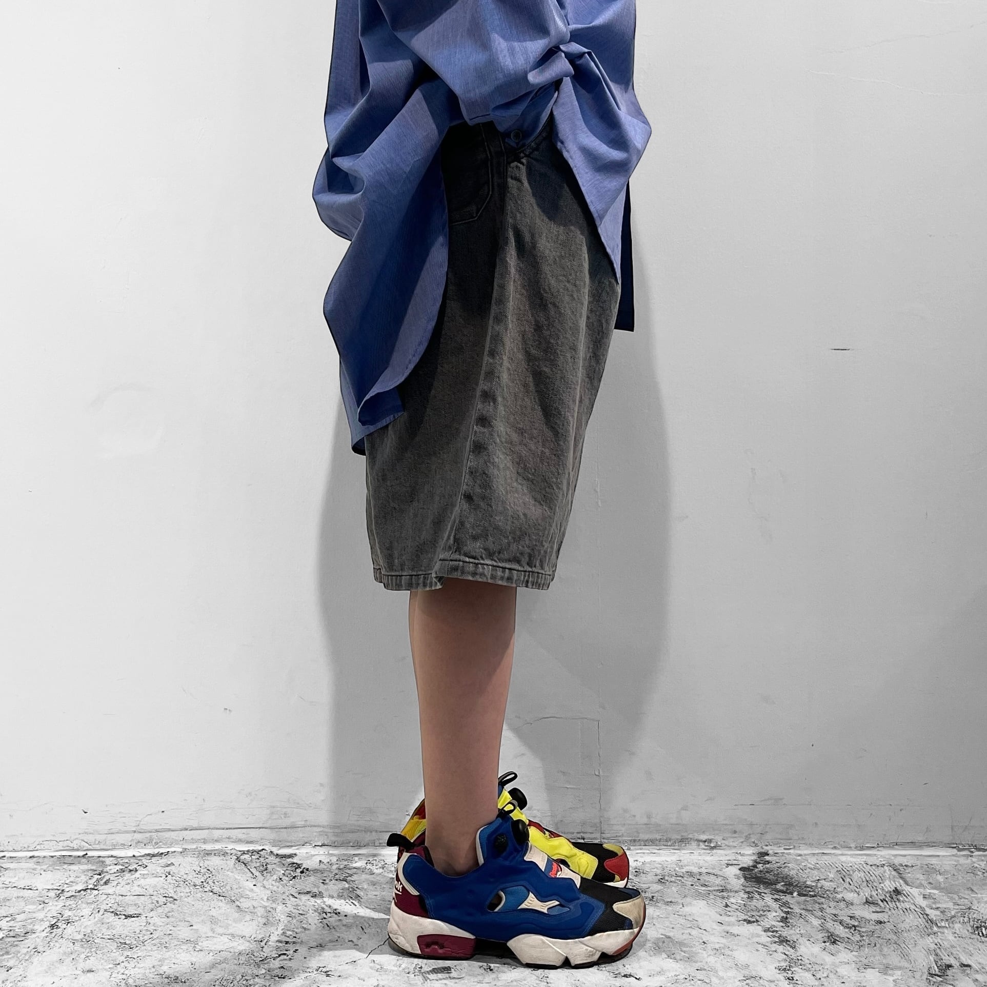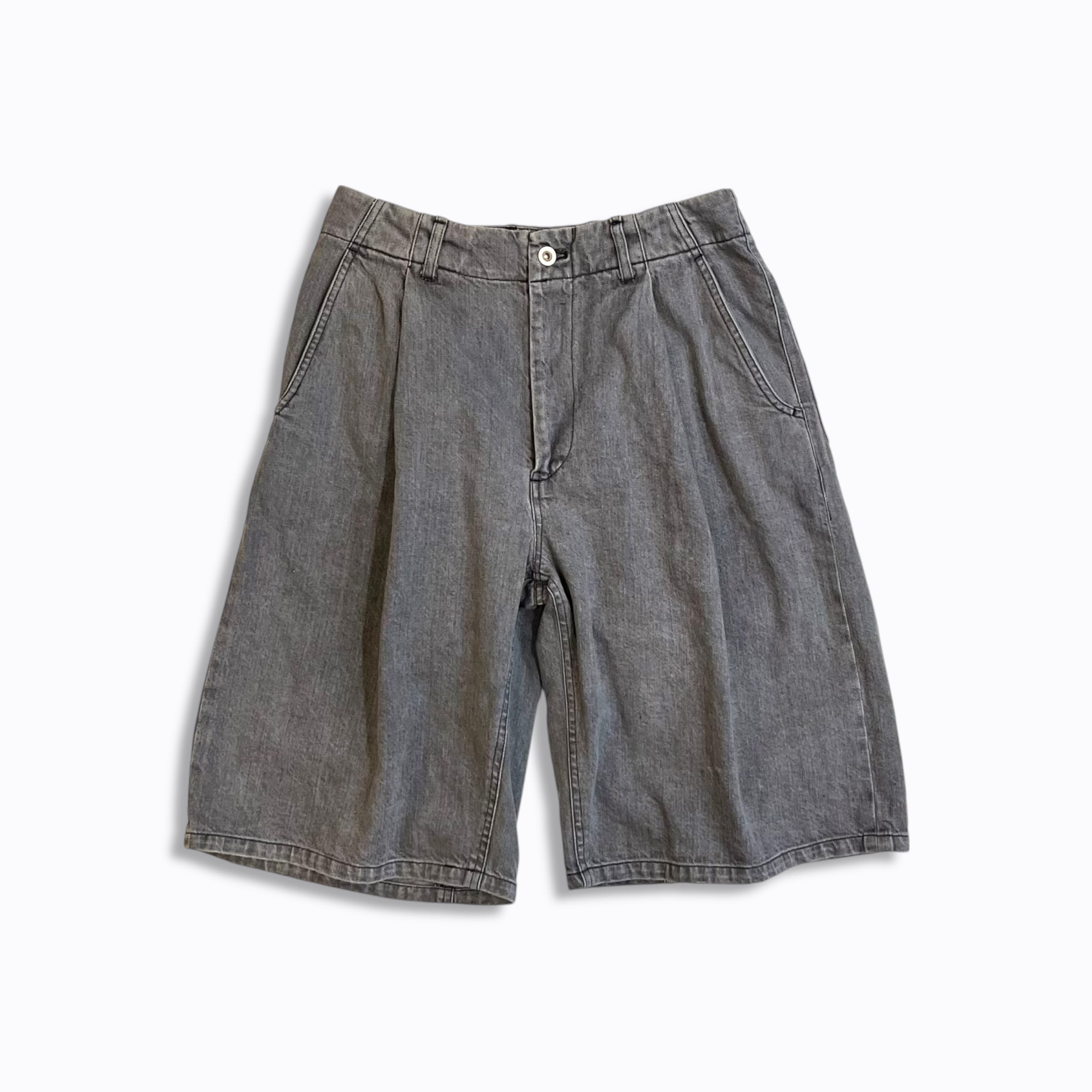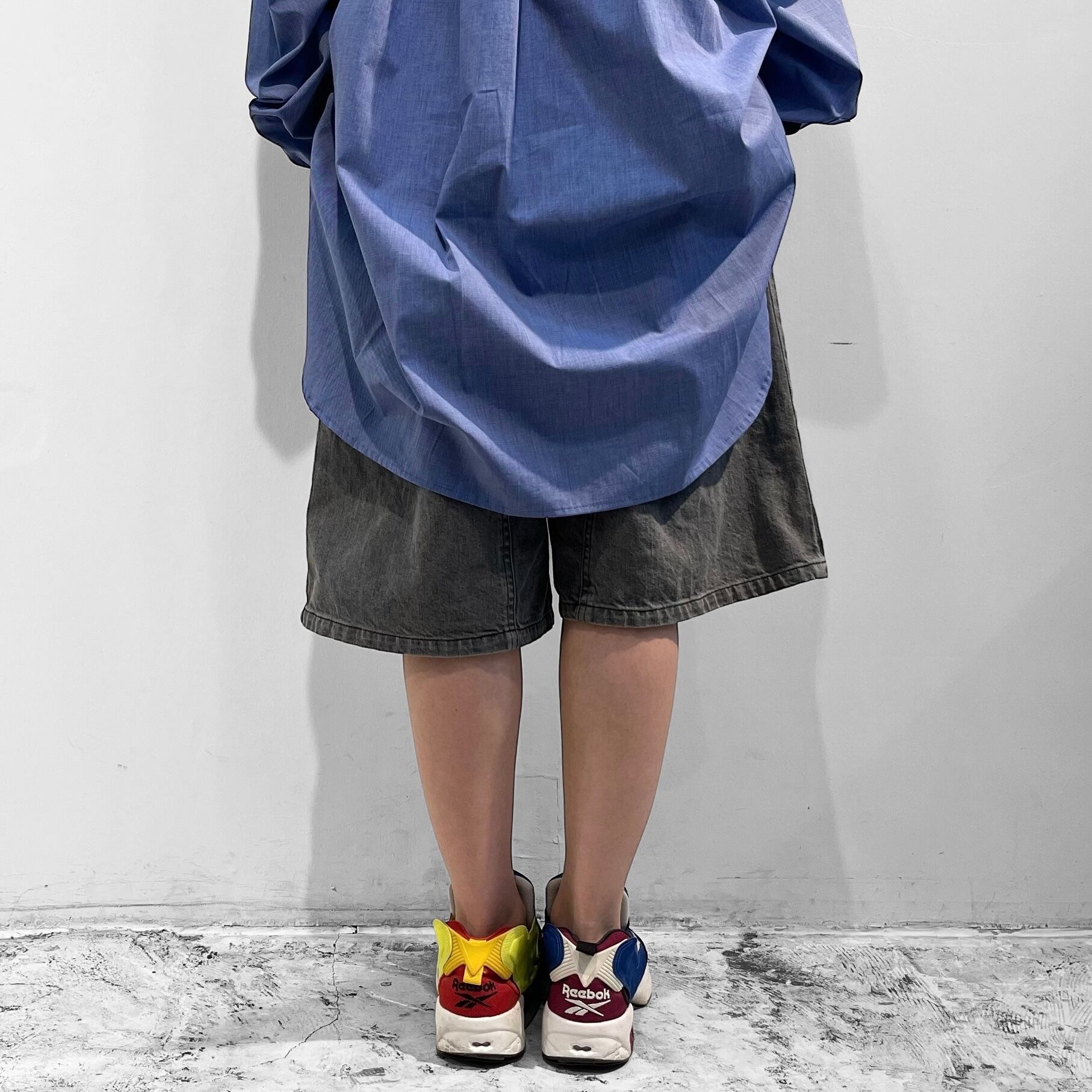 11.5オンスの岡山産セルビッチブラックデニムを使用したワイドショーツ。