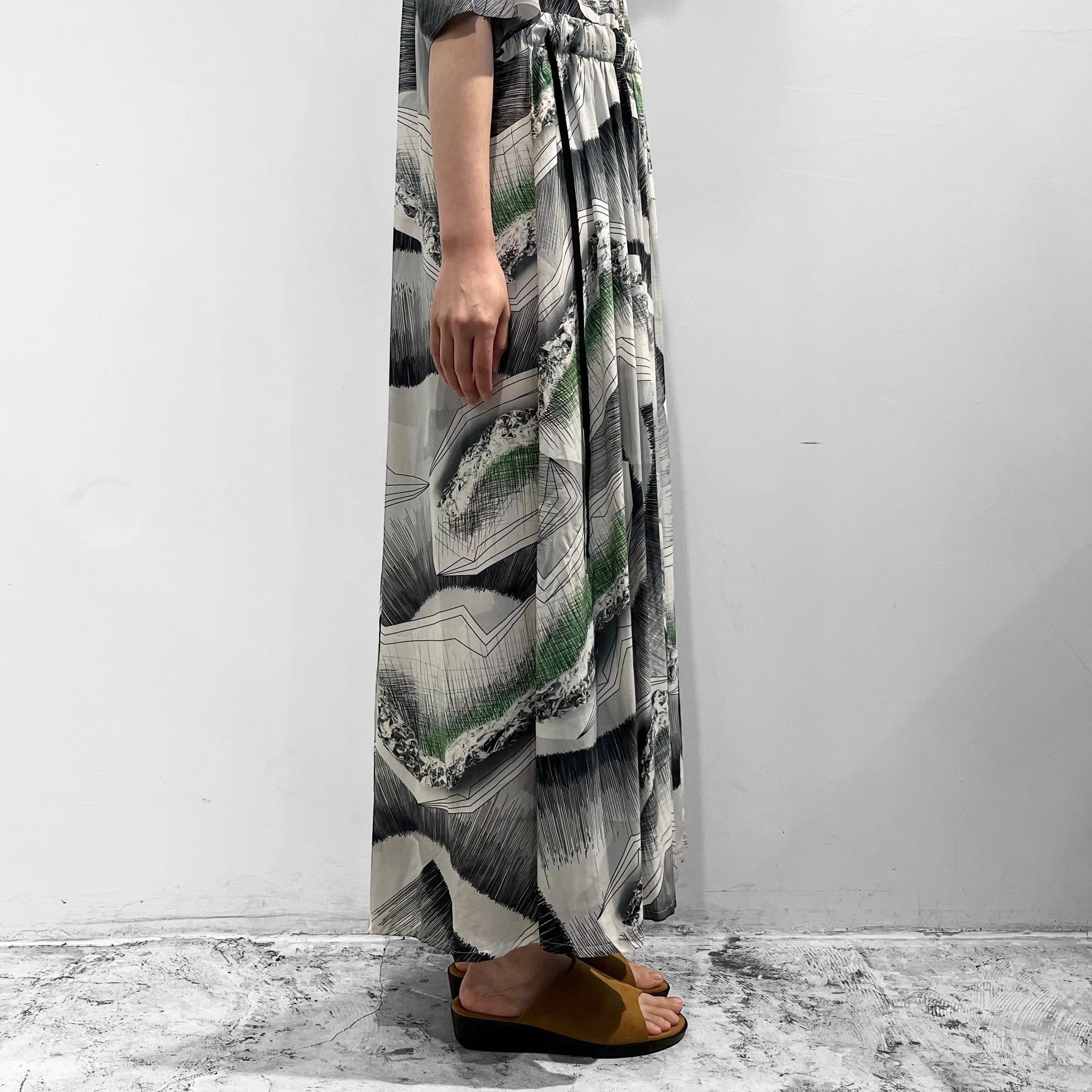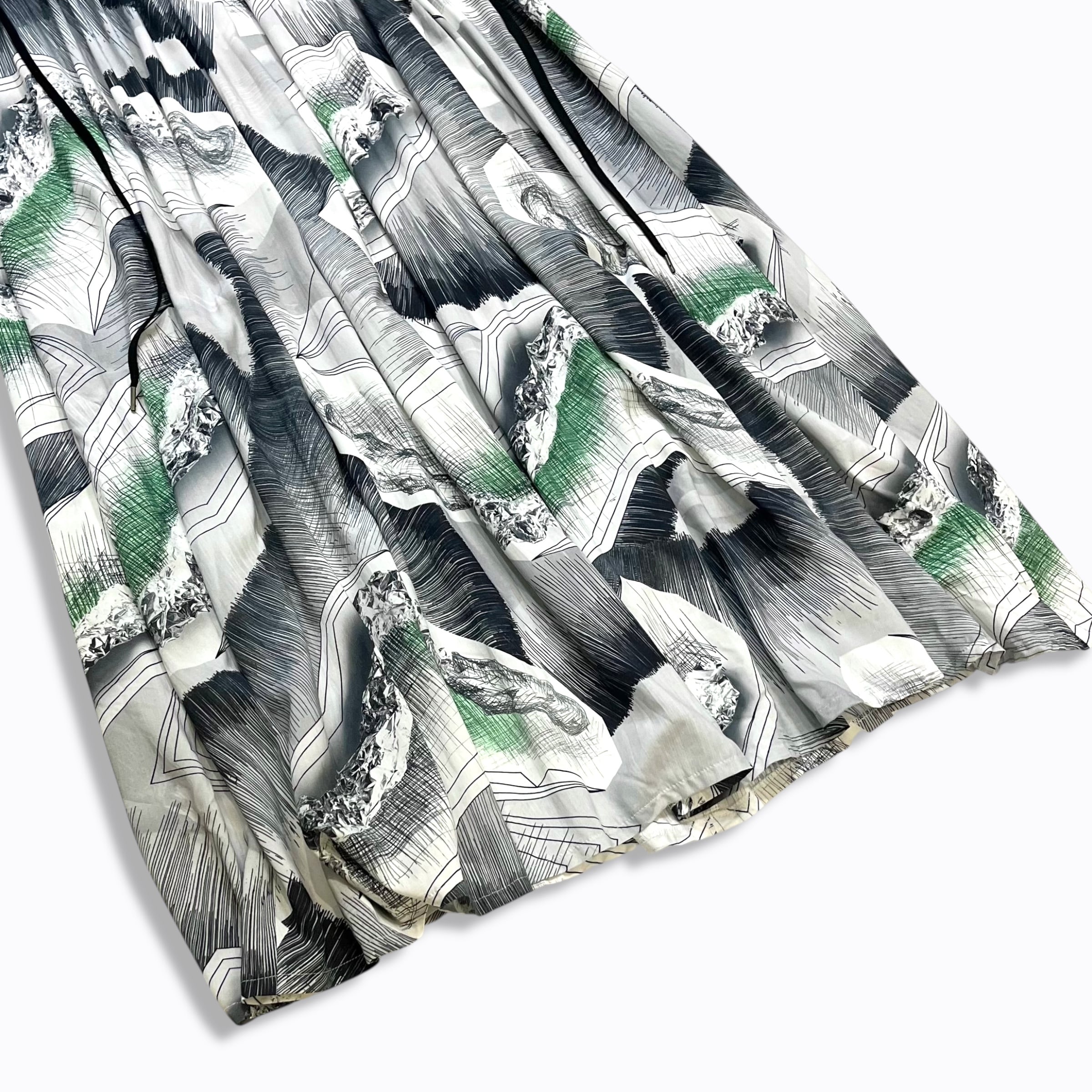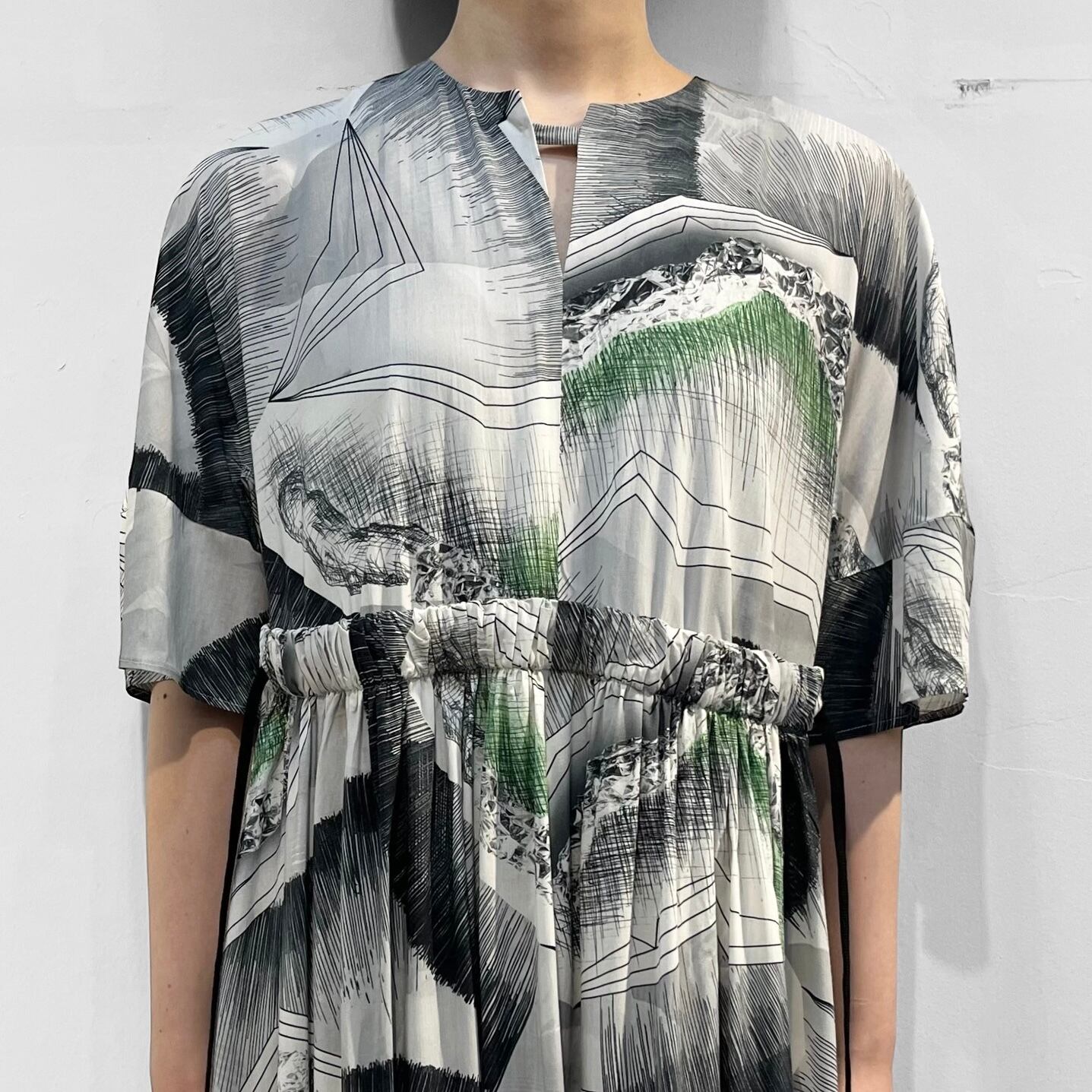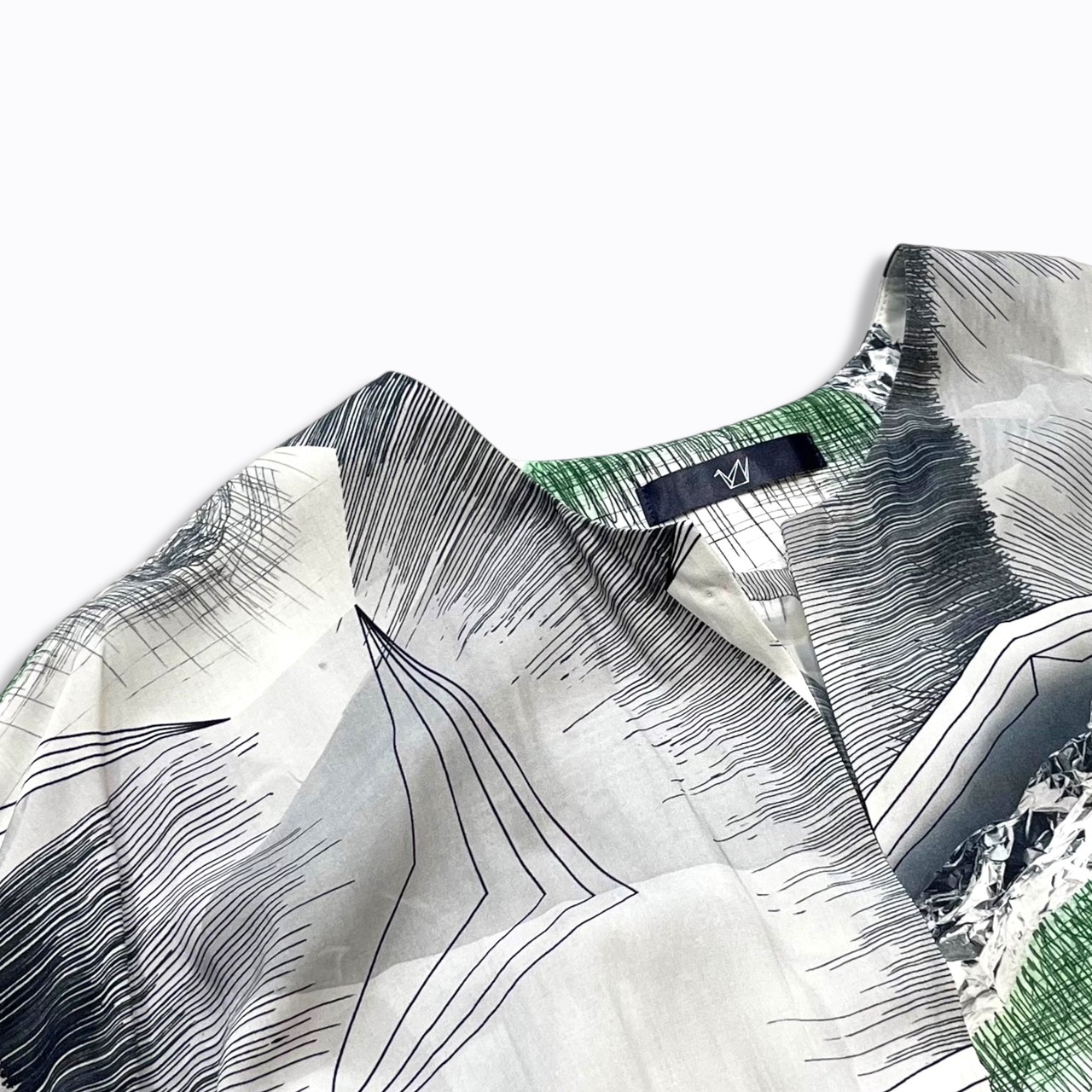 アルミホイルとペンで描かれた「松の木の葉のかたまり」と、ペンで描かれた「松とまつ毛」をモチーフとして生地の柄にしています。