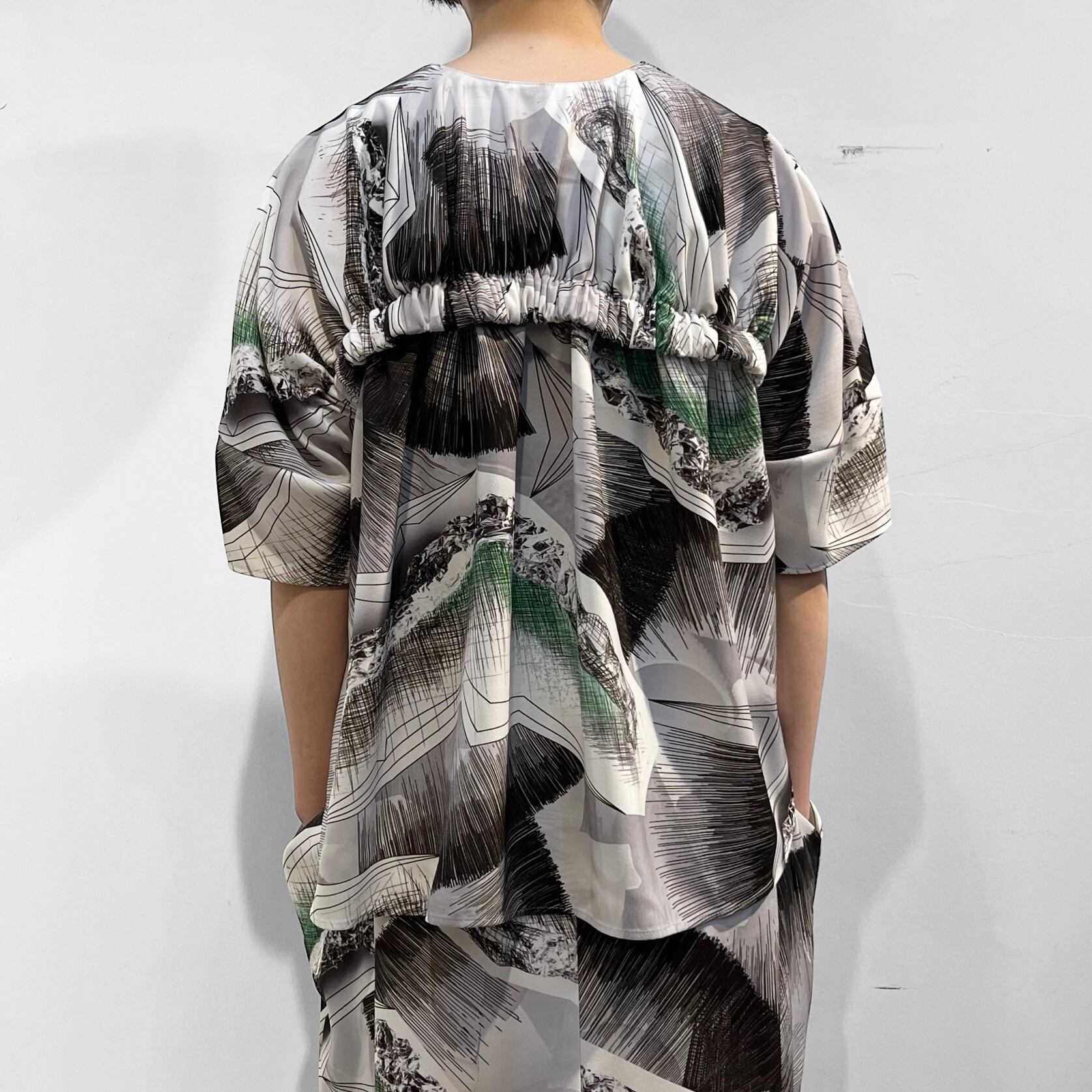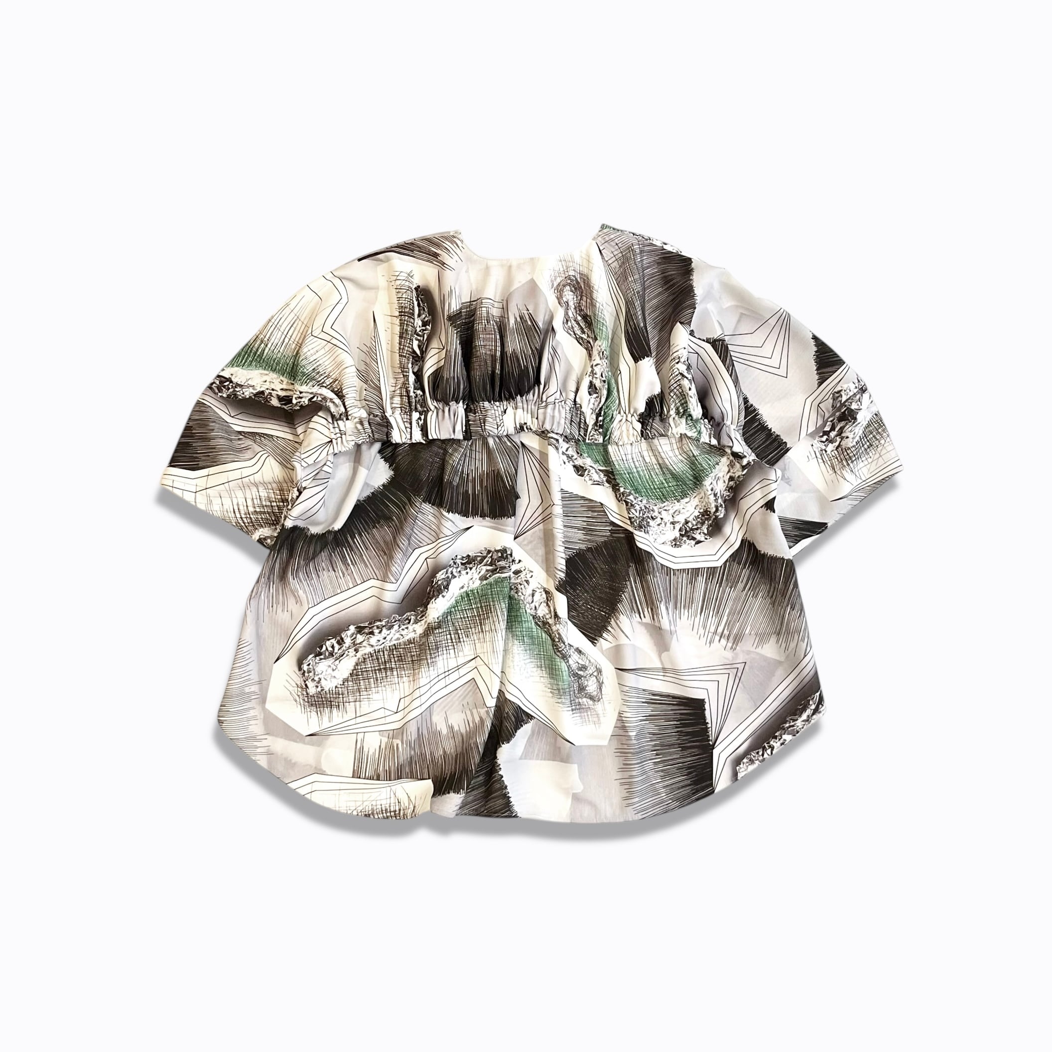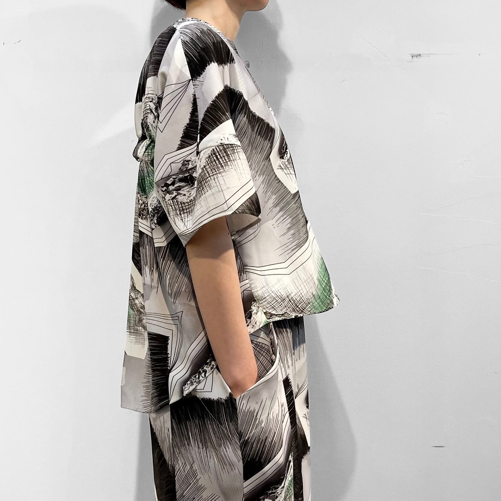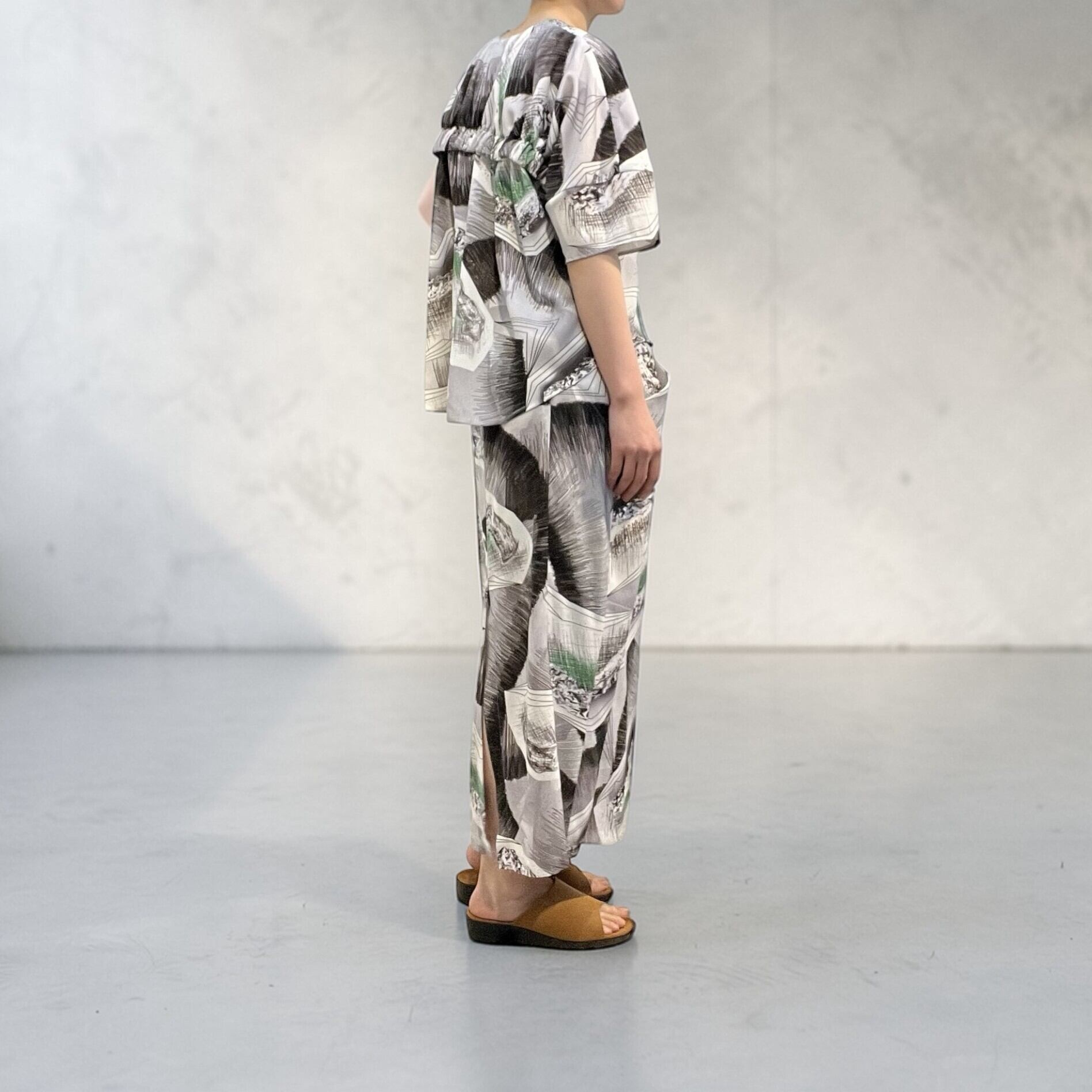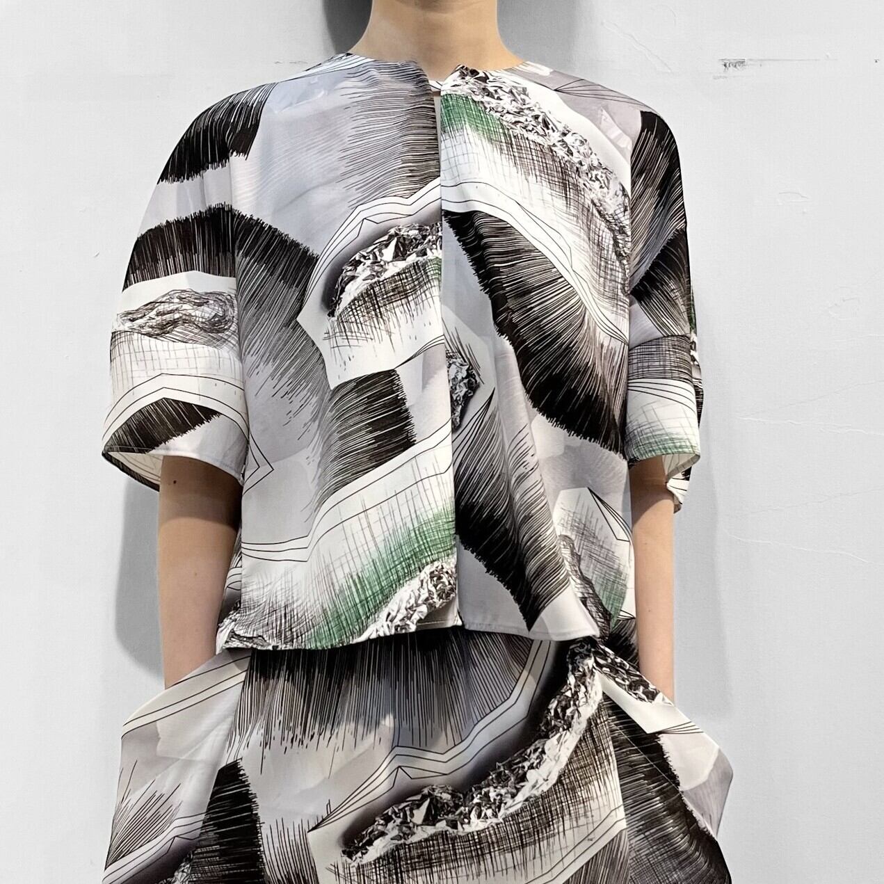 凹凸感のある中肉ジョーゼット生地の、ワイドパンツやロングスカートとも相性の良いショート丈プルオーバー。同素材ボトムスとセットアップで合わせるのもおすすめです。