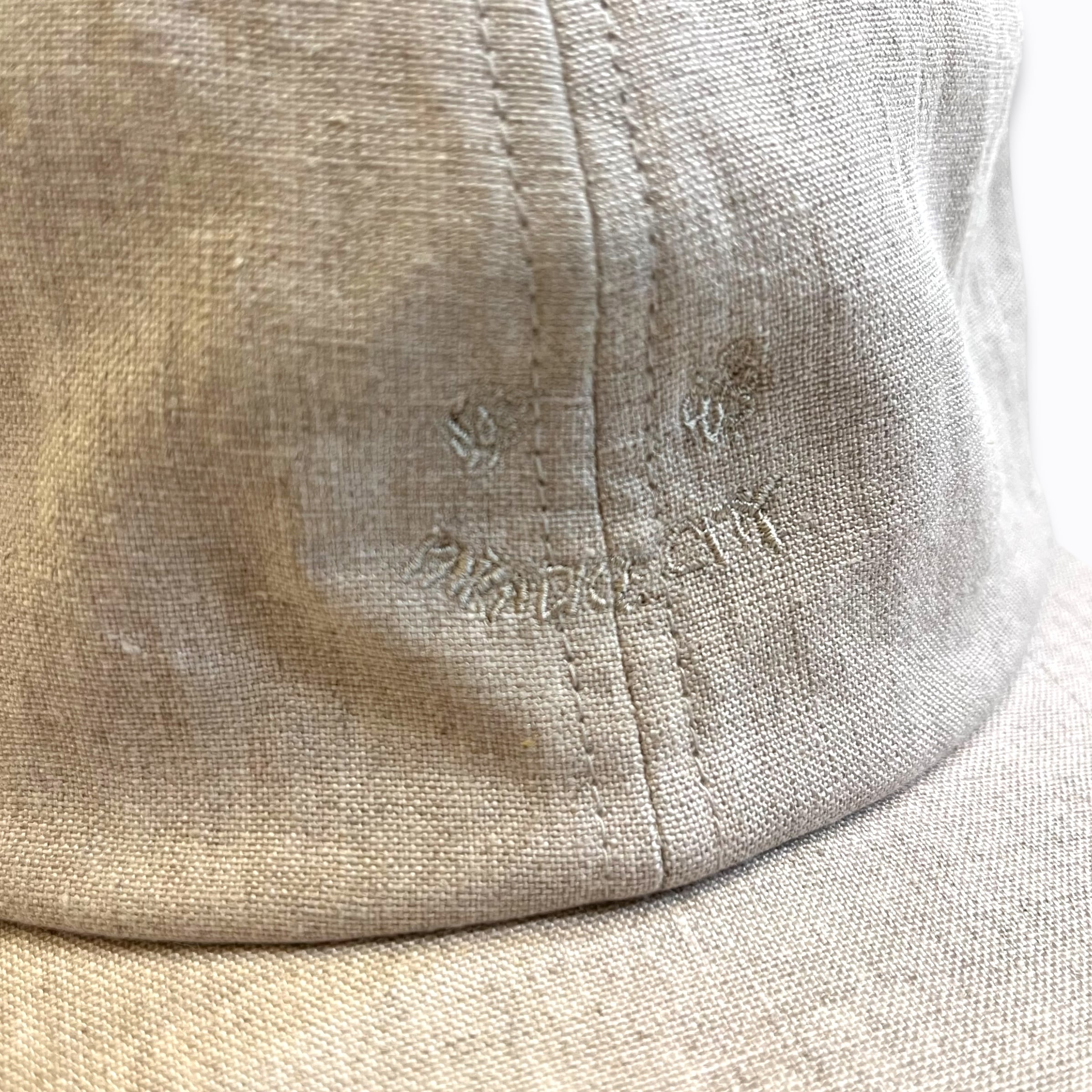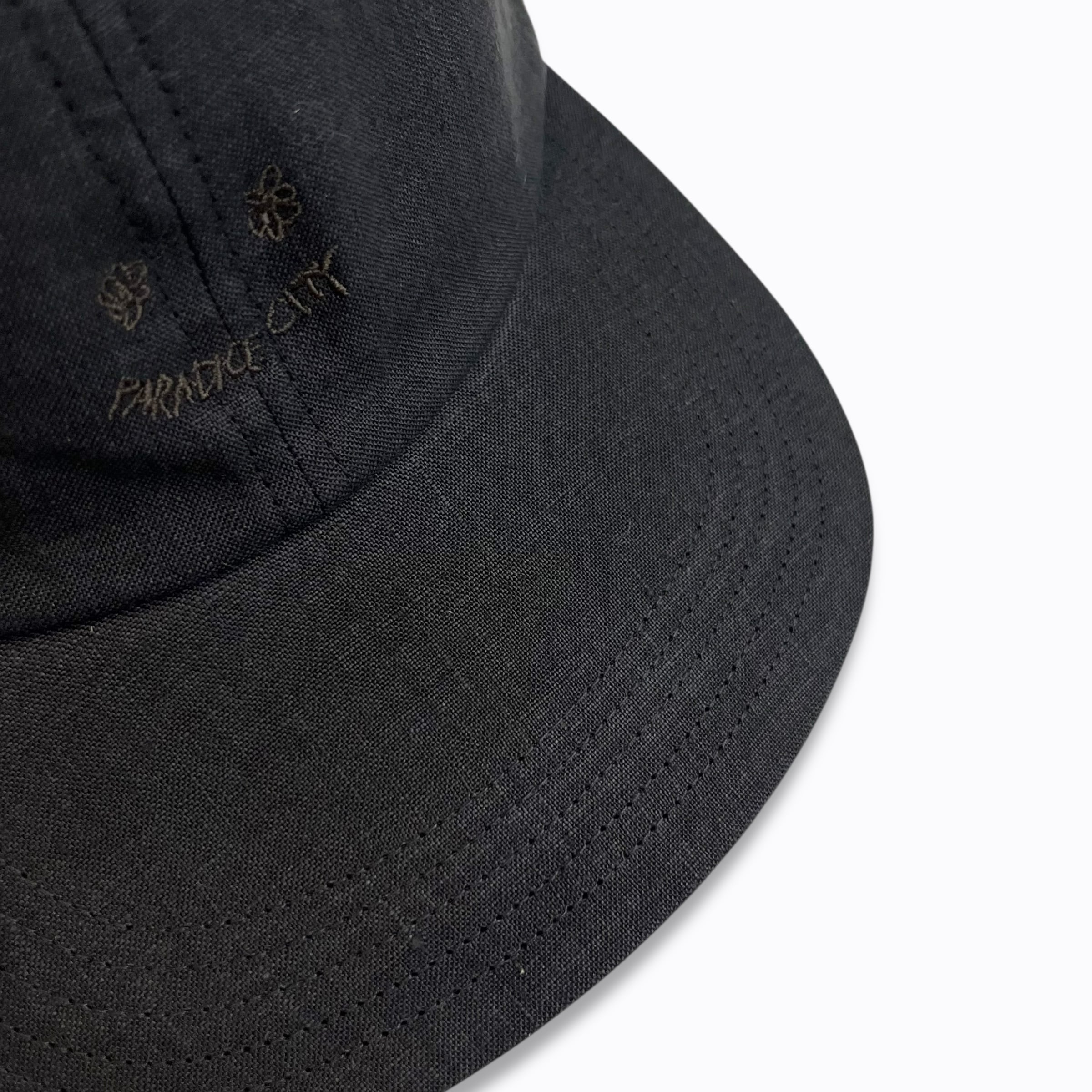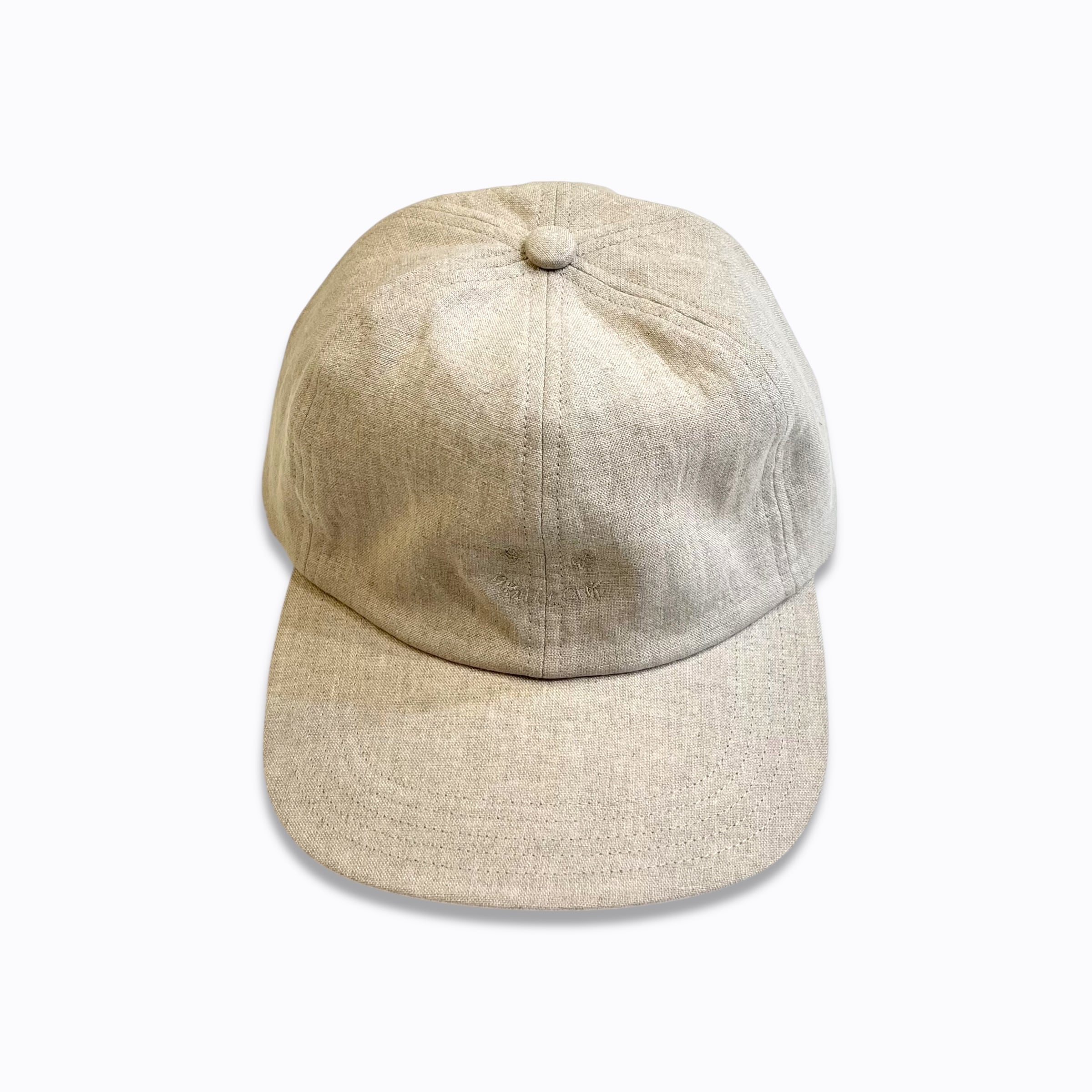 キャッチーな刺繡を生地と同色の糸でさり気なく施したスマイリーキャップ。