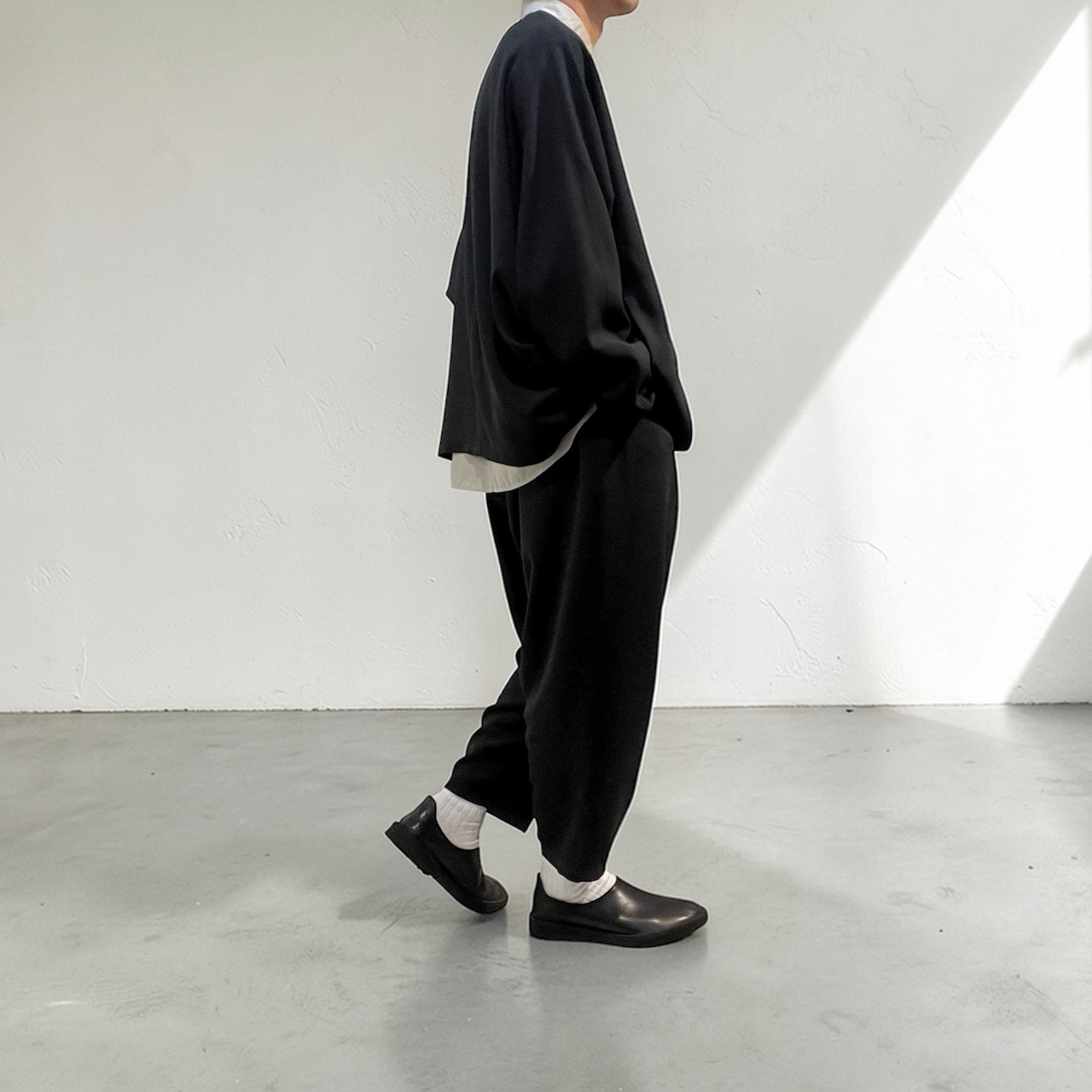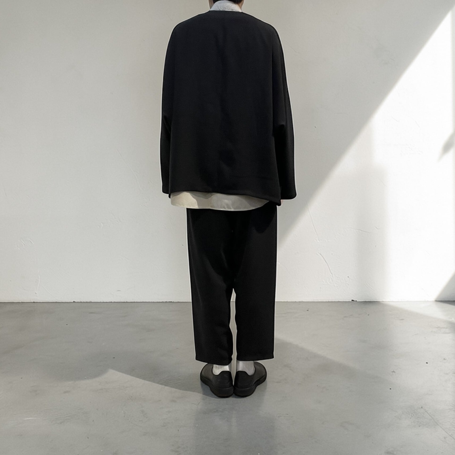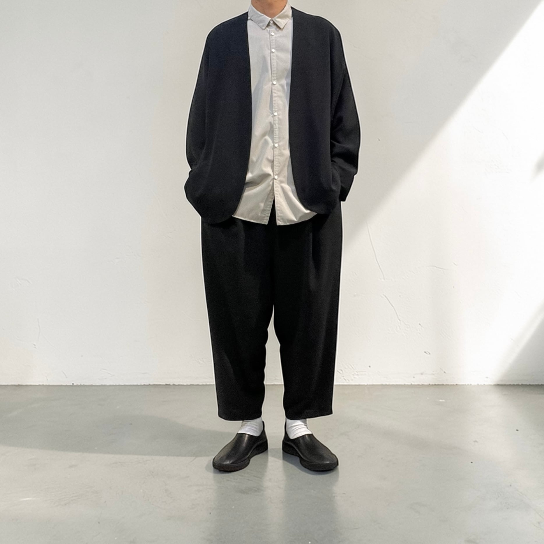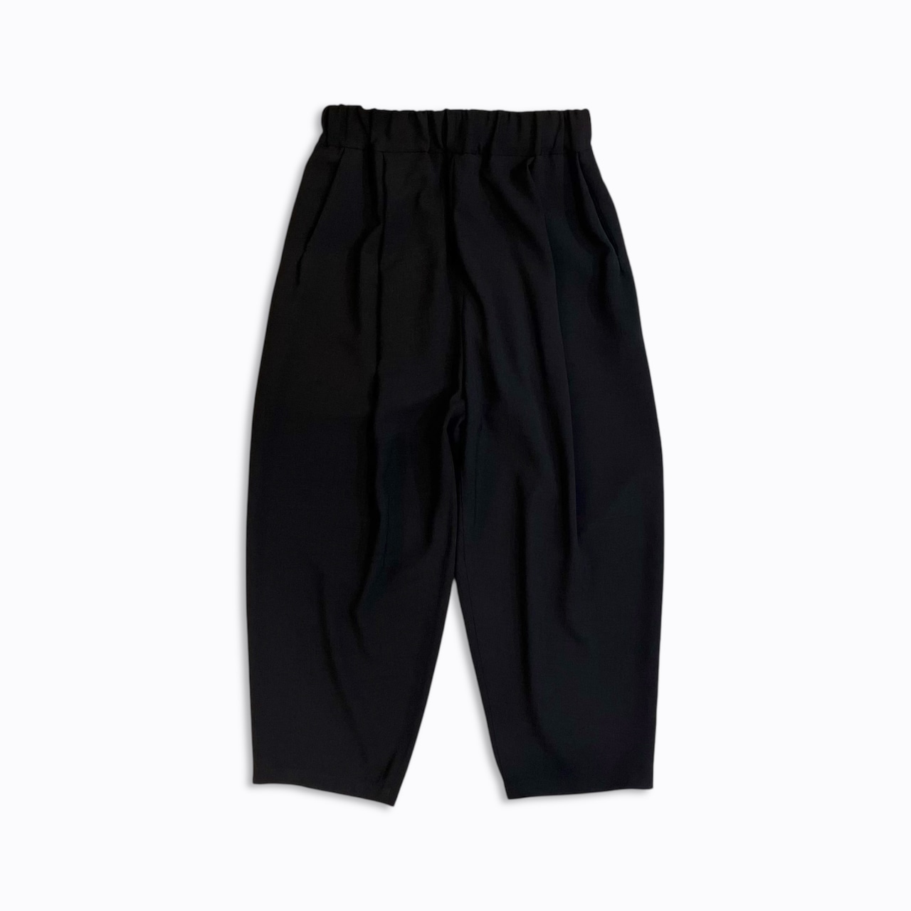 ウエストイージー仕様、9分丈、ワンタックの脇ハギのない筒感が強調されたテーパードシルエット。