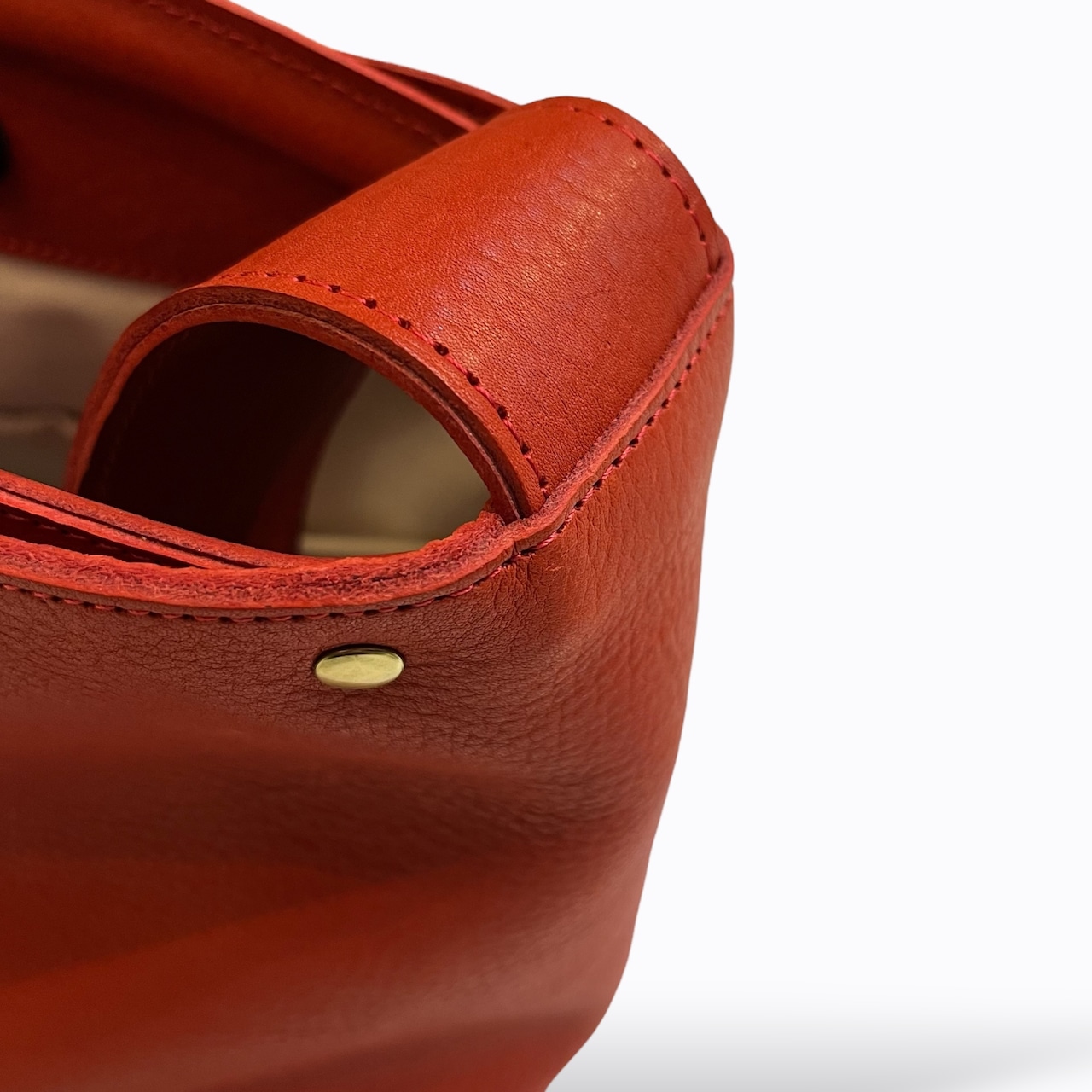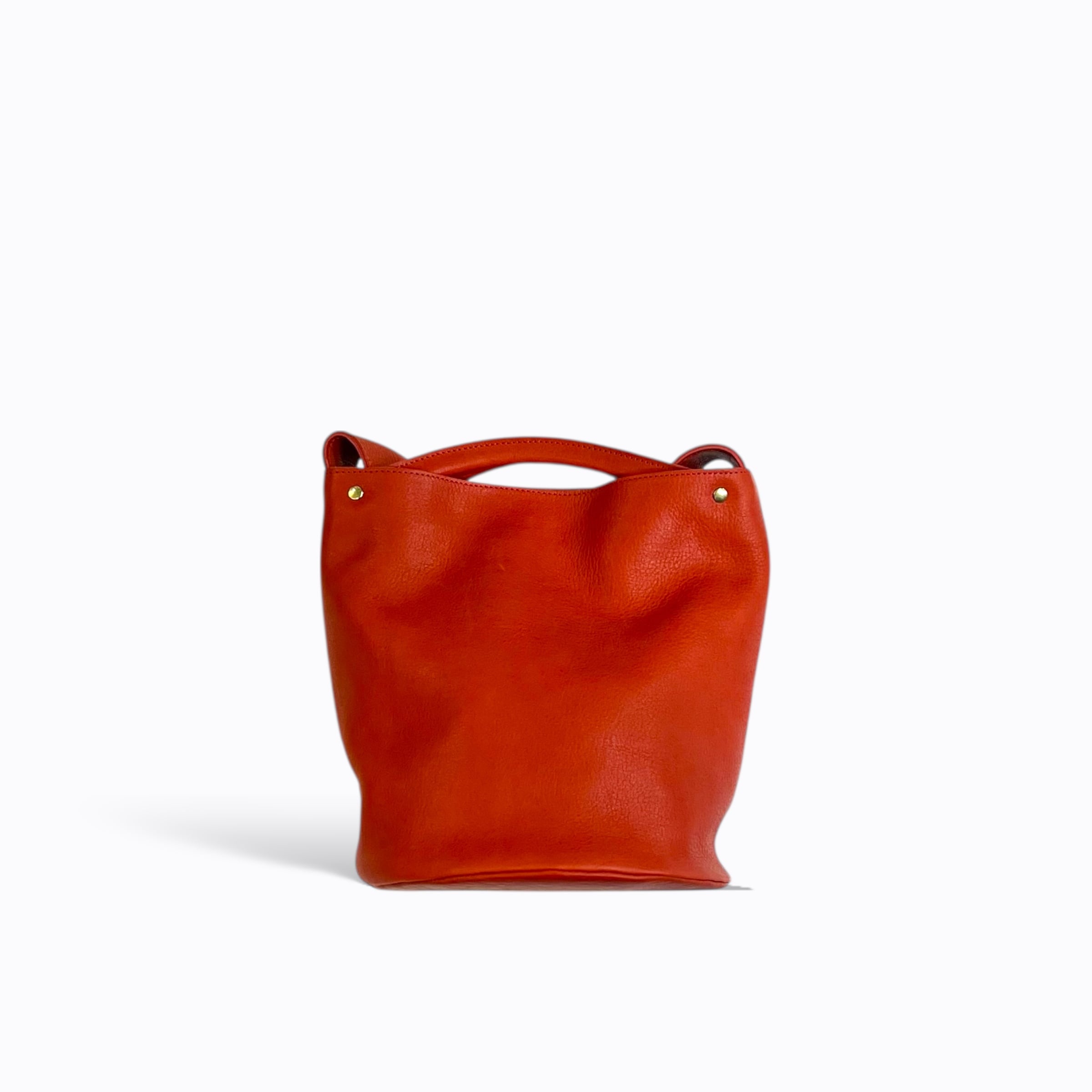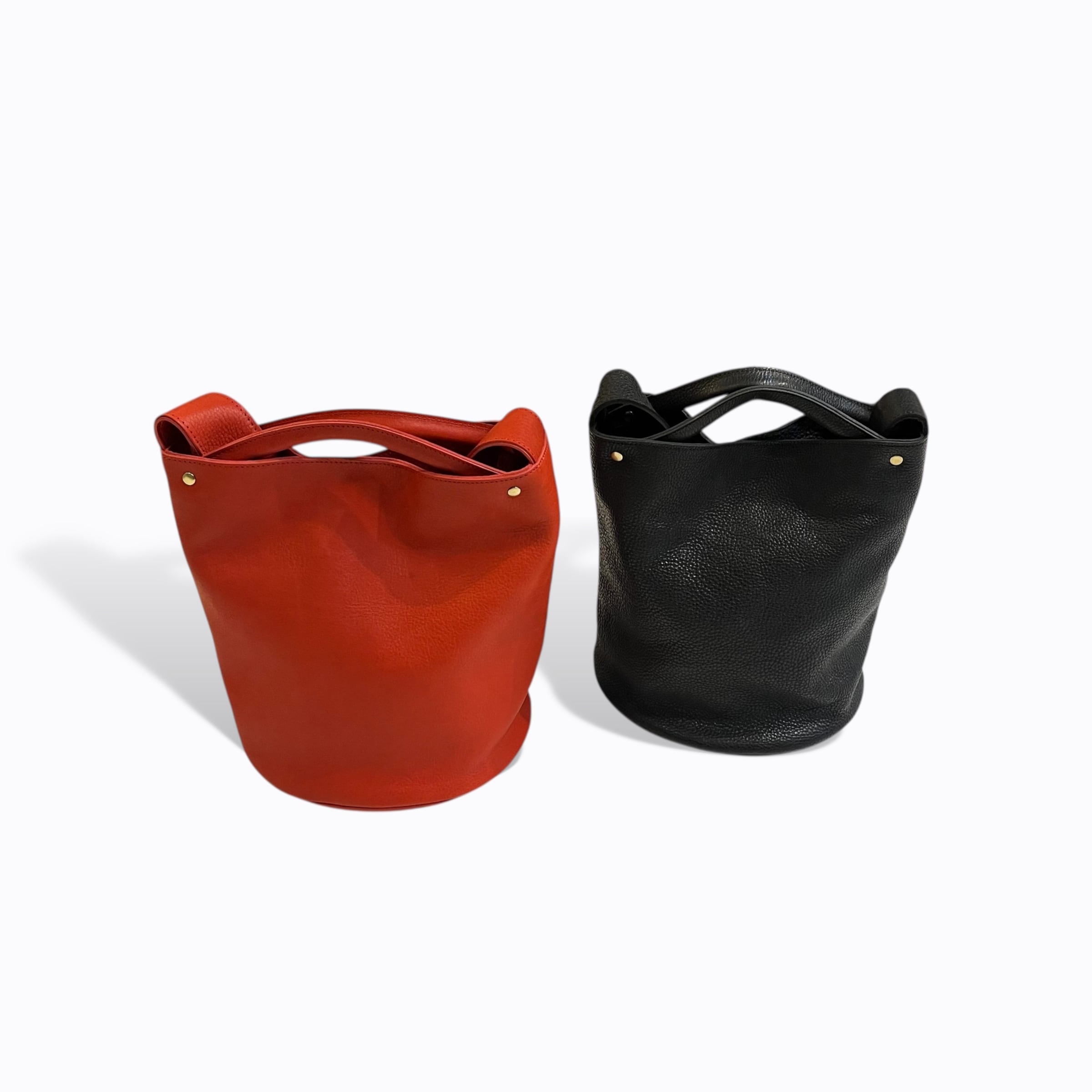 タンニン鞣し、姫路牛革を使用した丸底のバケツ型のバッグ。